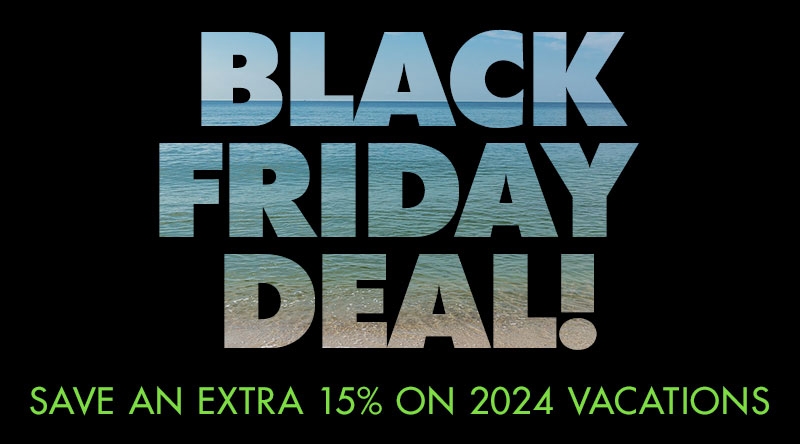 This deal is accessible to you starting today and ending Sunday, November 26, 2023. Browse our website and book online, or reach one of our Vacation Specialists today at 877.701.7322 to plan the perfect vacation for your family to look forward to!