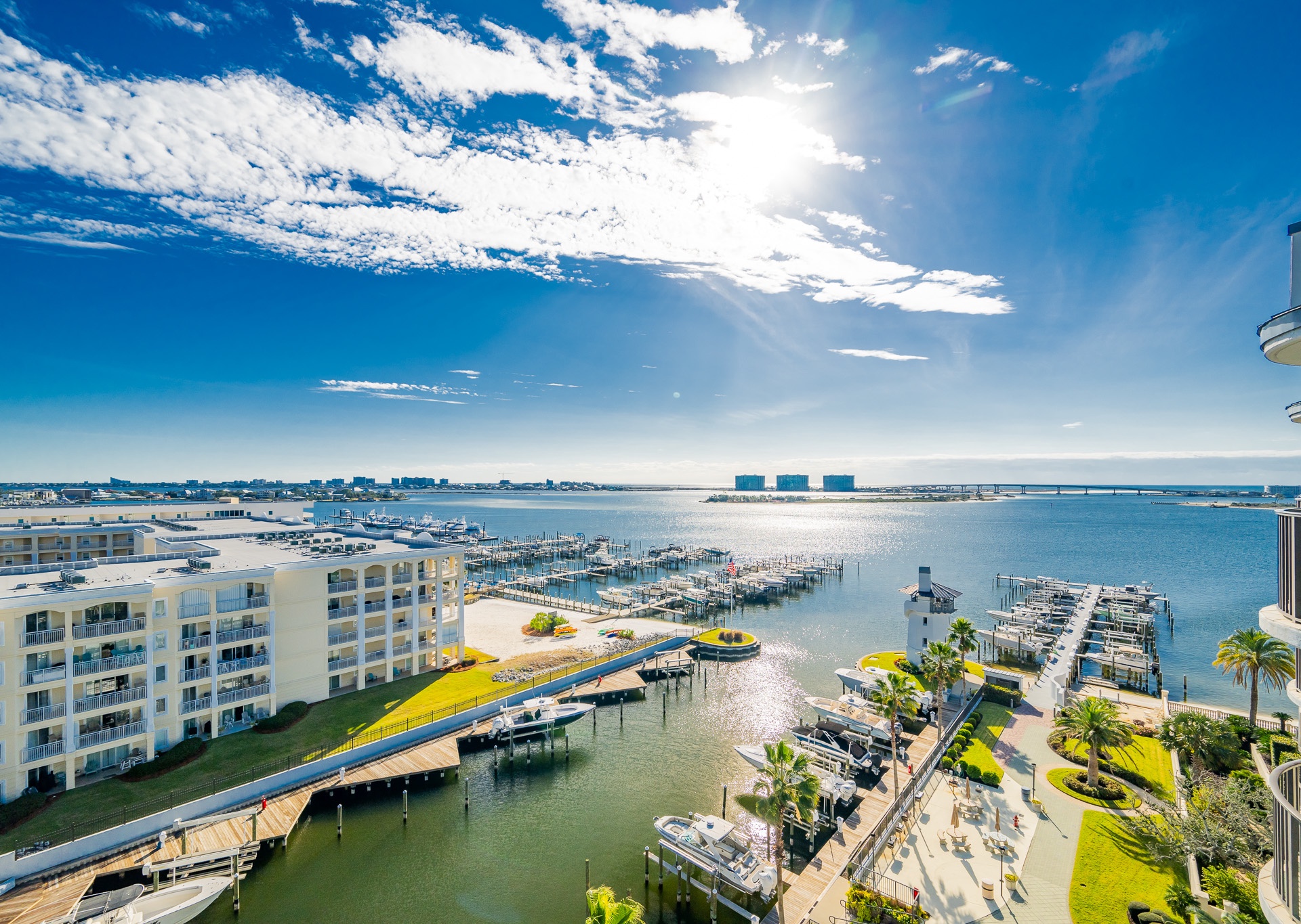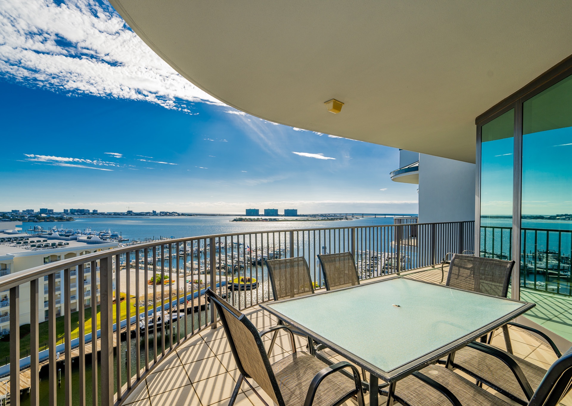 Yes, all Lighthouse on the Bay vacation rentals have views of Terry Cove, Robinson Island, and Perdido Pass from private balconies