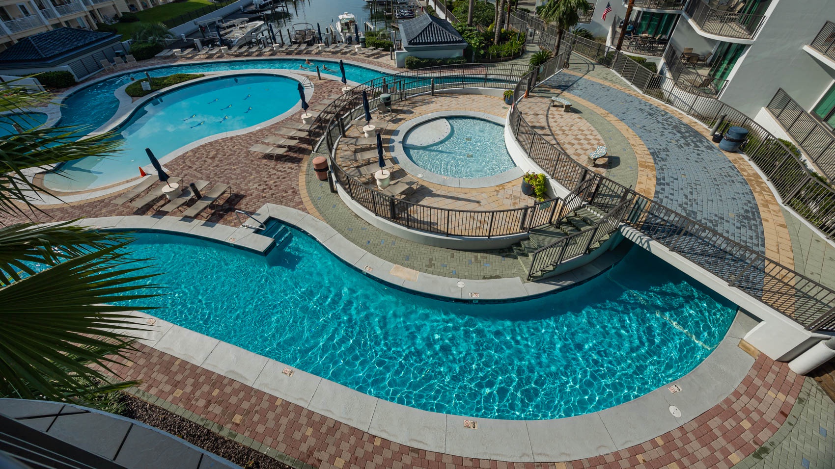 Lighthouse on the Bay features several luxury amenities including: indoor and outdoor pools, kiddie pool, lazy river, splash pad, sauna, hot tubs, fitness center, basketball, covered parking, and barbeque grills.