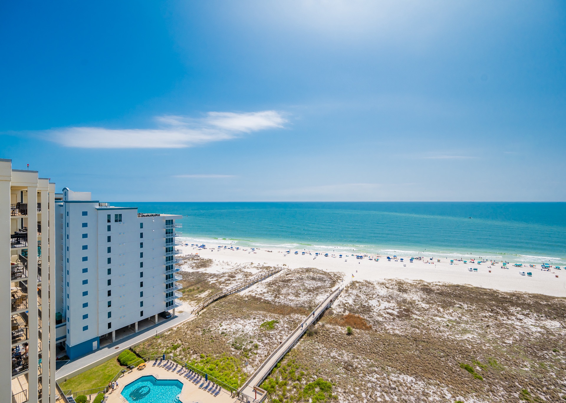 Phoenix VII Orange Beach is equipped with accessibility features to ensure that guests can enjoy their stay. The resort has accessible entrances and public areas, including ramps and elevators. The units were also originally designed with accessibility in mind. Contact us at 1-800-211-7892 to discuss accommodations and options.