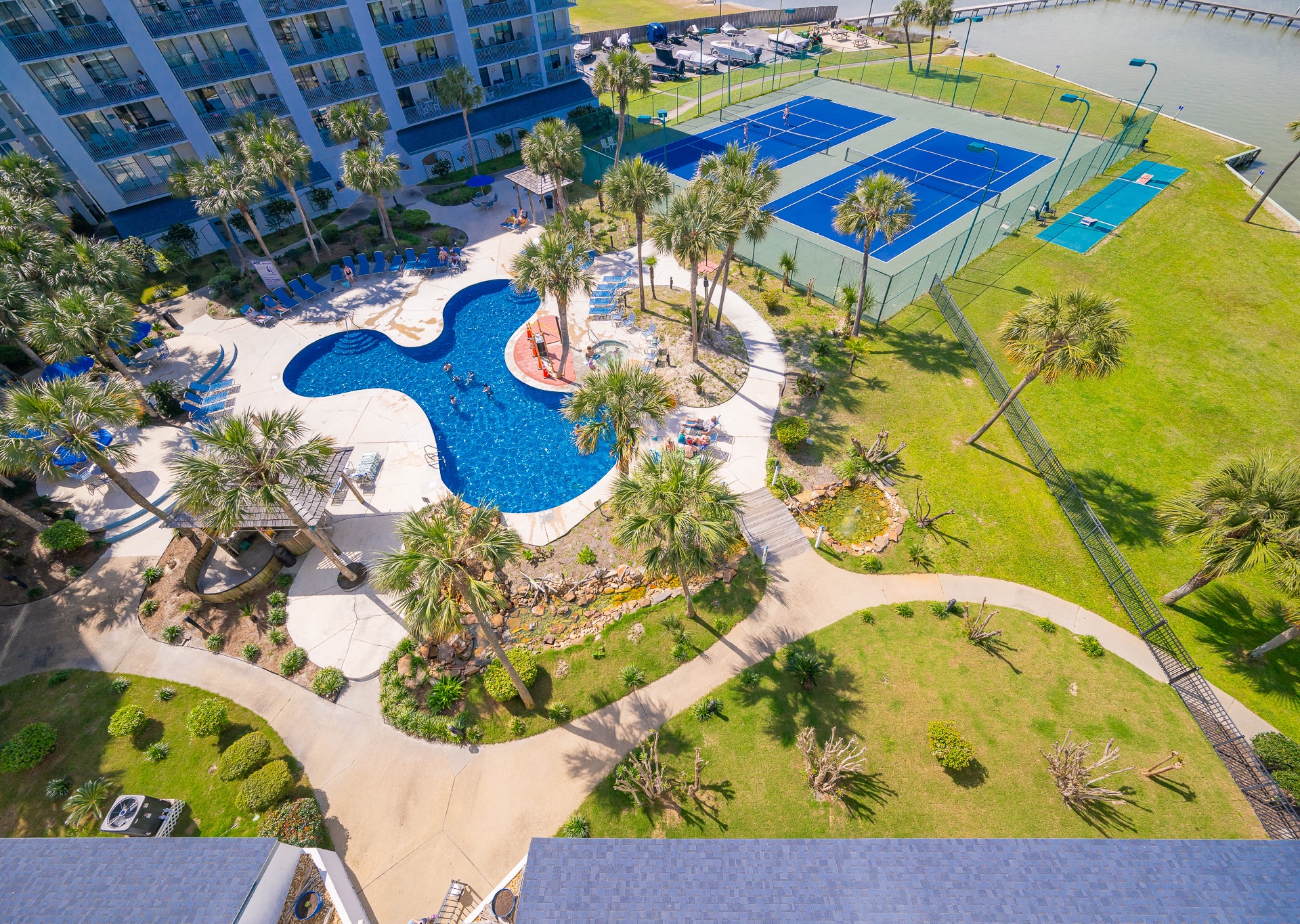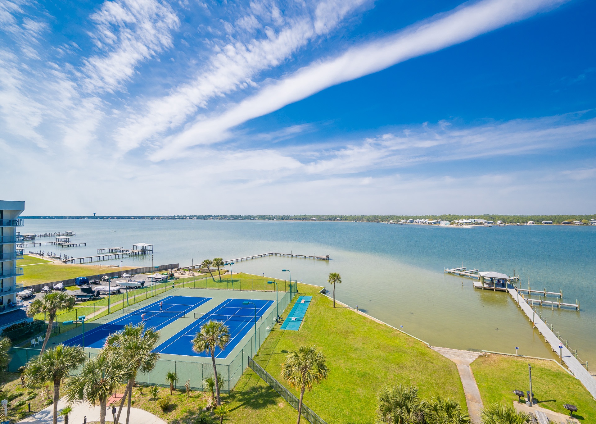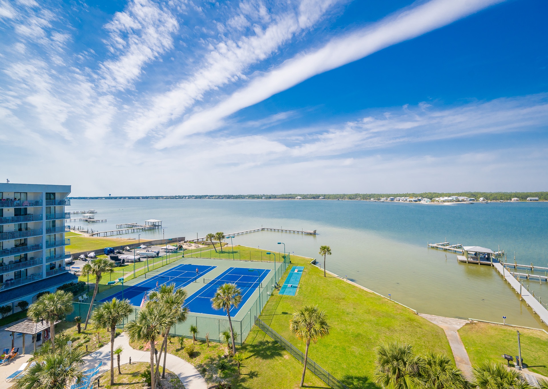 Surf and Racquet Club Gulf Shores features several luxury amenities including: outdoor pool, hot tub, piers, boat launch, tennis courts, pickleball courts, shuffleboard, covered parking and barbeque grills.