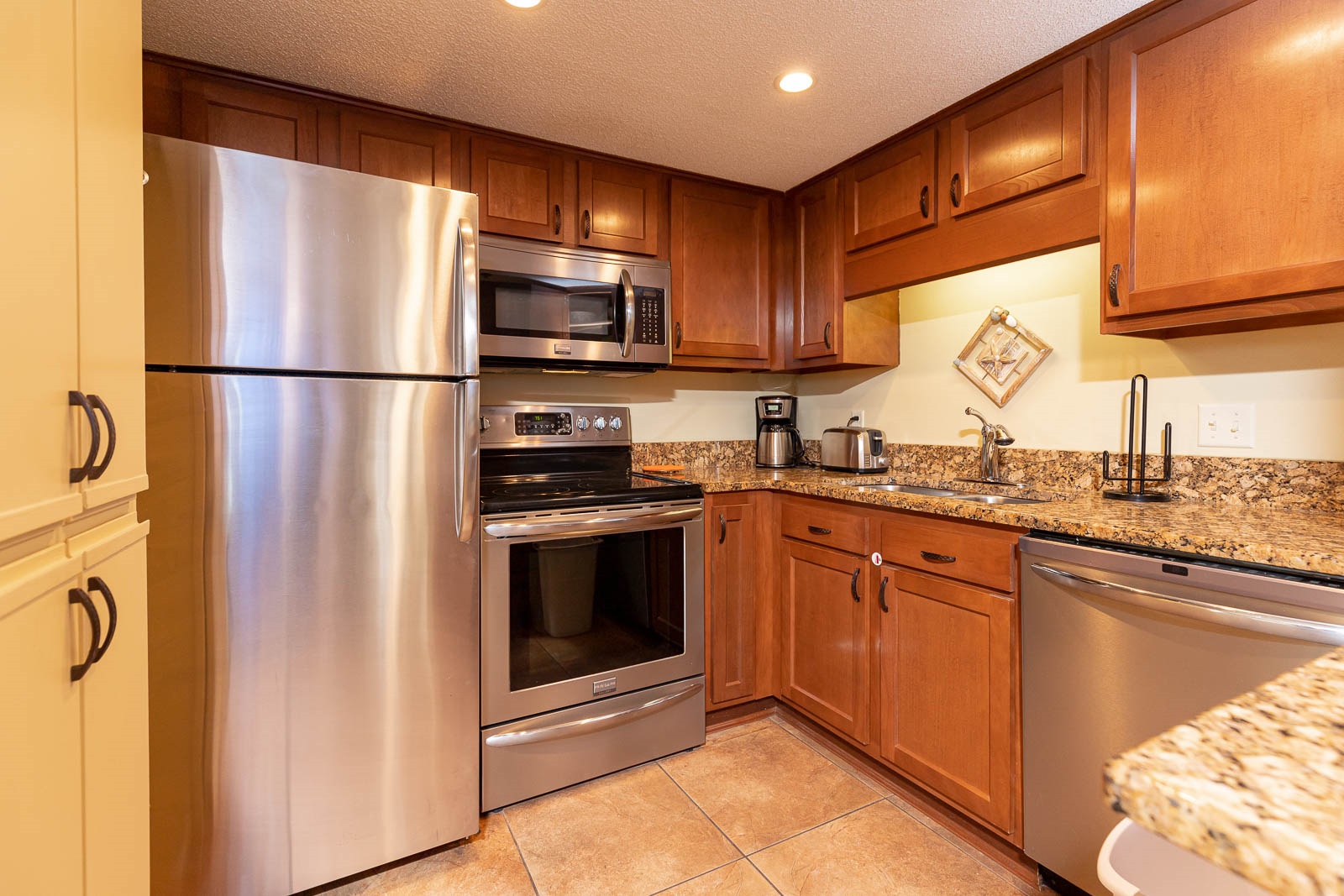Kitchen: Experience culinary delight in the fully equipped kitchen featuring stainless-steel appliances and gleaming granite countertops. Your inner chef will rejoice in this seaside haven. Gather around the dining table with seating for four, creating cherished moments with family and friends while relishing delicious meals.