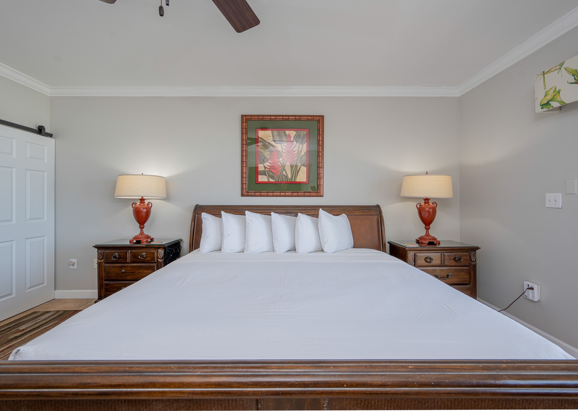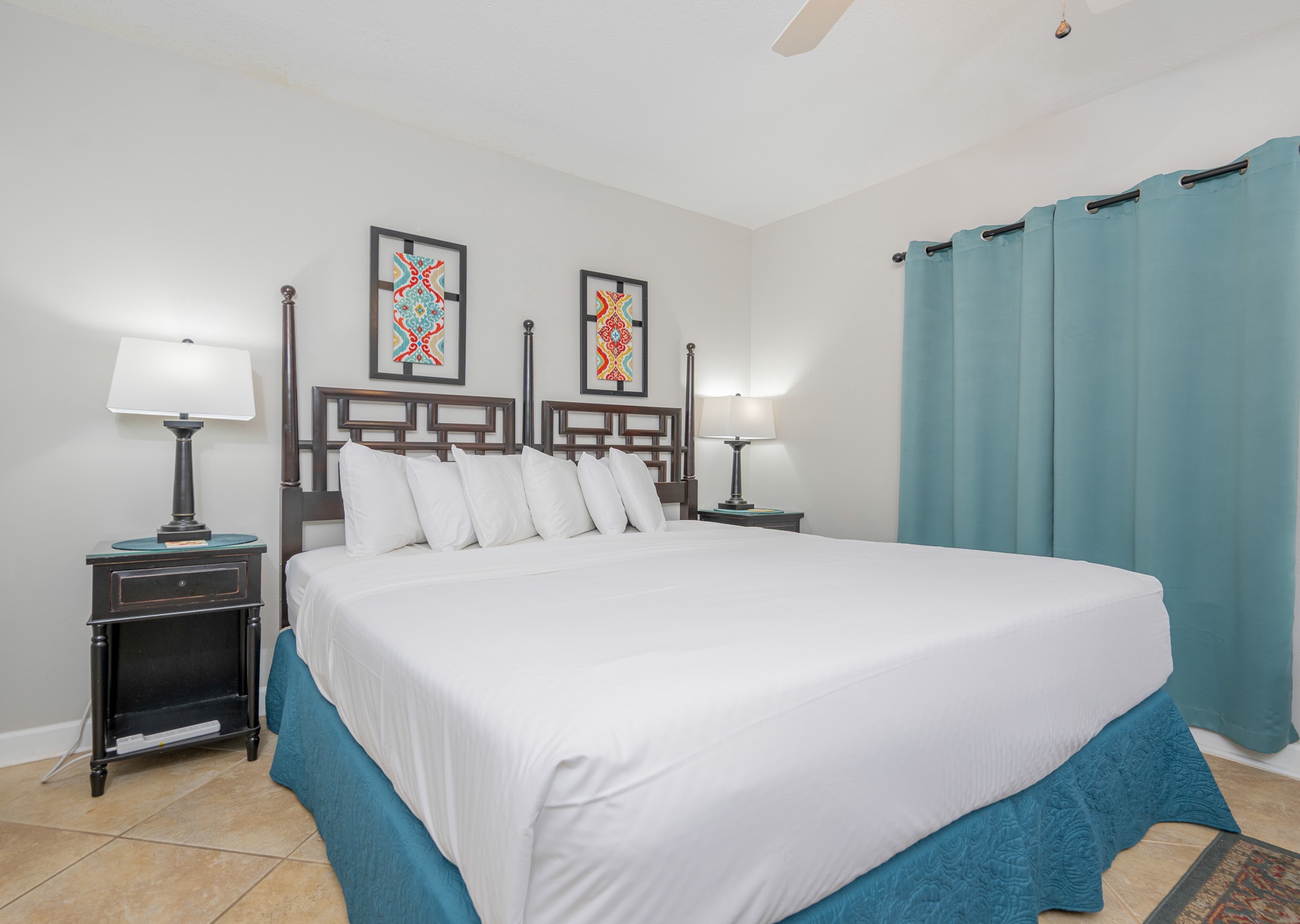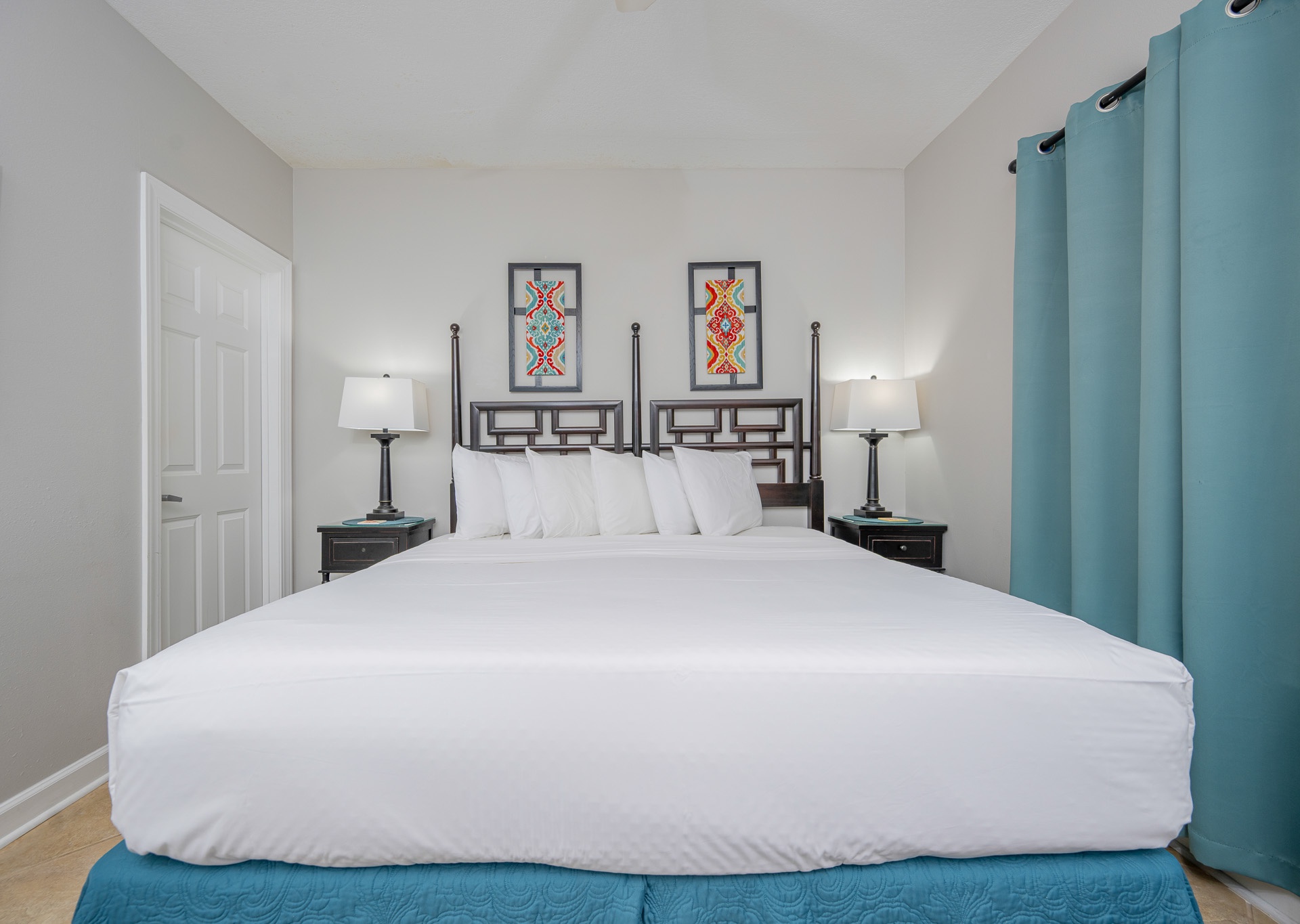 • 2nd Bedroom: King bed, flat-screen TV, private bath with single vanity and tub/shower combo with private water closet