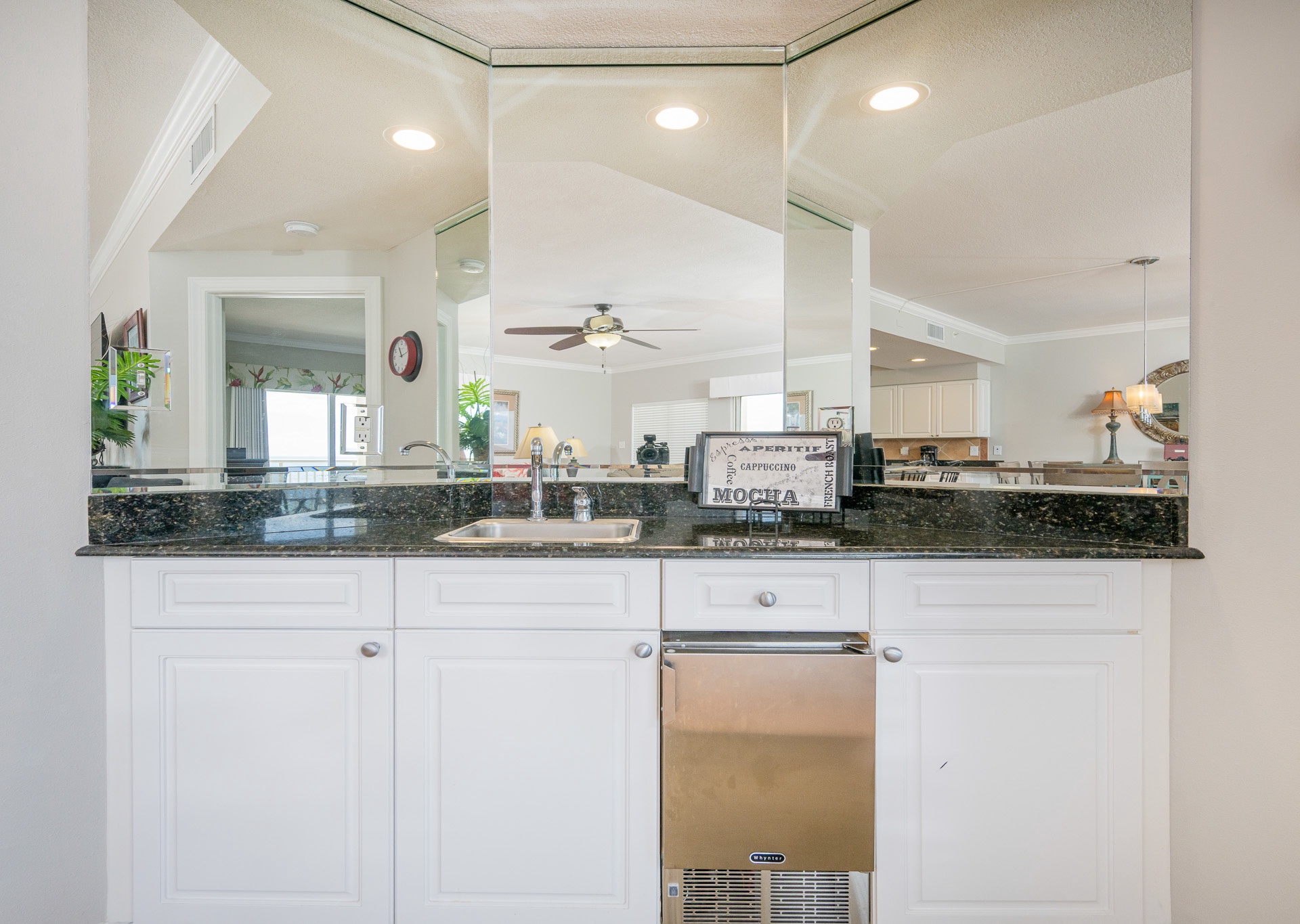 • Wet Bar: Separate bar area with sink and ice maker—great for entertaining