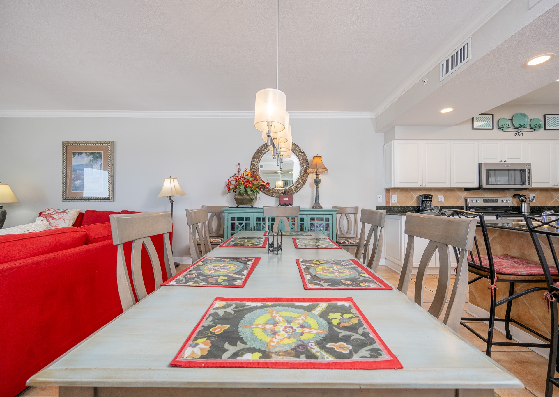 • Dining Area: Table seats 8