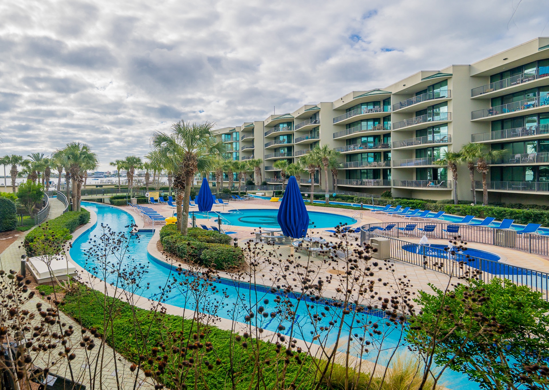 Phoenix on the Bay features several luxury amenities including: indoor and outdoor pools, kiddie pool, lazy river, slide, marina, boat slips, boat launch, sauna, steam room, hot tubs, fitness center, putting green, tennis court, pickleball court, basketball, covered parking, and barbeque grills.