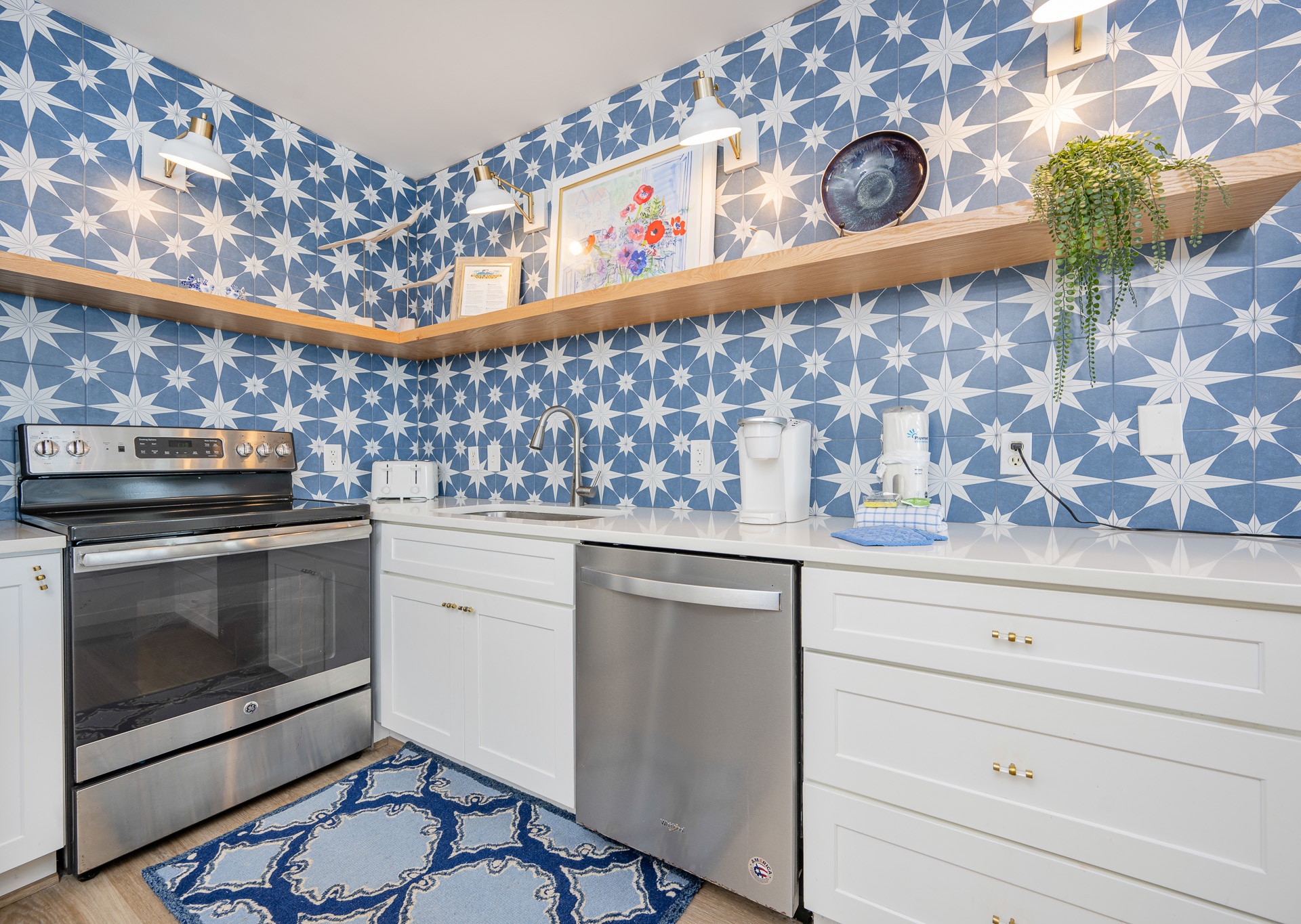 Throughout the condo, you’ll find new flooring, area rugs, and a cozy coastal aesthetic. The kitchen is equipped with stainless steel appliances, a beautiful tile backsplash, and everything you need to cook and entertain. The dining area features a charming bench-style seat, table and chairs, and a statement chandelier that adds elegance to the space.