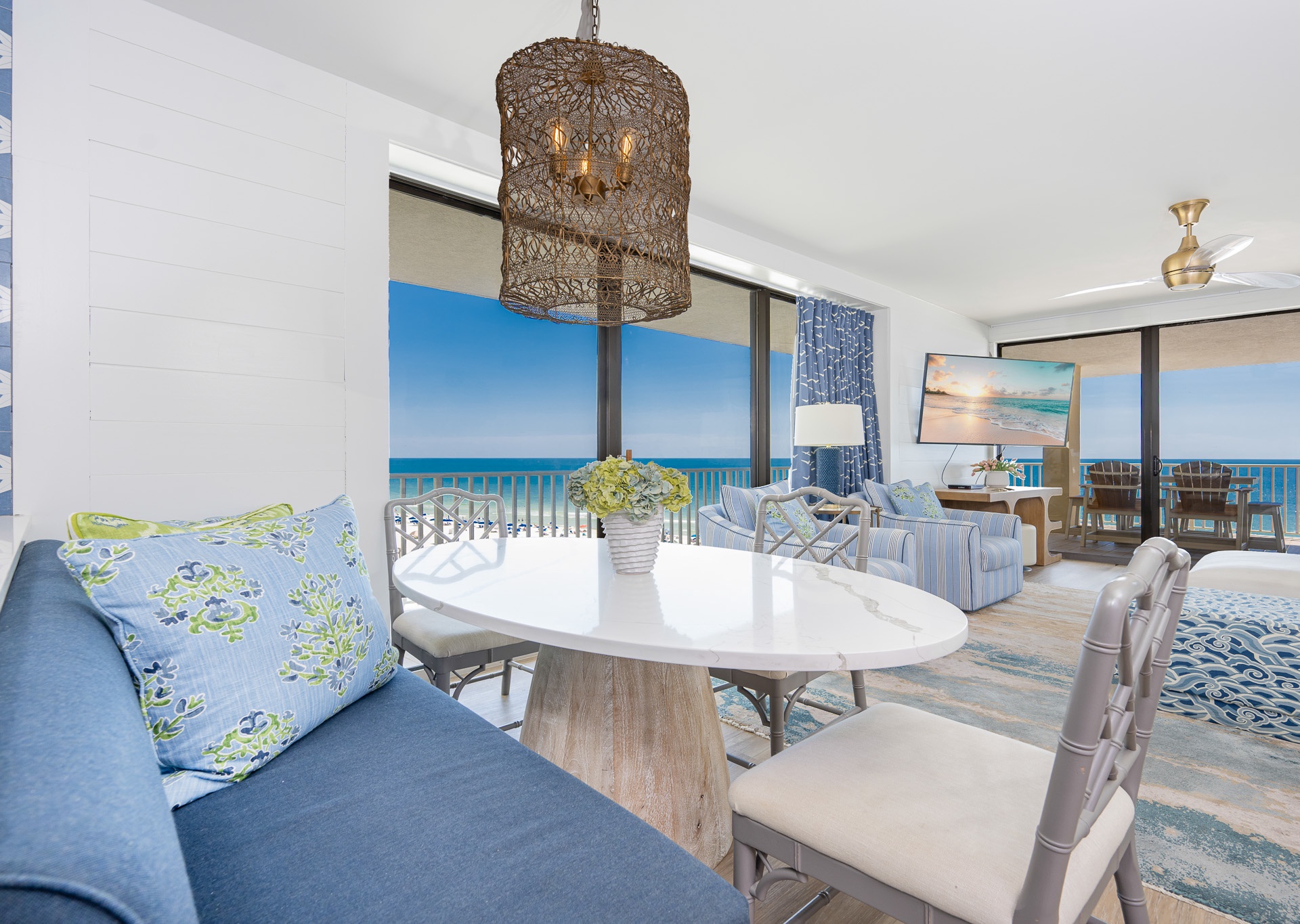Romar Place 701 is a beautifully appointed three-bedroom, three-bathroom corner unit that sleeps up to eight guests. This professionally decorated condo is full of character, charm, and modern touches throughout.