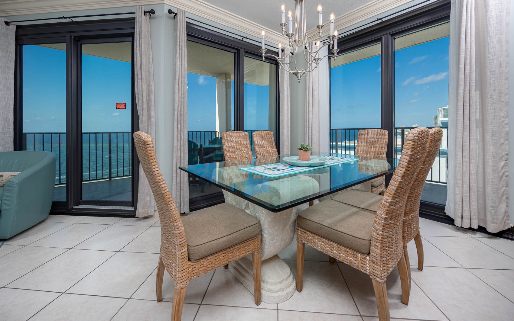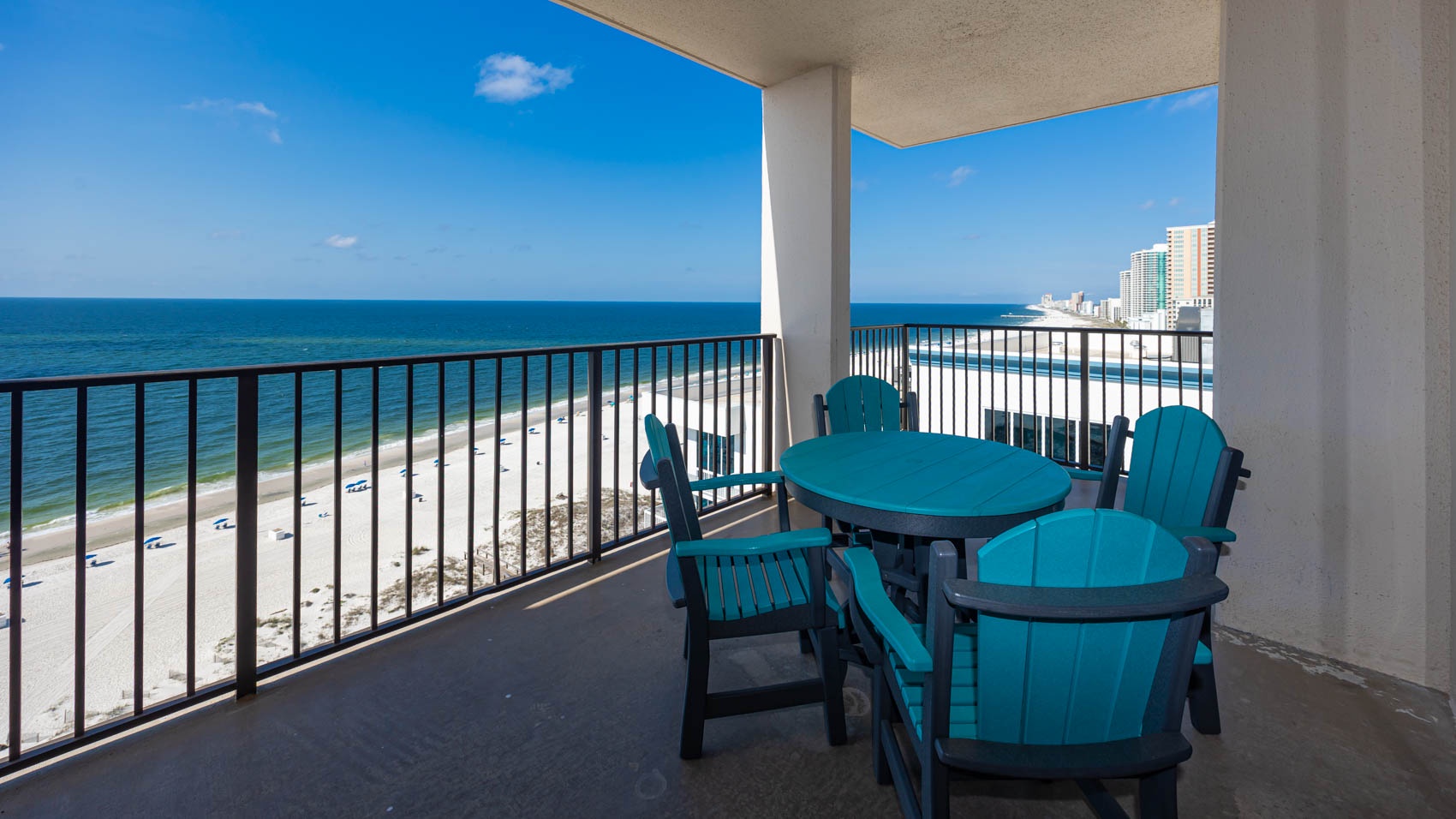 Welcome to one of the greatest views in Orange Beach. Perched on the top floor of Phoenix East, this unit offers an expansive, unobstructed view of the entire western beach and horizon, as well as an up close and personal view of Perdido Pass and all its marine activity. Relax at the composite outdoor table and chairs on the wrap around deck while watching for dolphins, waterfowl, and the occasional Blue Angel.