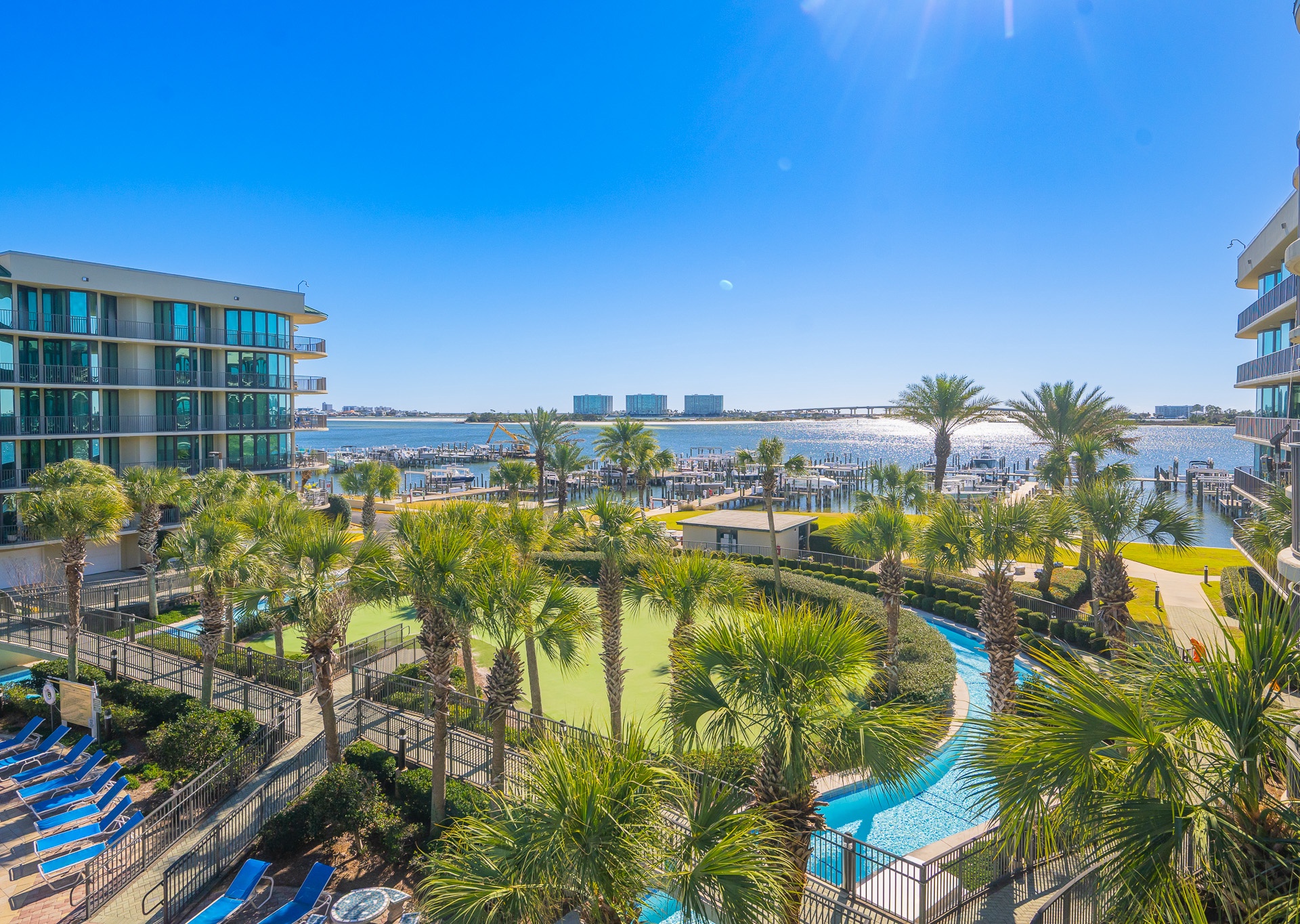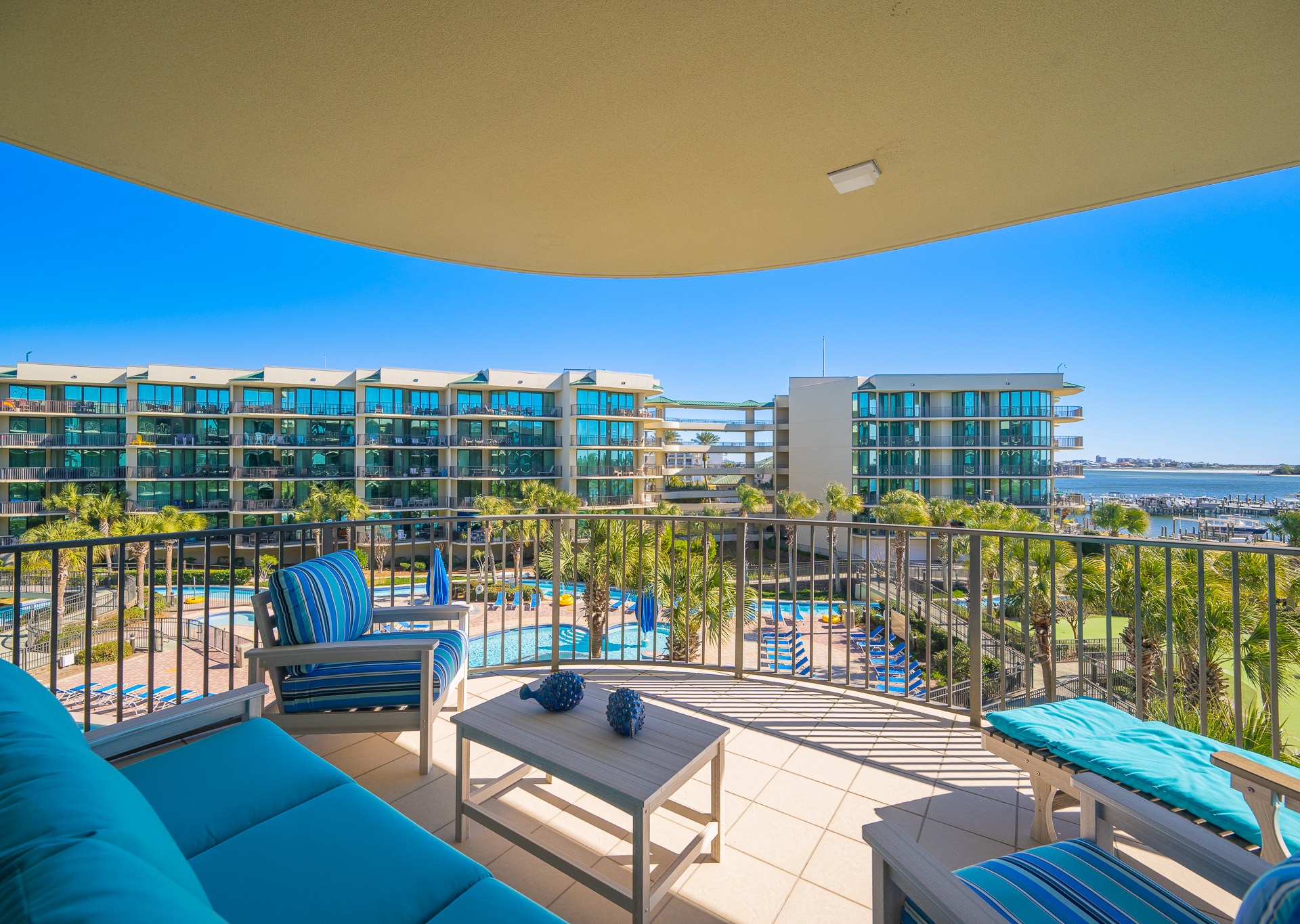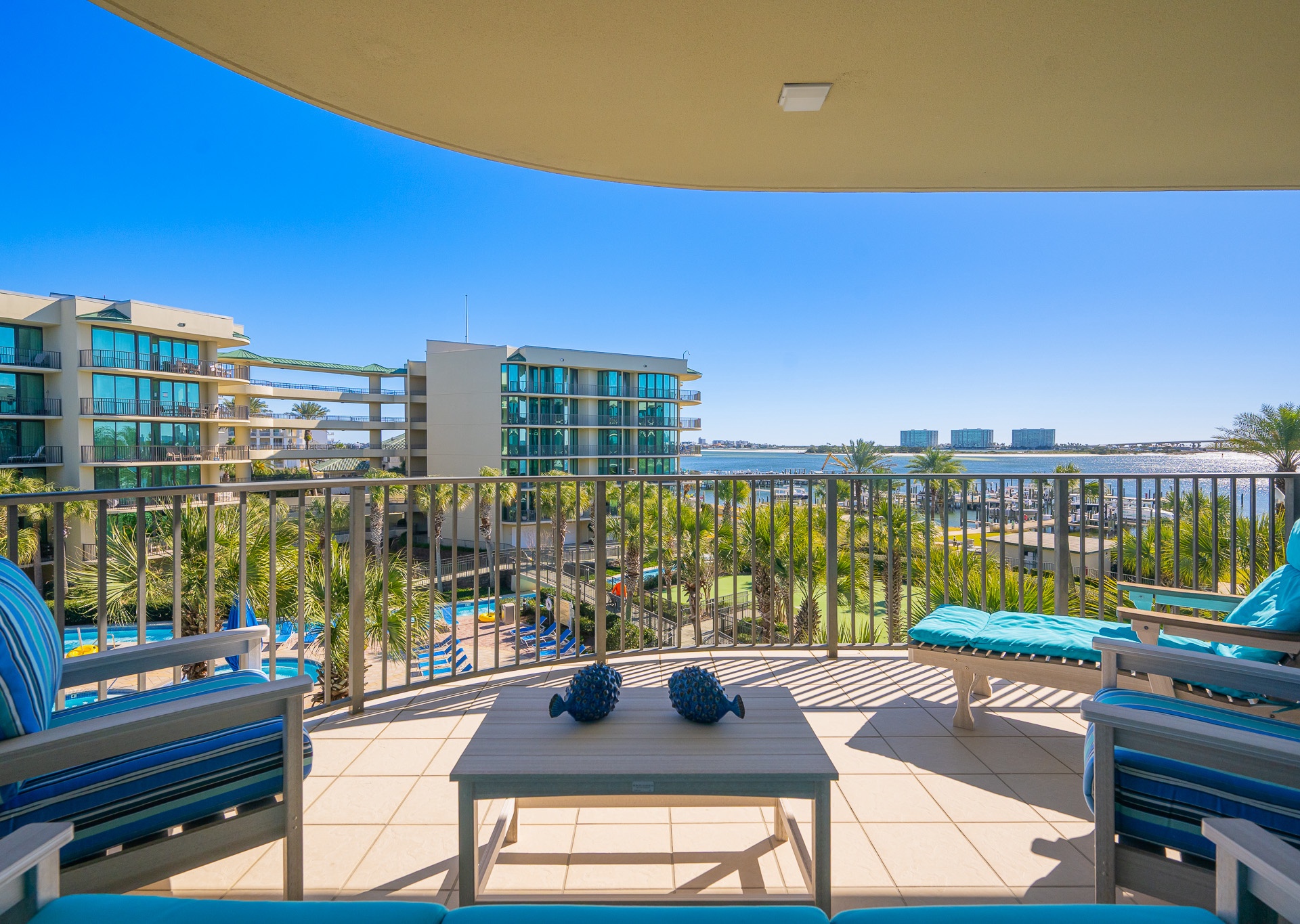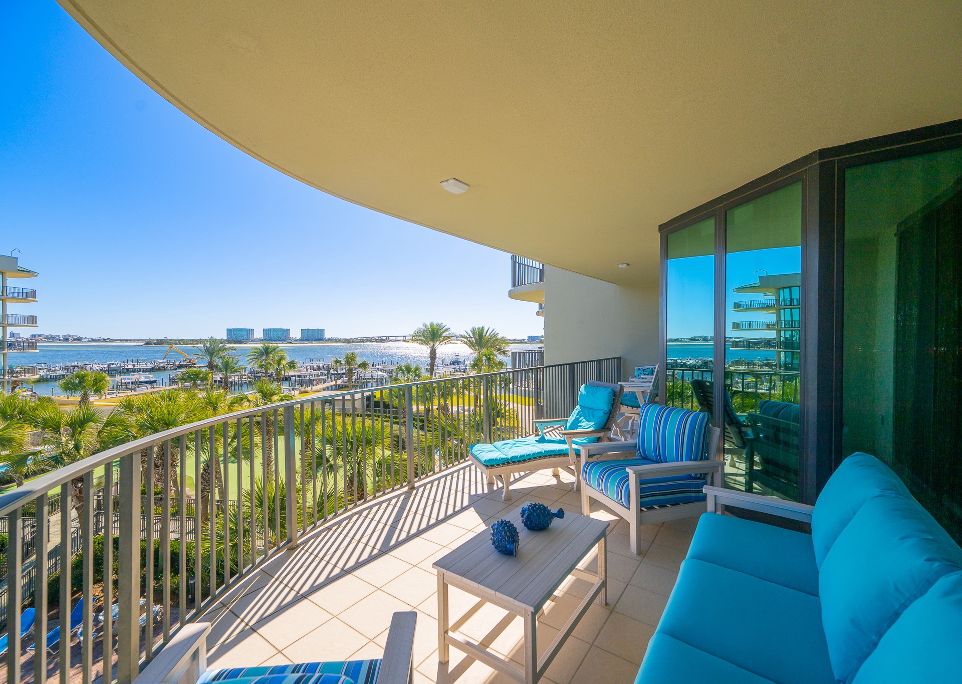 Yes, all Phoenix on the Bay vacation rentals have views of Terry Cove, Robinson Island, and Perdido Pass from private balconies.