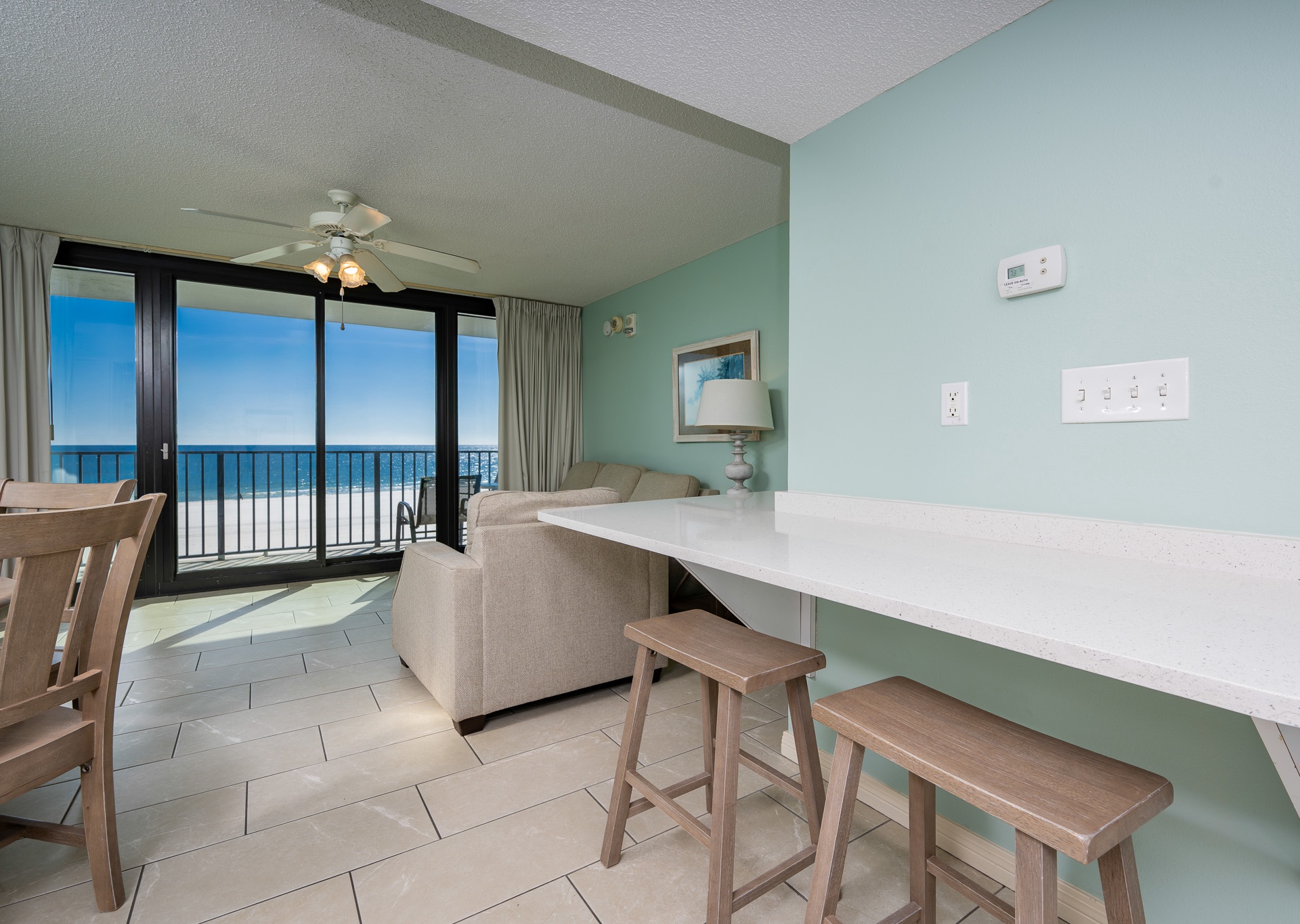Phoenix All Suites Hotel provides handicapped accessible units designed to accommodate up to four guests comfortably. These units feature thoughtful accessibility features, including lower countertops, making them more convenient for guests with mobility challenges. The one-bedroom unit includes a master bedroom with a king-size bed and a queen-size pull-out sofa in the living room, offering a comfortable and flexible sleeping arrangement. This accommodation is perfect for those seeking accessible and comfortable lodging while enjoying the beachfront setting of Gulf Shores, Alabama.
