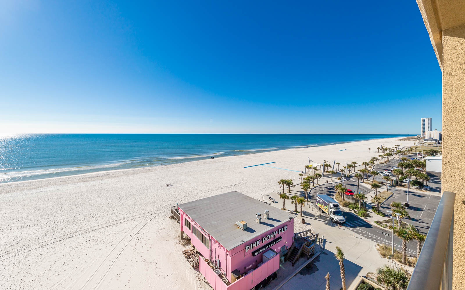 Step out onto your private balcony to enjoy fantastic views, cool off in the sparkling swimming pool, or take a short stroll directly from the pool deck onto the soft sands of the Gulf Shores beach.