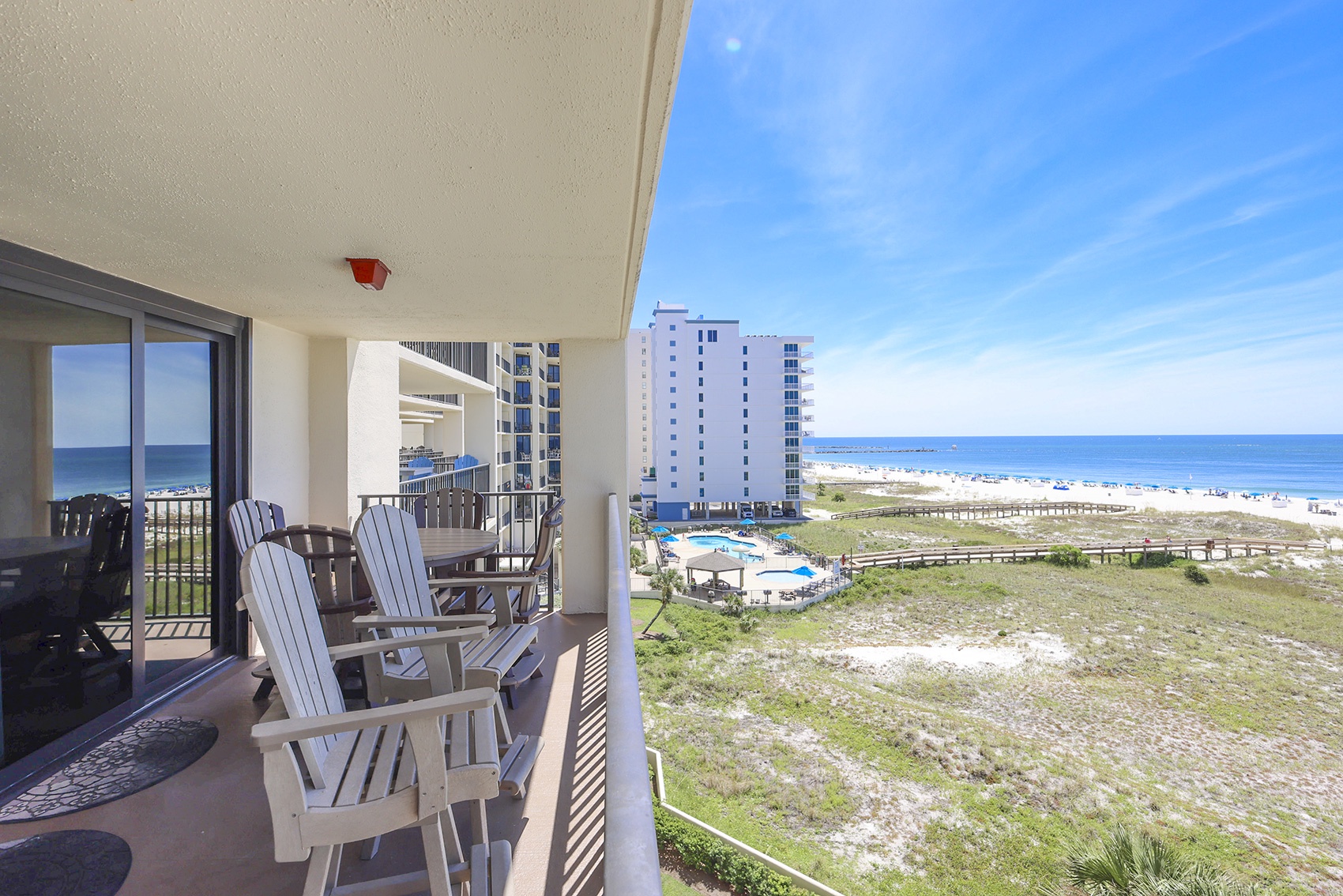 Phoenix VII Orange Beach is equipped with accessibility features to ensure that guests can enjoy their stay. The resort has accessible entrances and public areas, including ramps and elevators. The units were also originally designed with accessibility in mind. Contact us at 1-800-211-7892 to discuss accommodations and options.