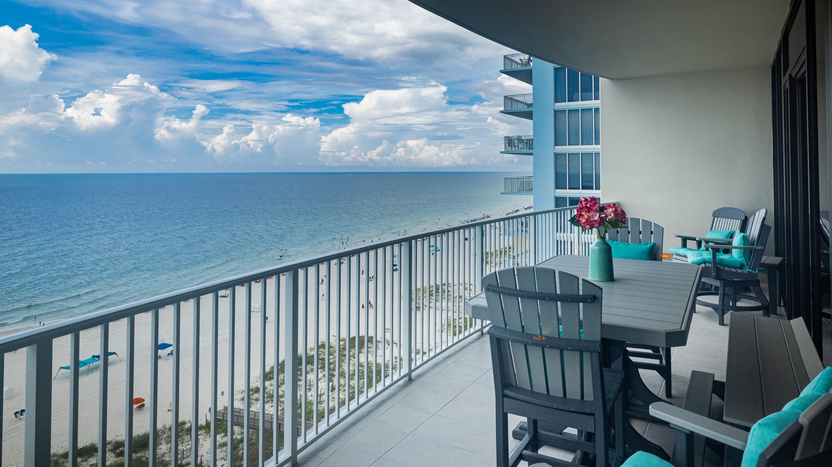 Phoenix Gulf Shores II features spacious 3- and 4-bedroom condos with open layouts and private balconies overlooking the Gulf.