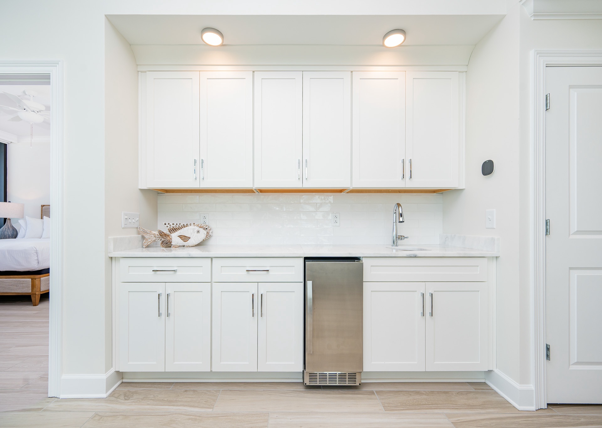 • A separate wet bar with its own icemaker, prep sink, and shelving—great for cocktails, smoothies, or evening refreshments