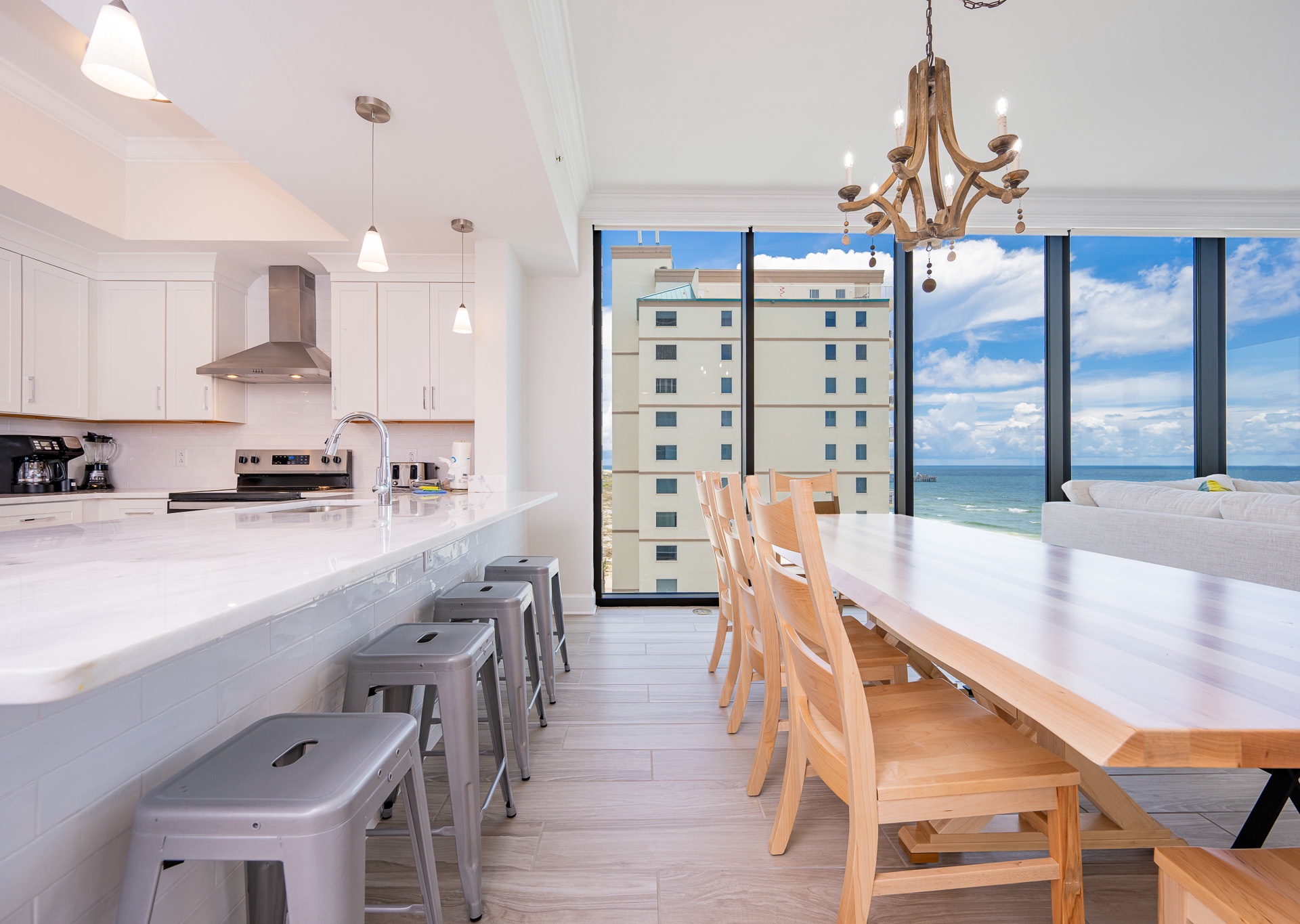 Phoenix Gulf Shores 705 is made for gathering, relaxing, and soaking in every moment of your beach vacation. With room for up to 14 guests and every bedroom offering its own private bathroom, it’s ideal for larger groups who want to spread out without sacrificing comfort. Whether you’re enjoying breakfast on the balcony, cooking in the modern kitchen, or winding down in the spacious living room with breathtaking Gulf views, this corner unit offers a perfect mix of space, style, and scenery.