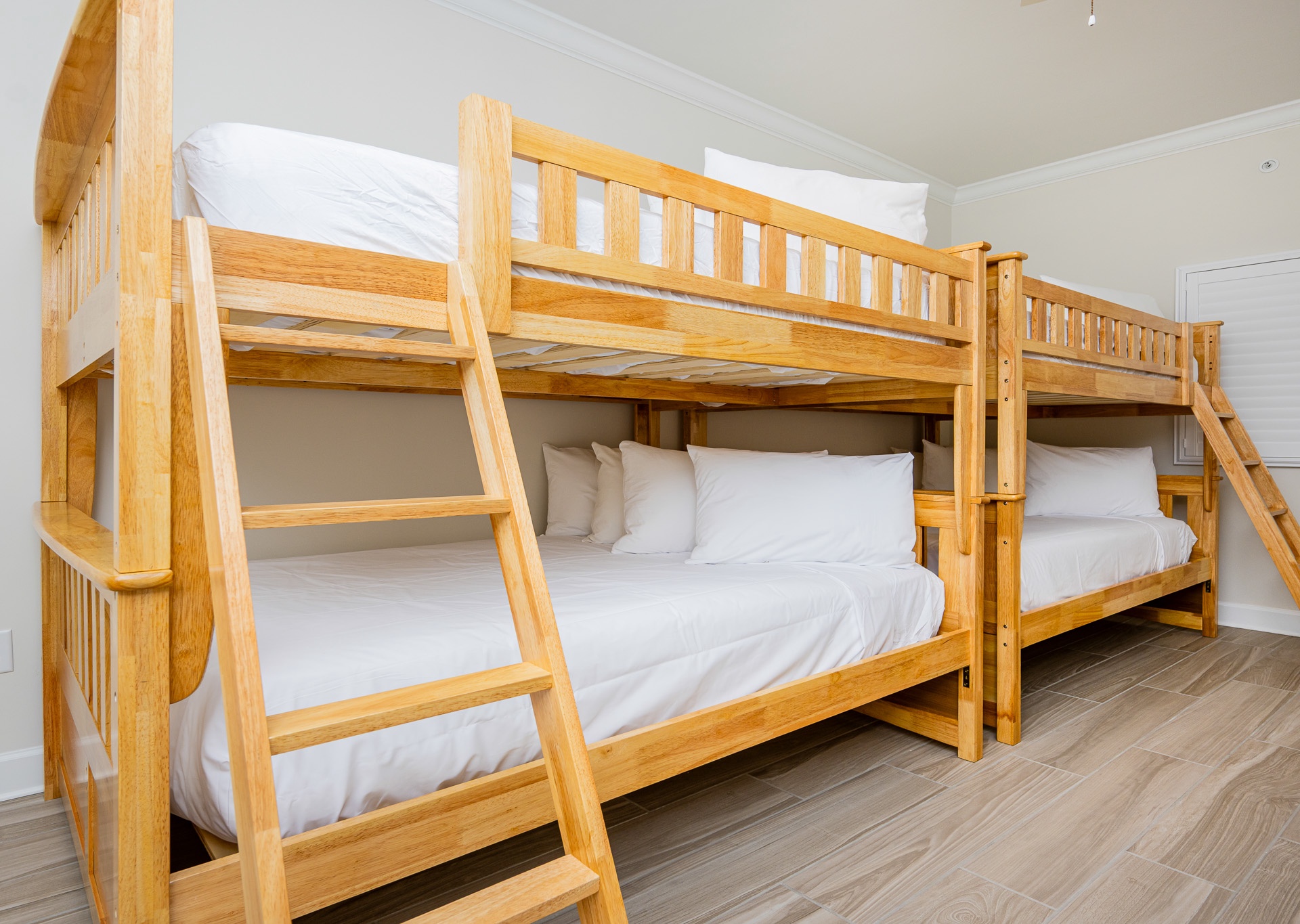 • Two sets of full-over-full bunk beds in the fourth bedroom—ideal for kids or teens