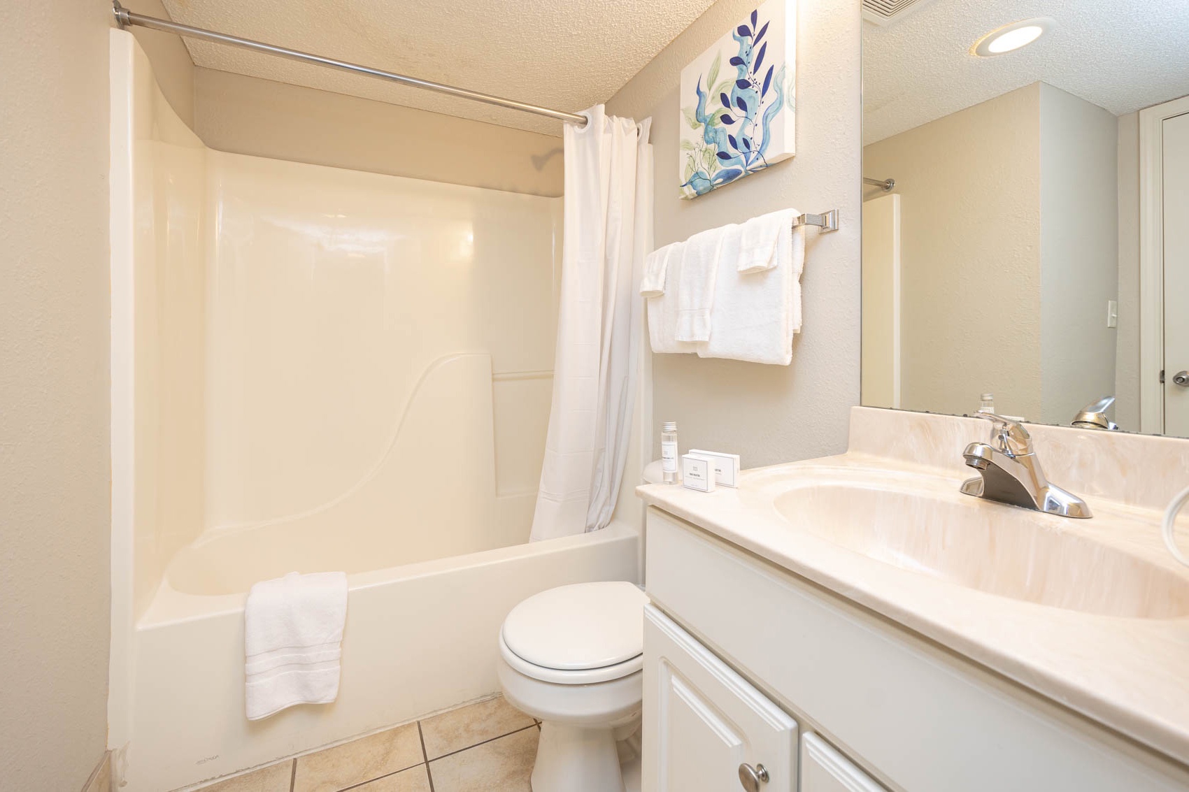 Phoenix All Suites West, situated on the pristine shores of Gulf Shores, Alabama, offers a comfortable and well-appointed one-and-a-half bath hotel suite that sleeps up to six guests. The suite features a spacious king-sized bed in the bedroom, a convenient queen sofa sleeper in the living area, and charming built-in bunk beds in the hallway, perfect for accommodating families or small groups.