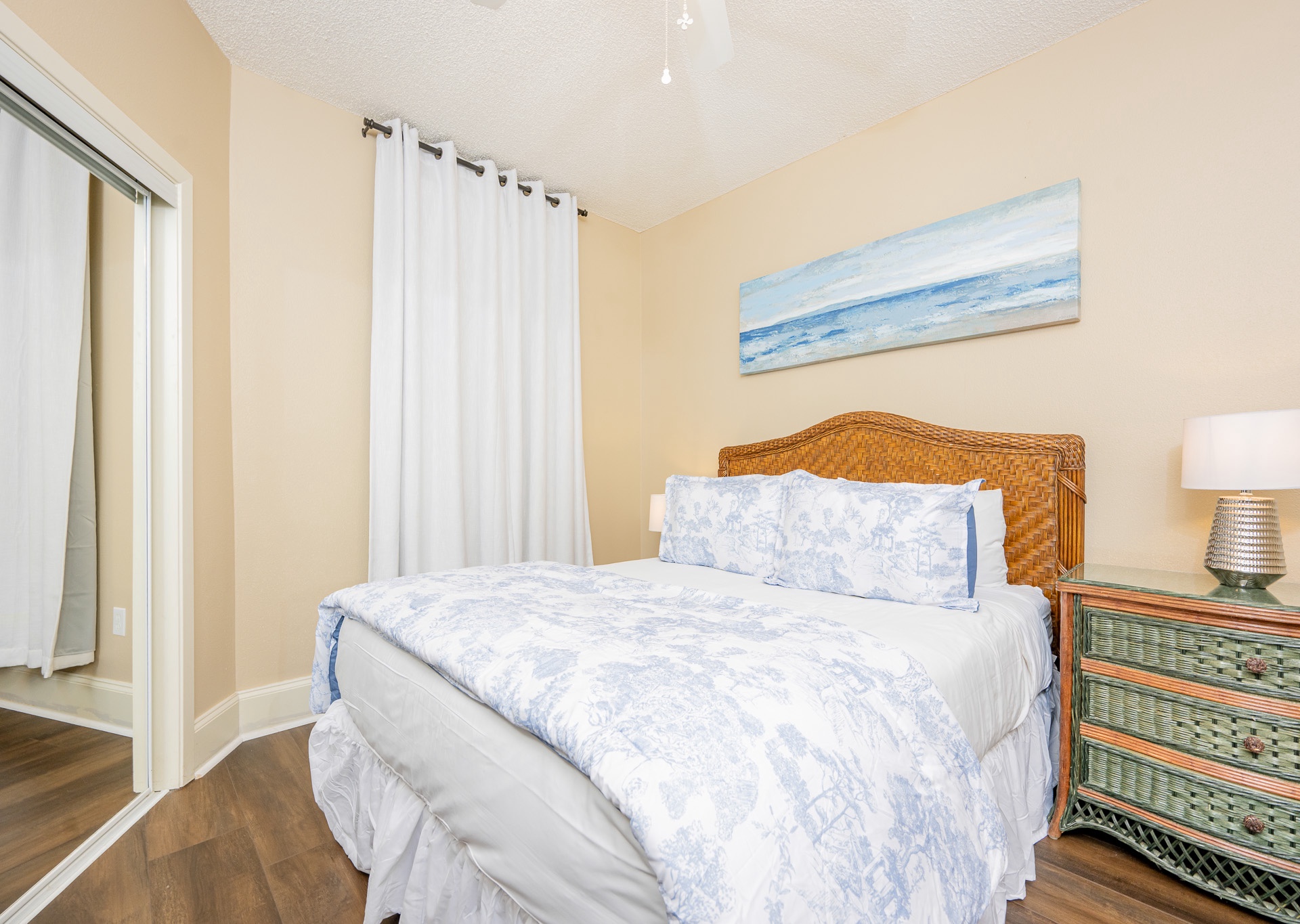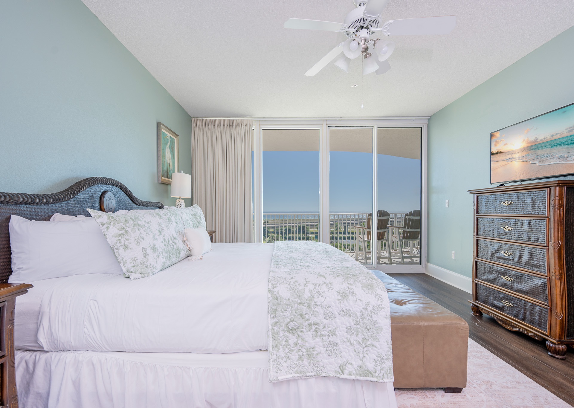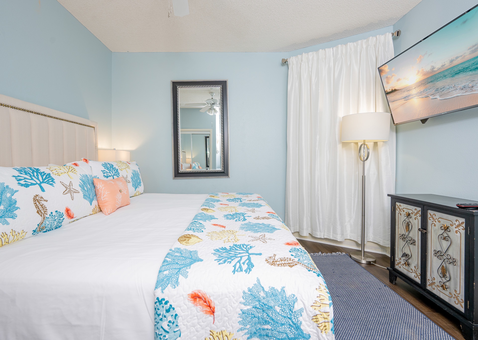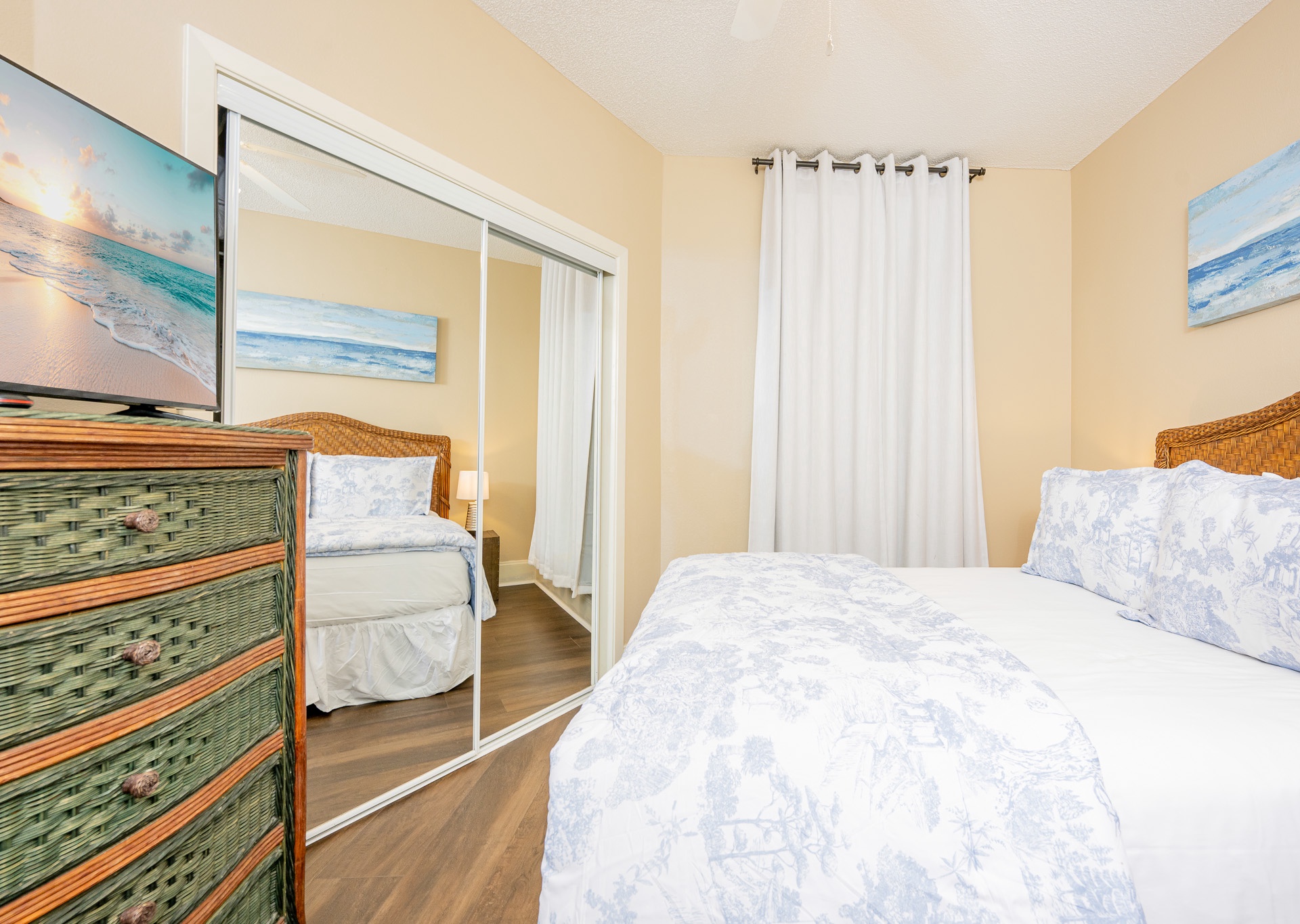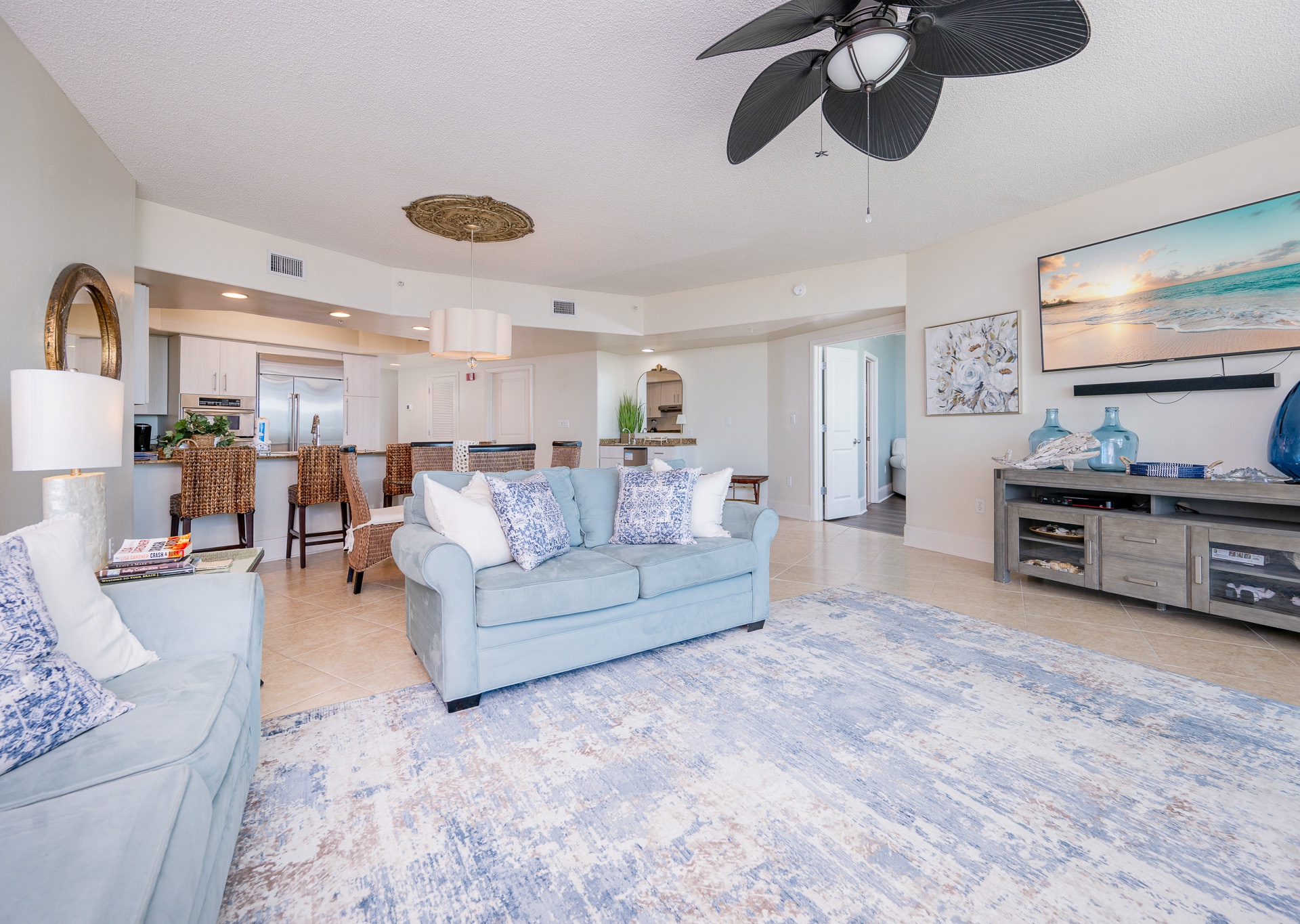 Throughout the condo, you’ll find wall-mounted flat-screen TVs, ceiling fans in every room, and stylish, comfortable décor designed to make you feel right at home.