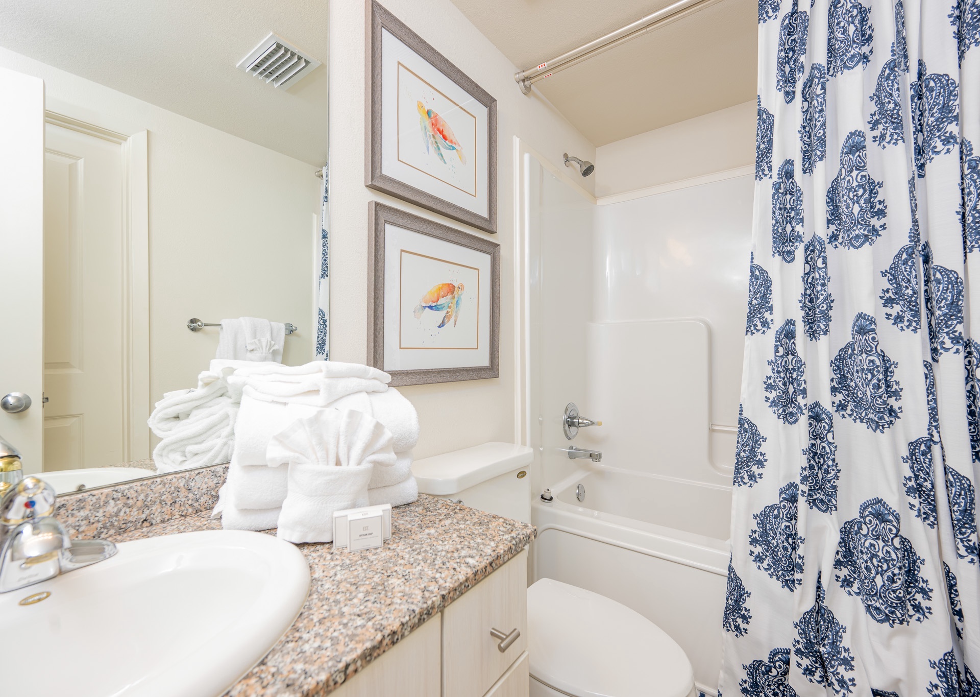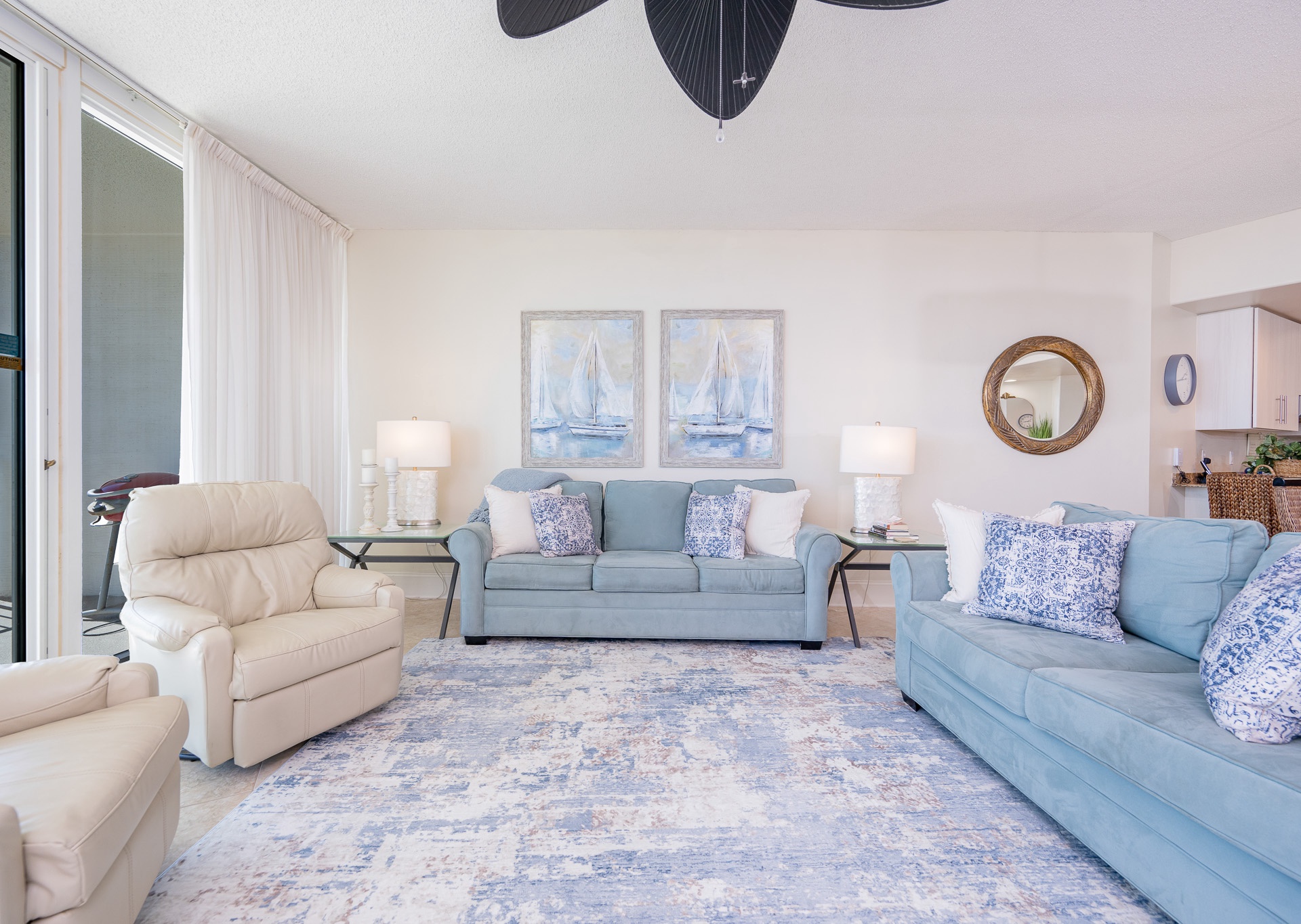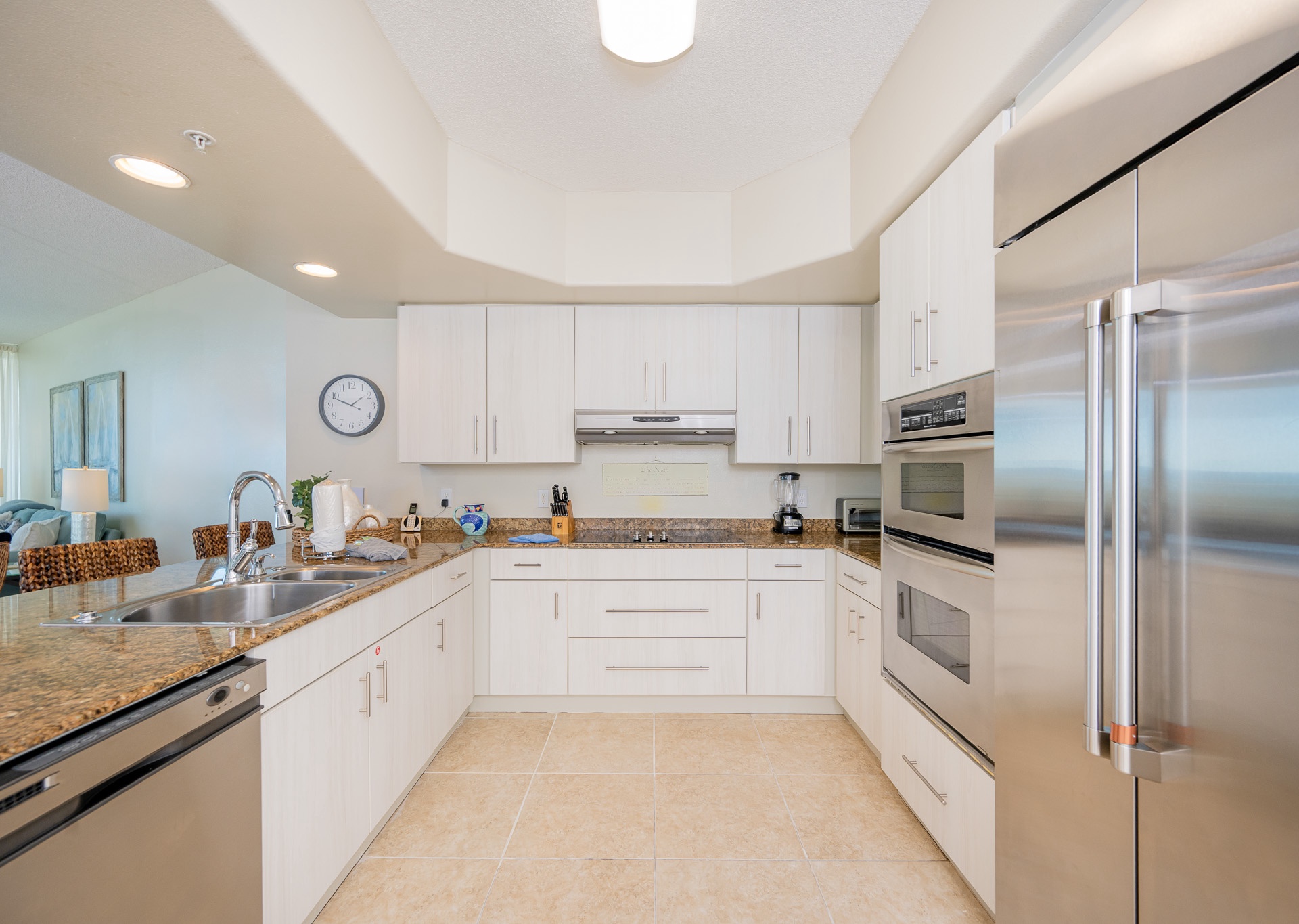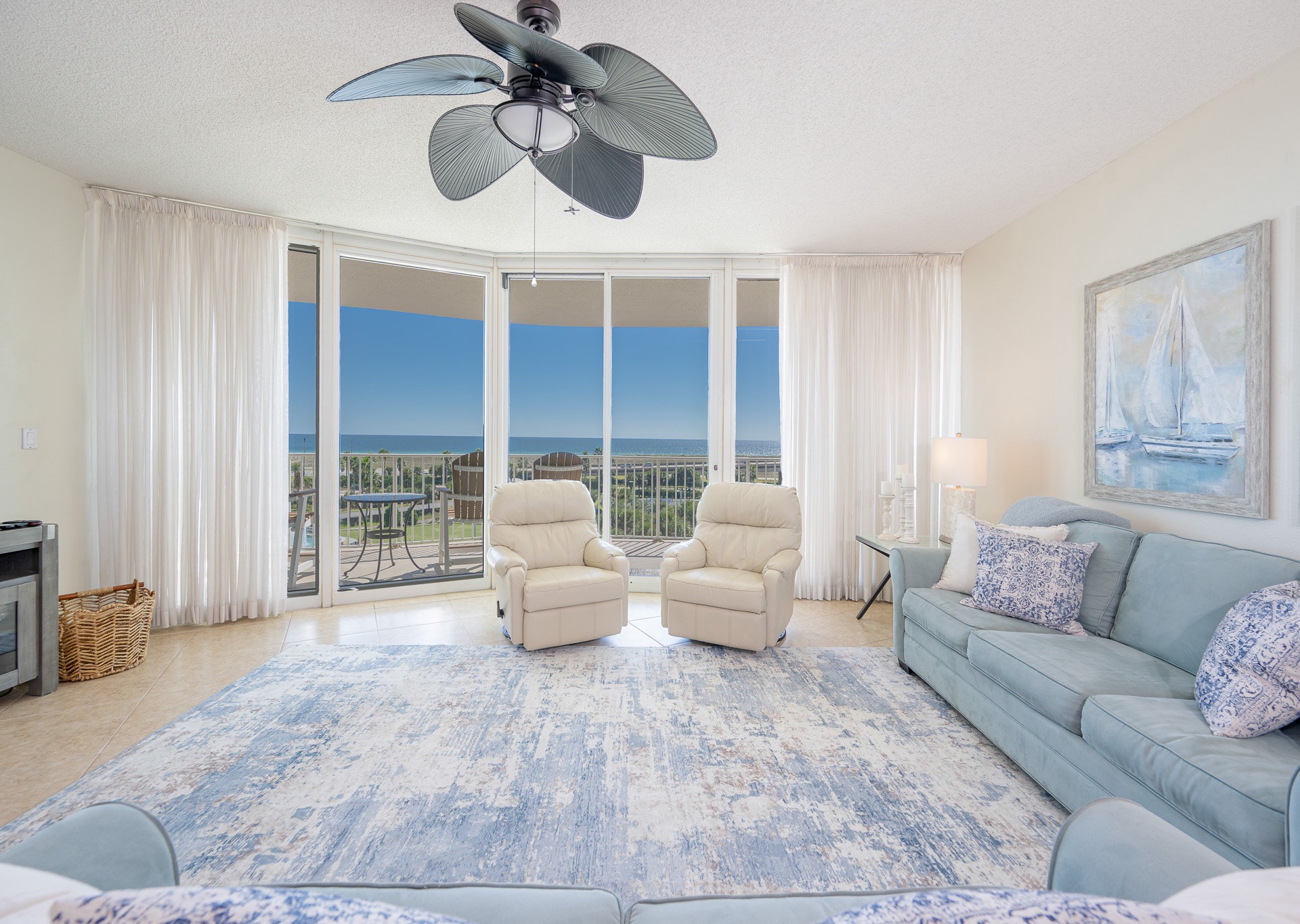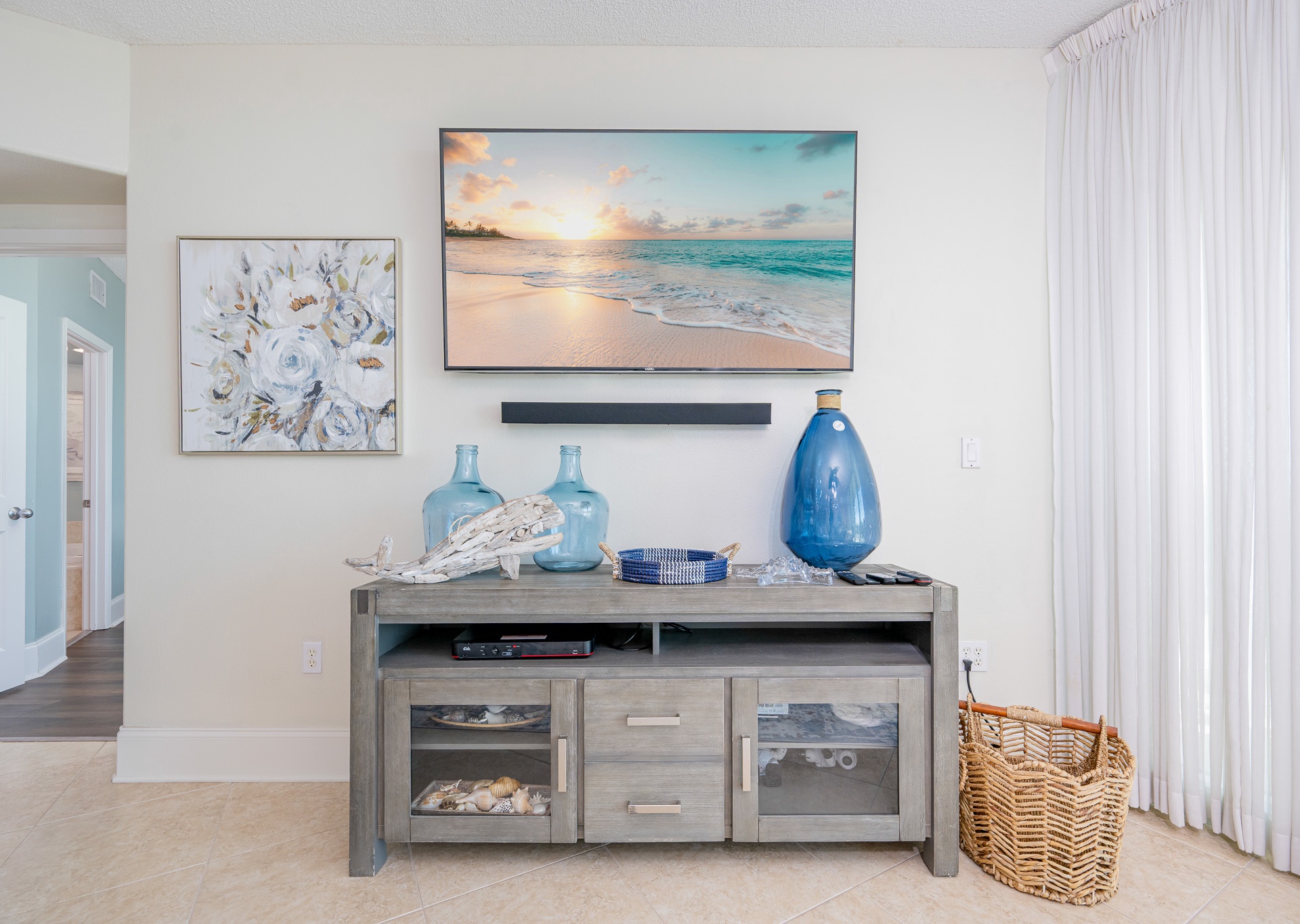 Throughout the condo, you’ll find wall-mounted flat-screen TVs, ceiling fans in every room, and stylish, comfortable décor designed to make you feel right at home.