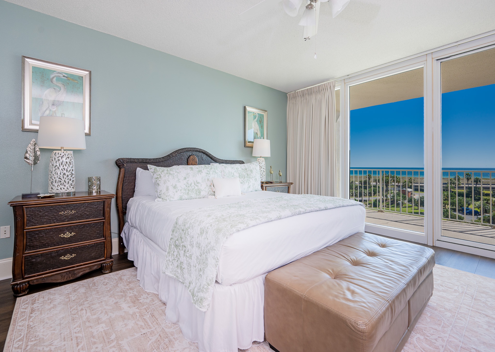 • Primary suite: King bed, private balcony access, and en-suite bath.