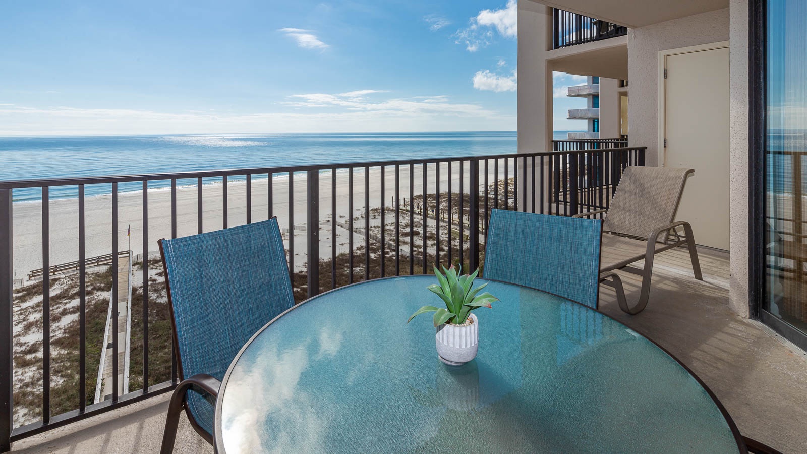 Yes, all Phoenix East units have floor-to-ceiling windows and private balconies with views of the Gulf.