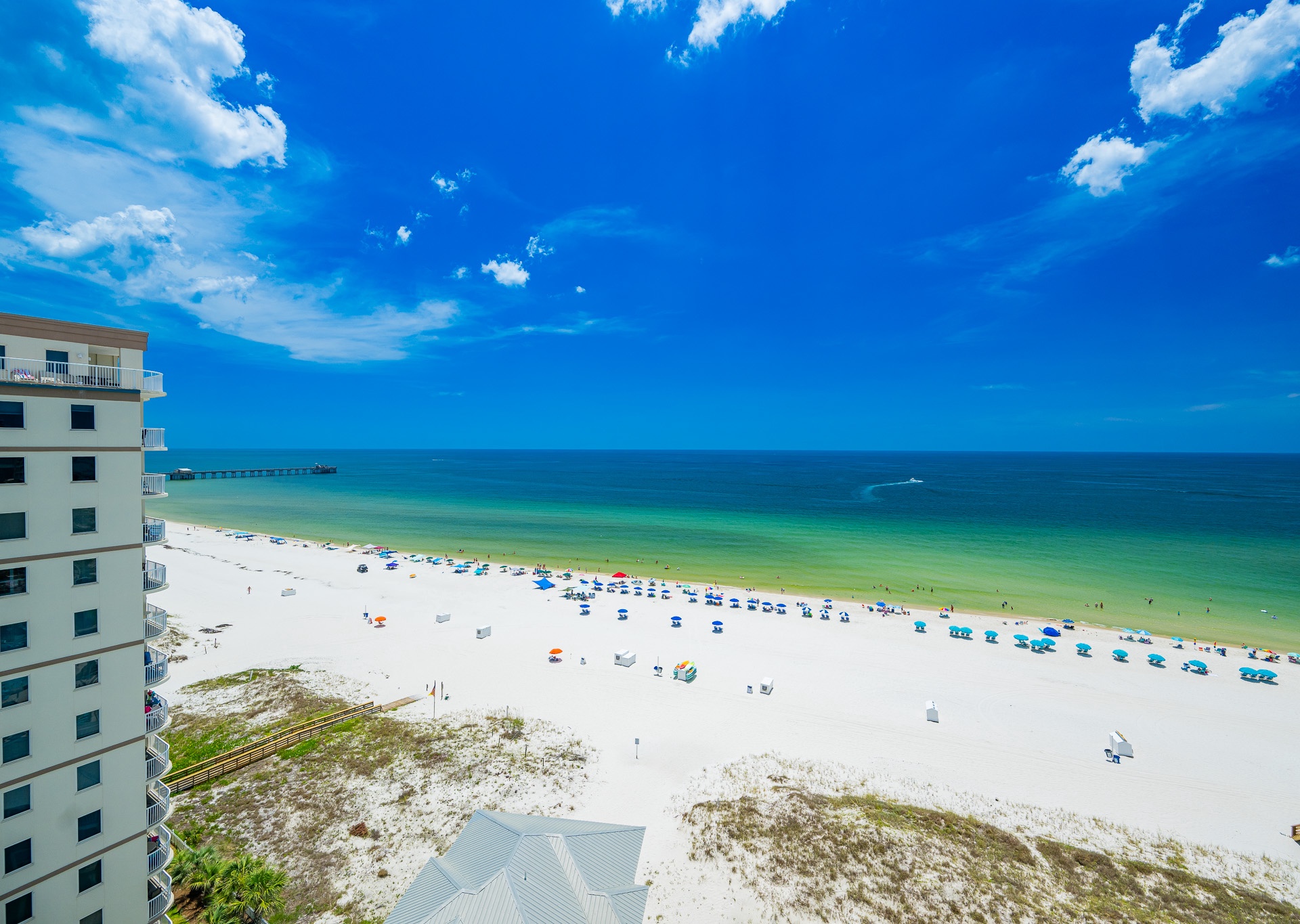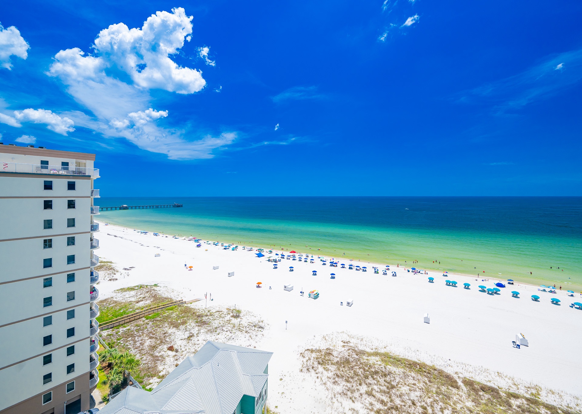 Phoenix Gulf Shores II features spacious 3- and 4-bedroom condos with open layouts and private balconies overlooking the Gulf.