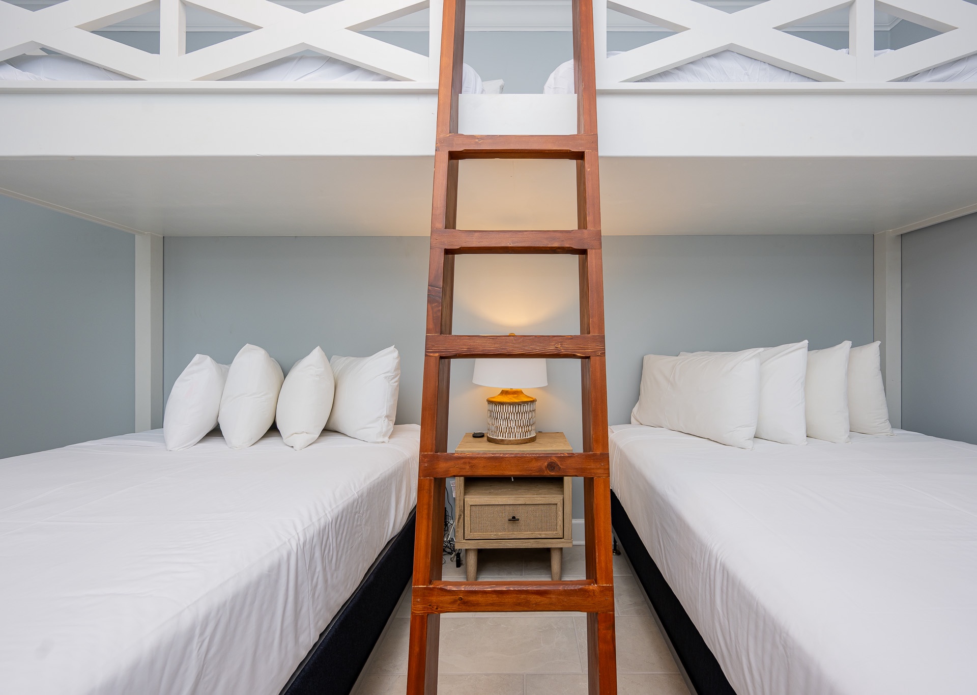 • Two full-size beds with full-size bunks above in the fourth bedroom