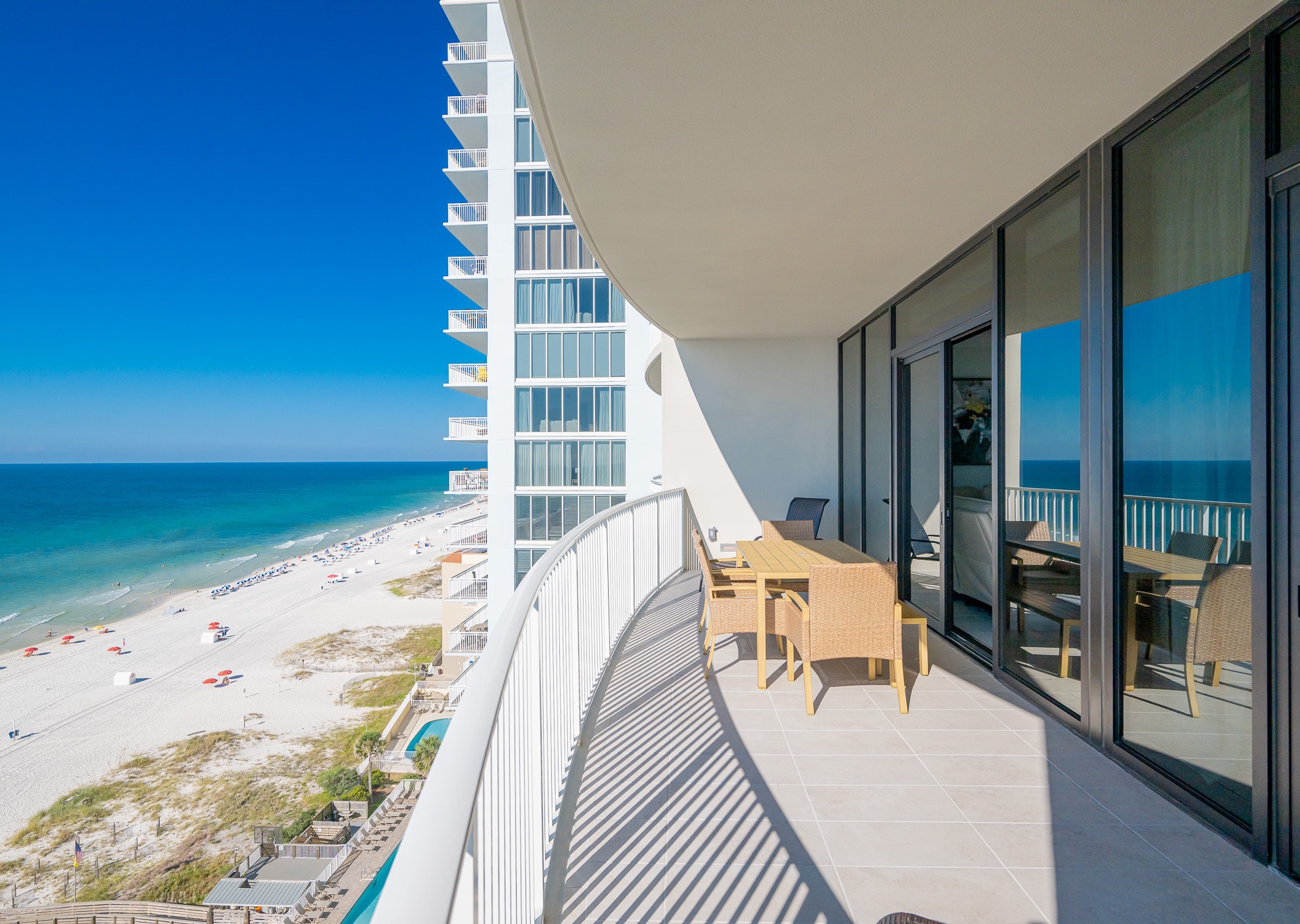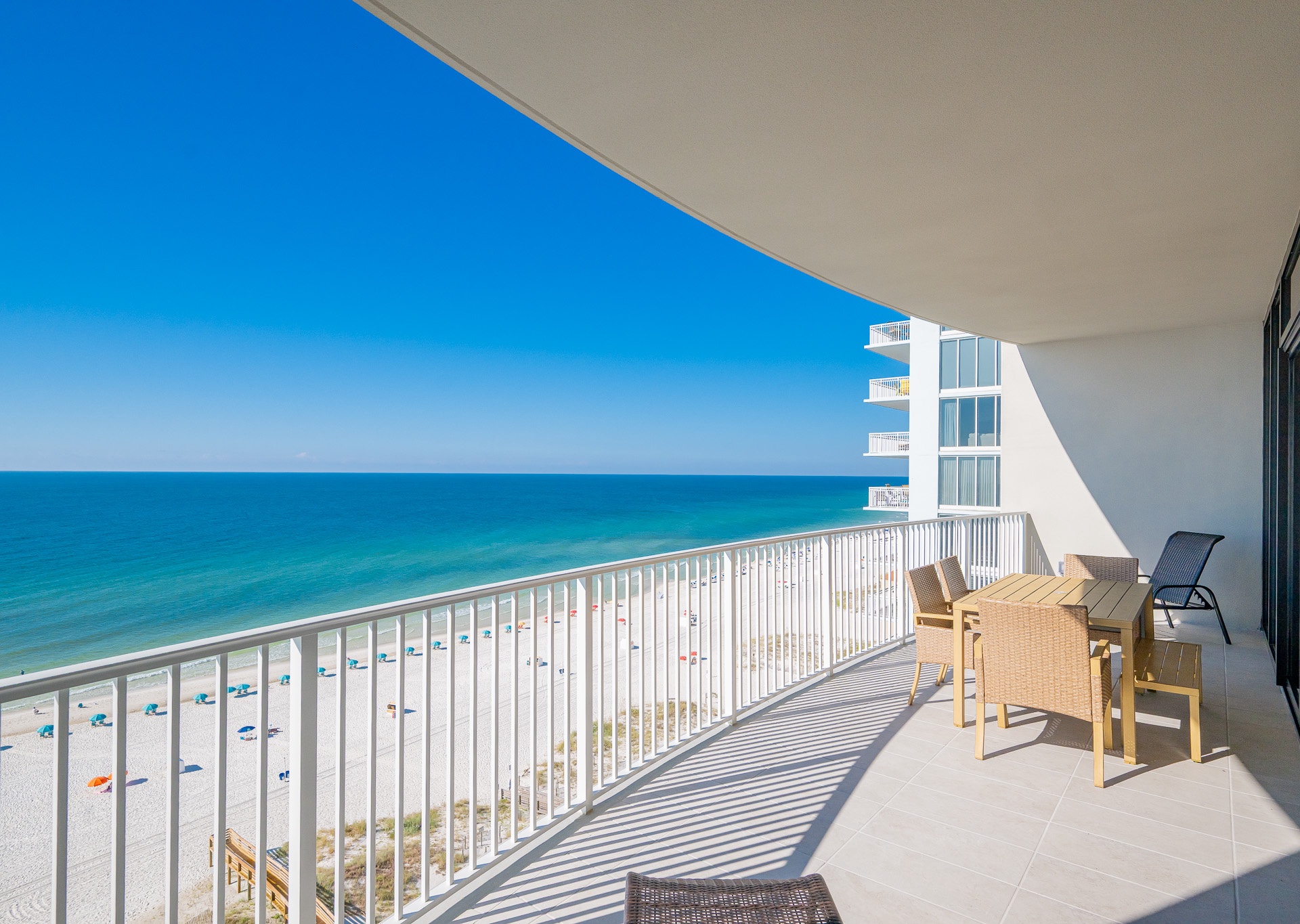 Phoenix Gulf Shores II features spacious 3- and 4-bedroom condos with open layouts and private balconies overlooking the Gulf.