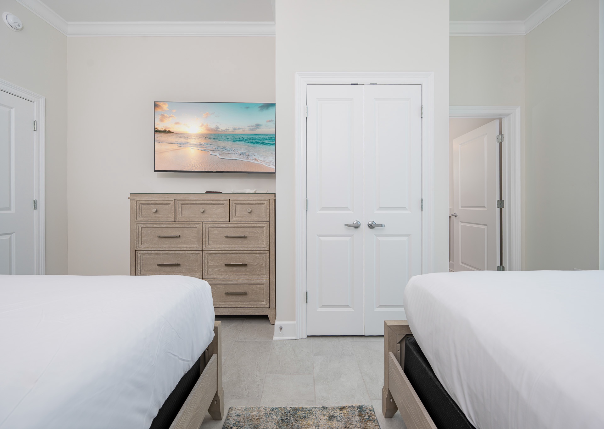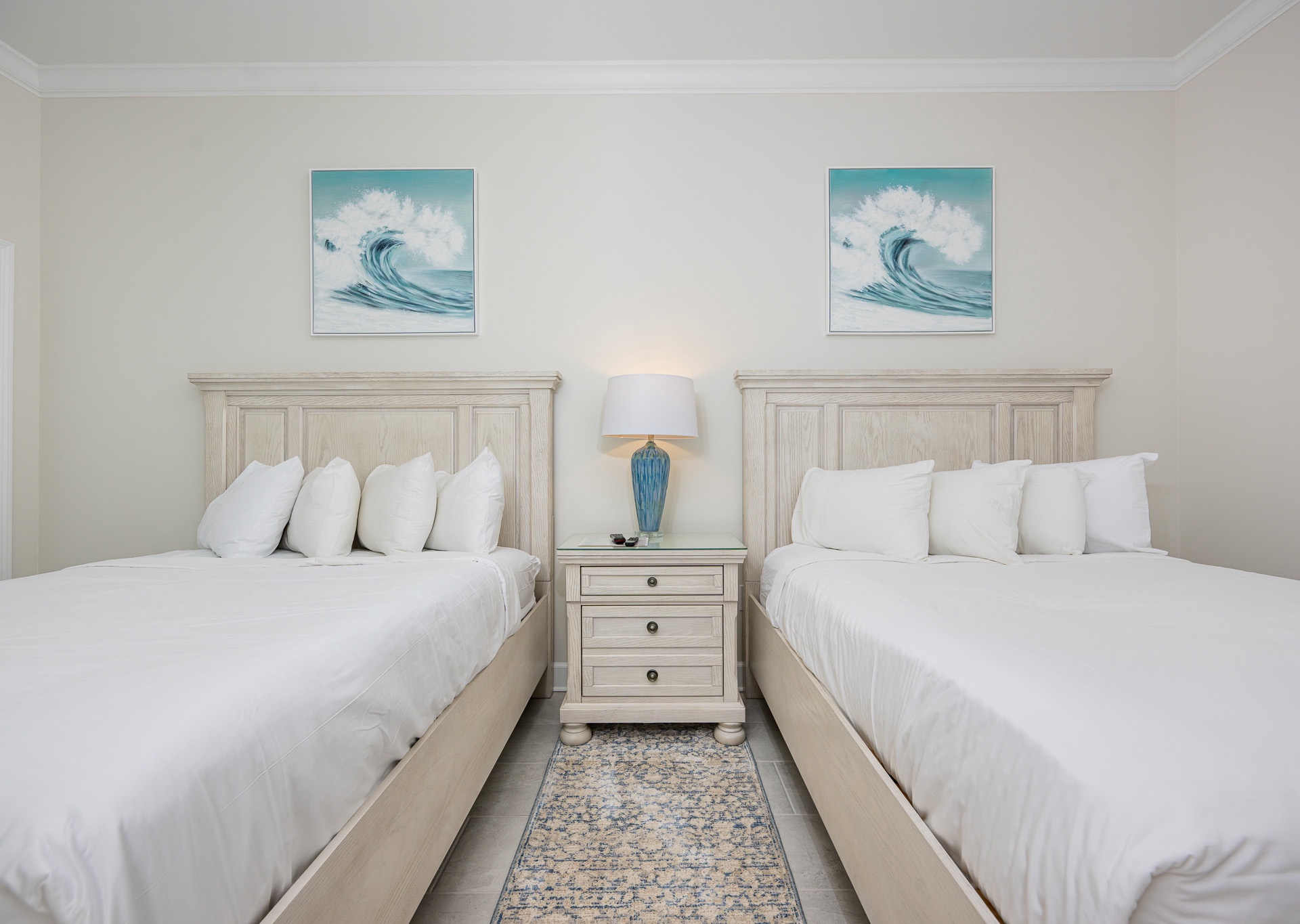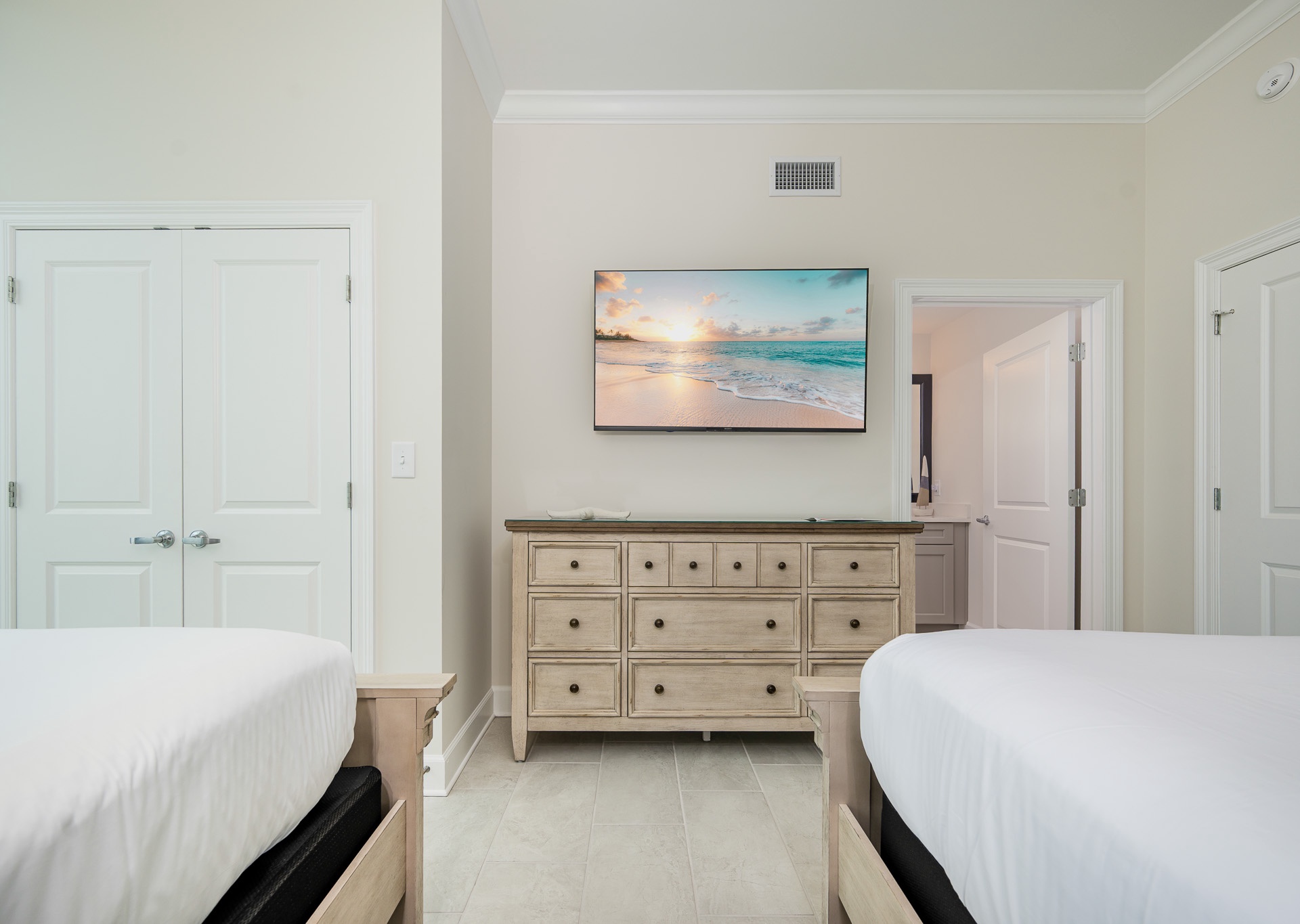 • Bedroom 4: Two queen beds, bath with walk-in shower and single vanity (accessible from the bedroom and hallway).
