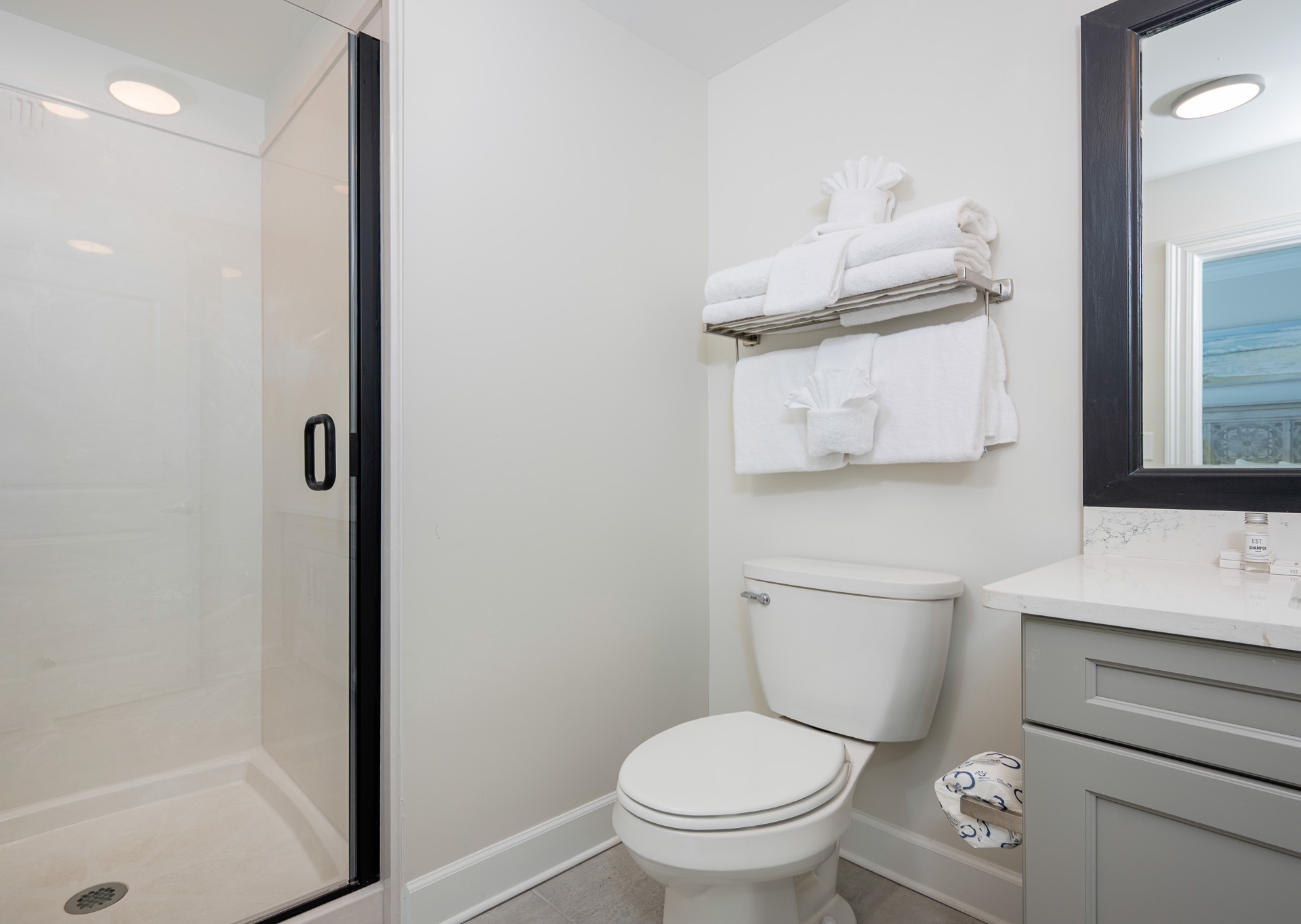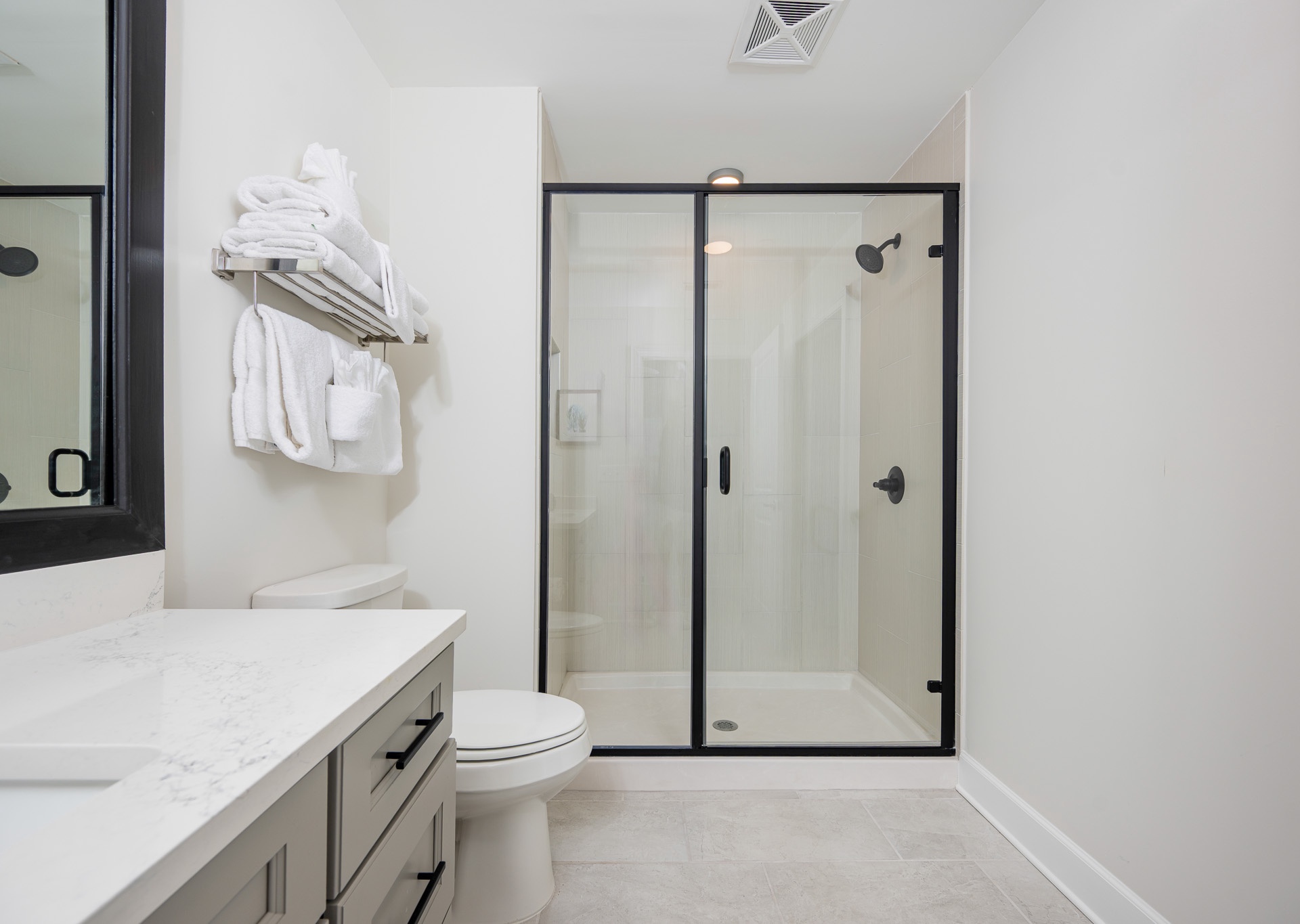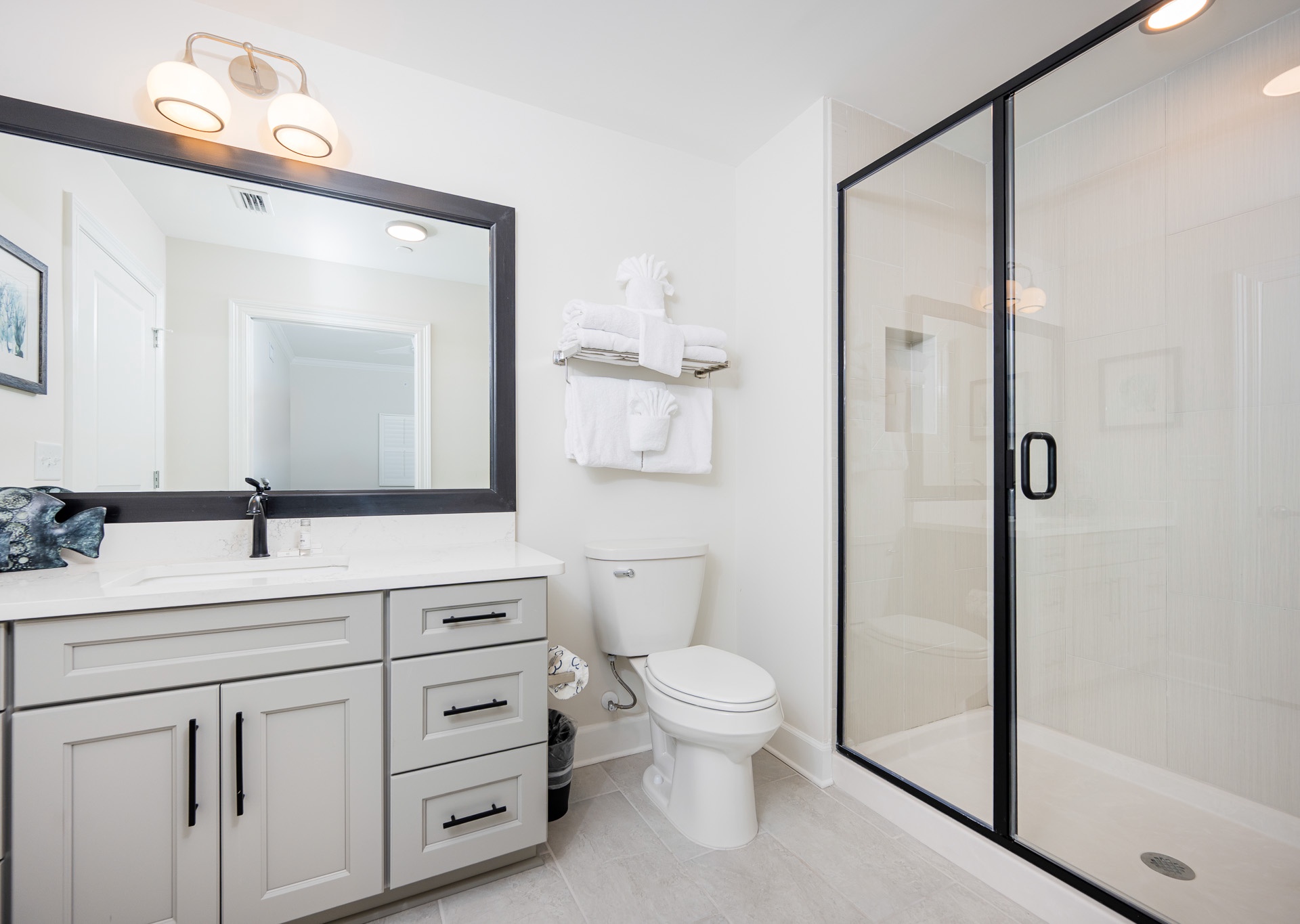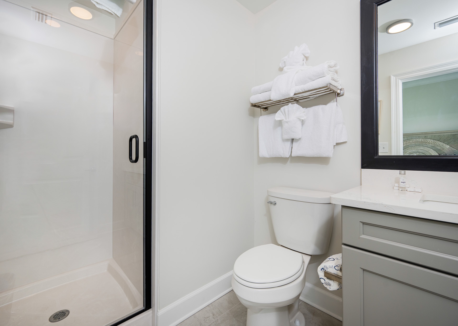 • Bedroom 4: Two queen beds, bath with walk-in shower and single vanity (accessible from the bedroom and hallway).