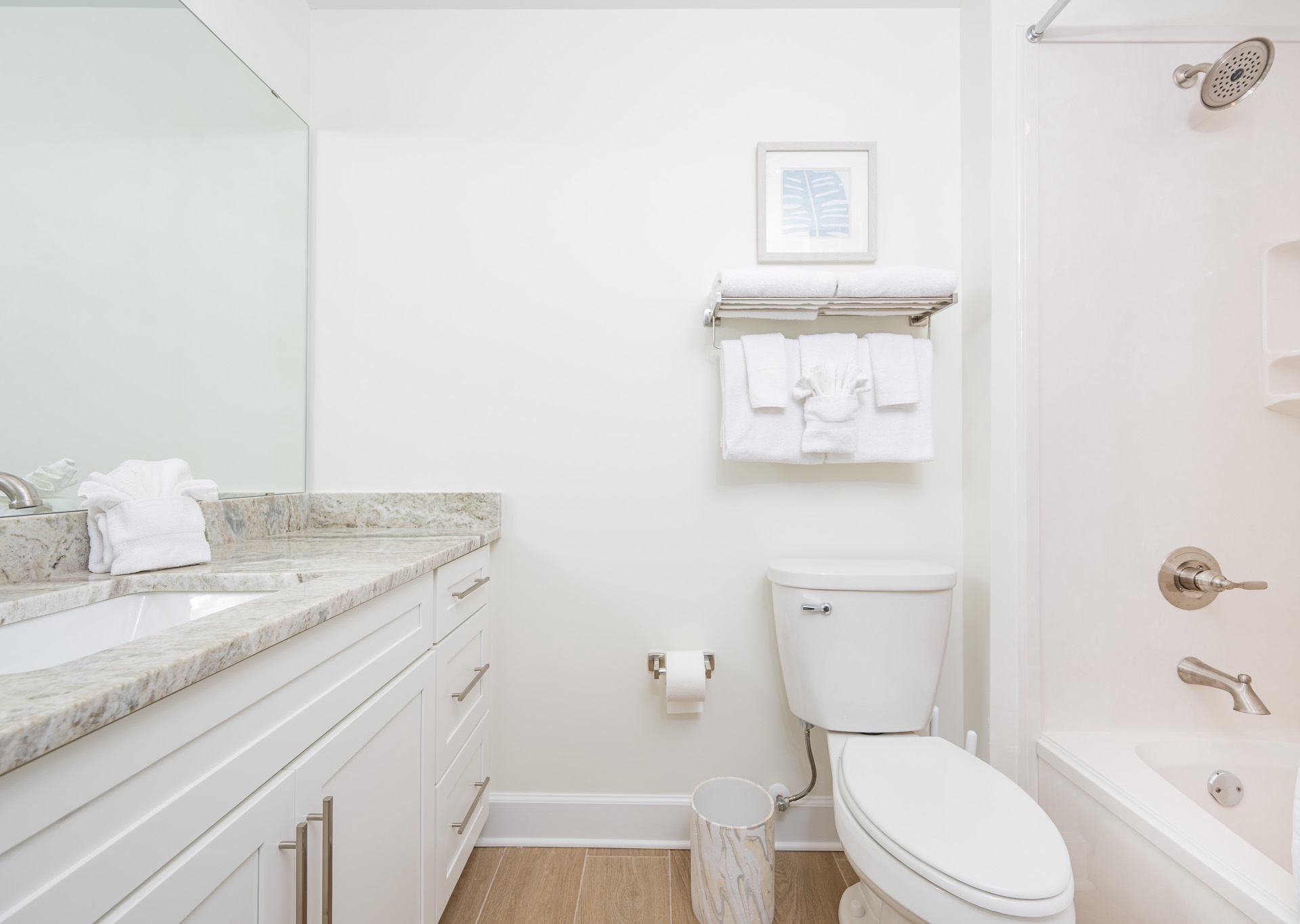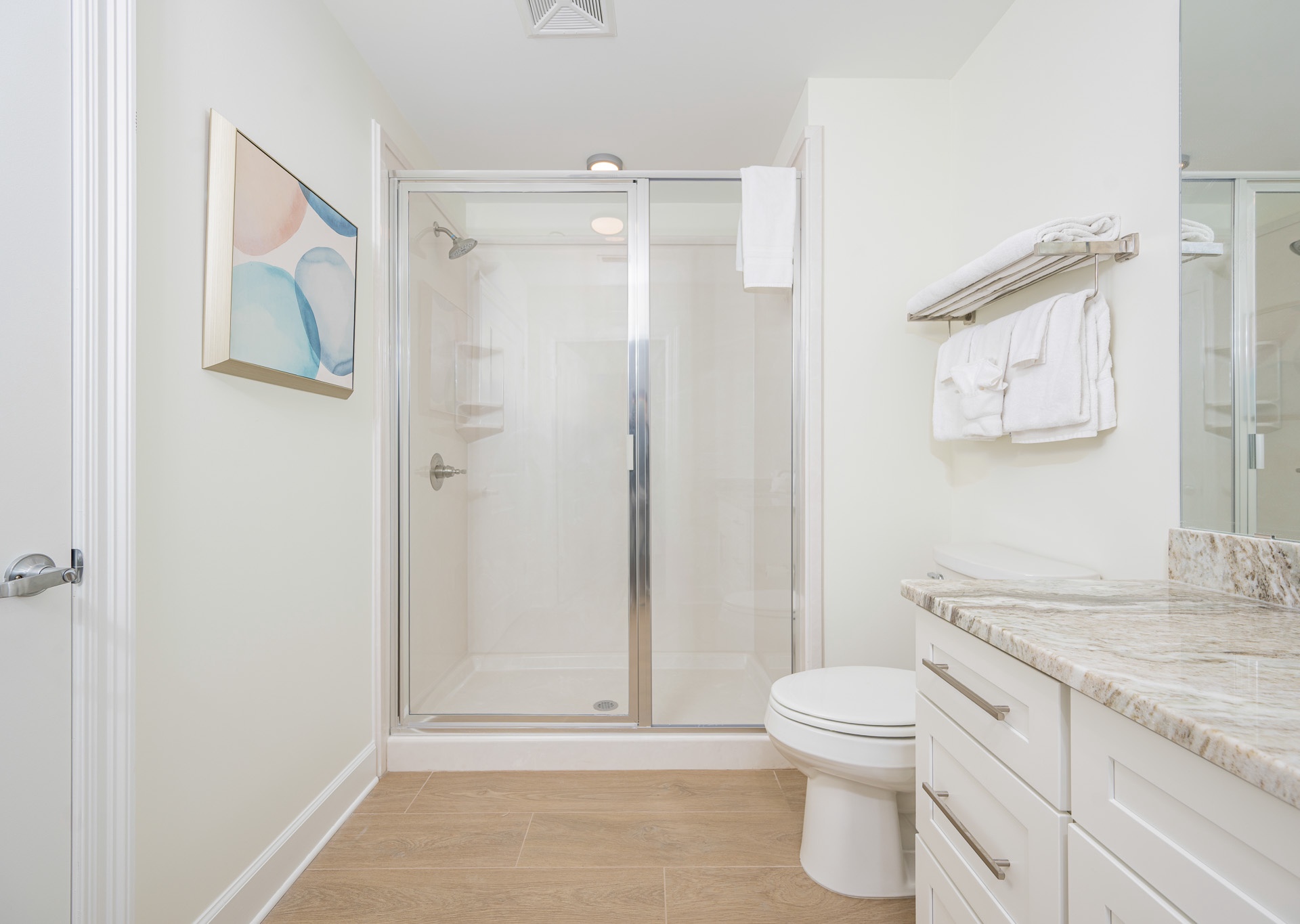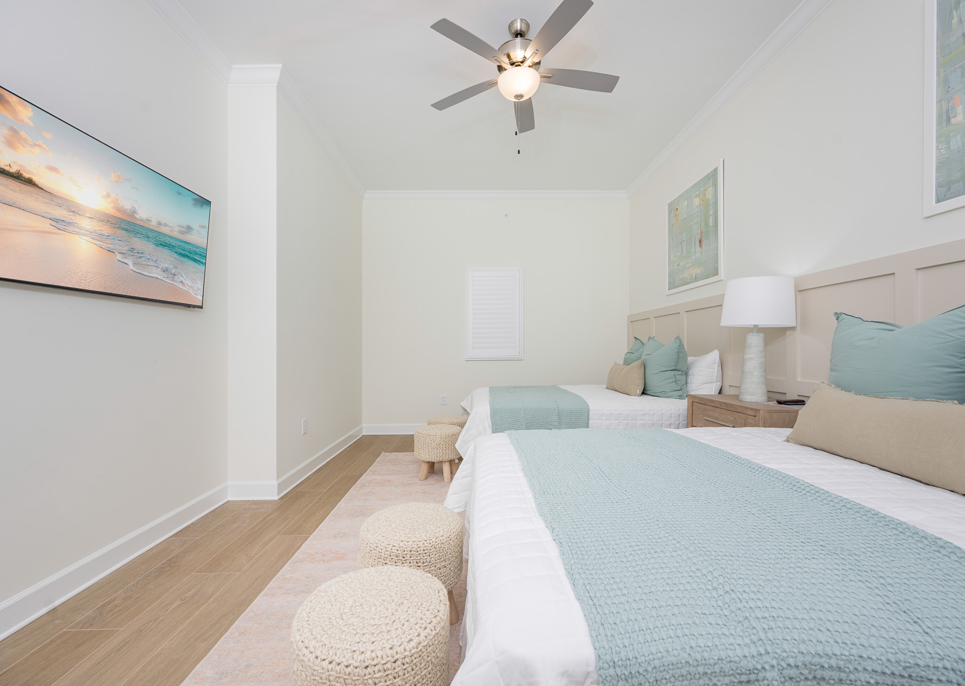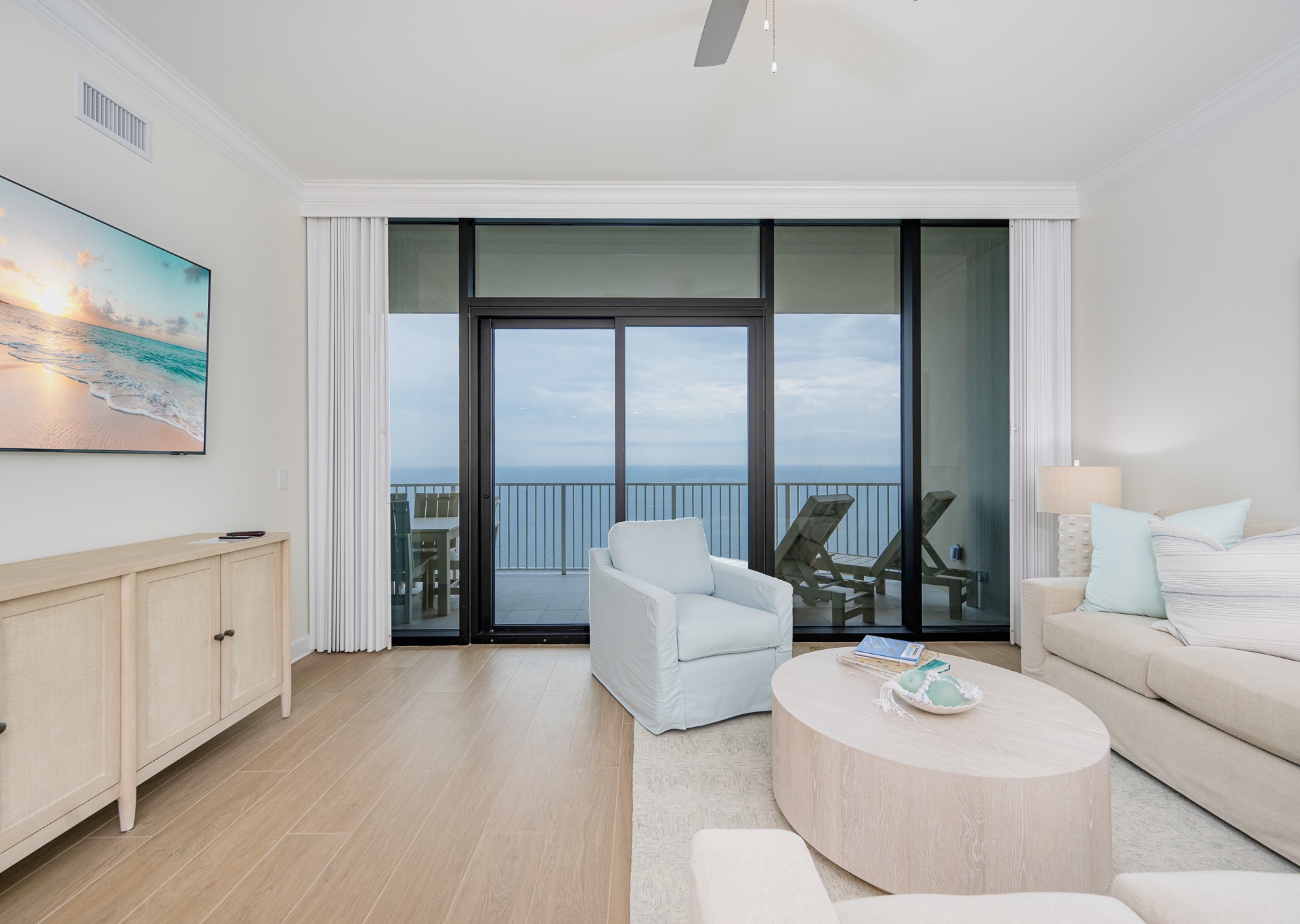 • Beautiful décor with gold accents, accent walls, and stylish touches that make it feel like a true coastal retreat