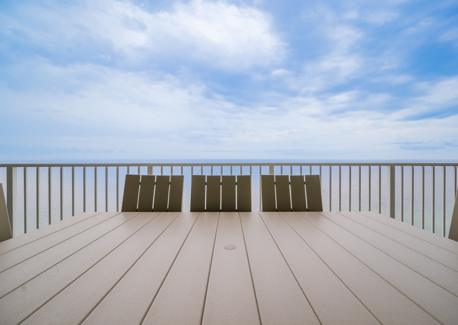 Step outside to the spacious tiled balcony, where chaise lounges and a large table with seating for eight invite you to dine al fresco, play cards, or enjoy a glass of wine under the stars while listening to the waves.