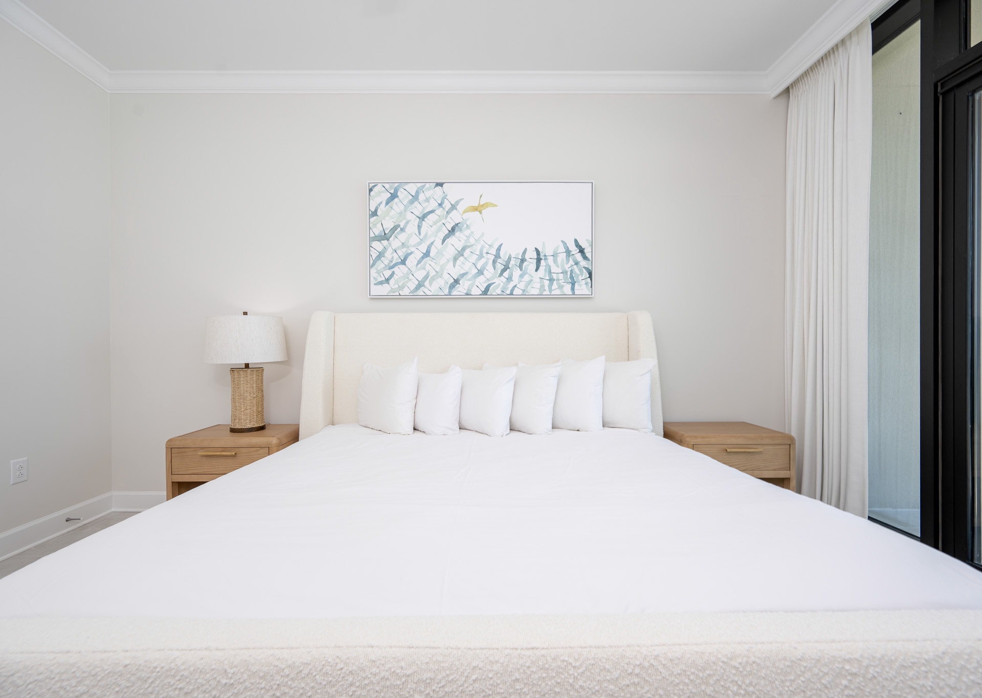 - Living areas with floor-to-ceiling windows, 10-foot smooth ceilings, large tile flooring, and crown molding.