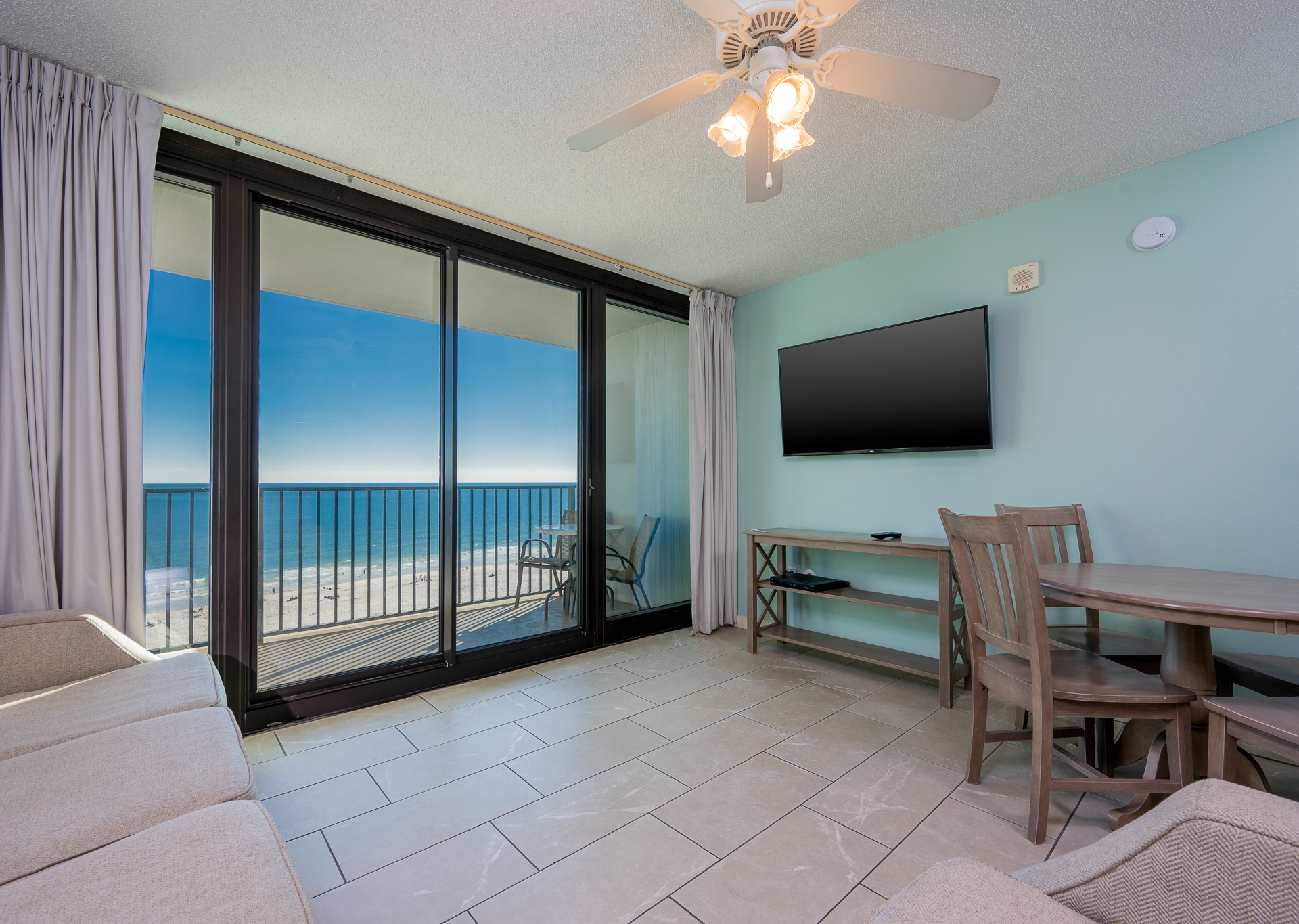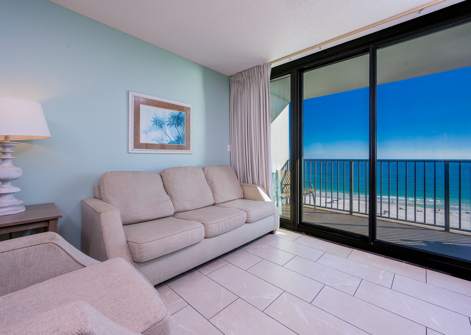 Step out onto your private balcony to enjoy fantastic views, cool off in the sparkling swimming pool, or take a short stroll directly from the pool deck onto the soft sands of the Gulf Shores beach.