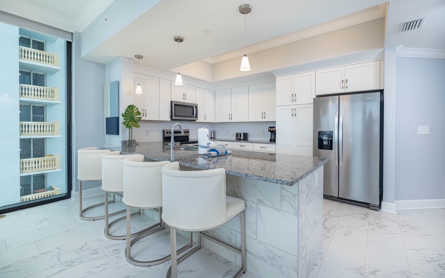 Yes, all units feature floor-to-ceiling windows and private balconies designed to maximize Gulf-front views.
