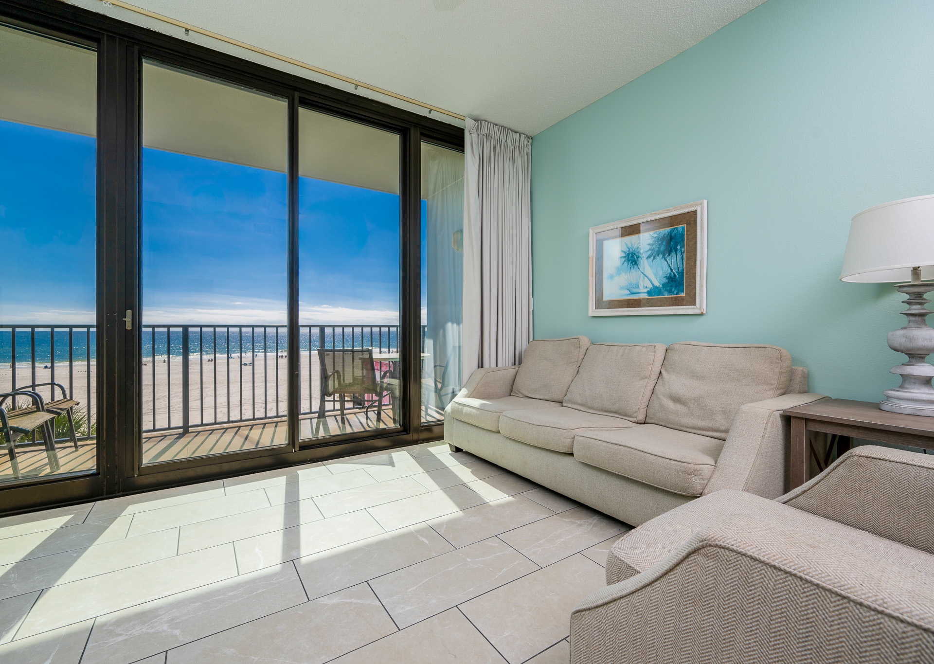 Step out onto your private balcony to enjoy fantastic views, cool off in the sparkling swimming pool, or take a short stroll directly from the pool deck onto the soft sands of the Gulf Shores beach.