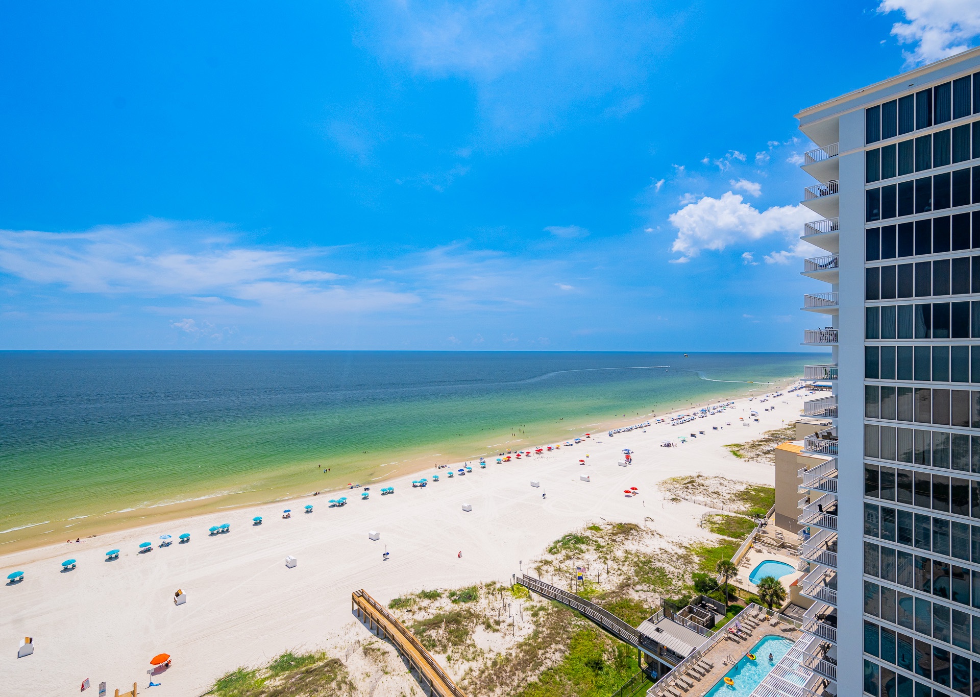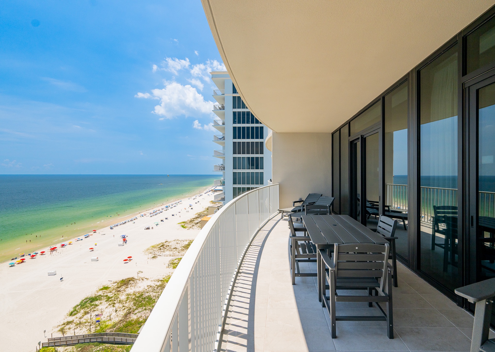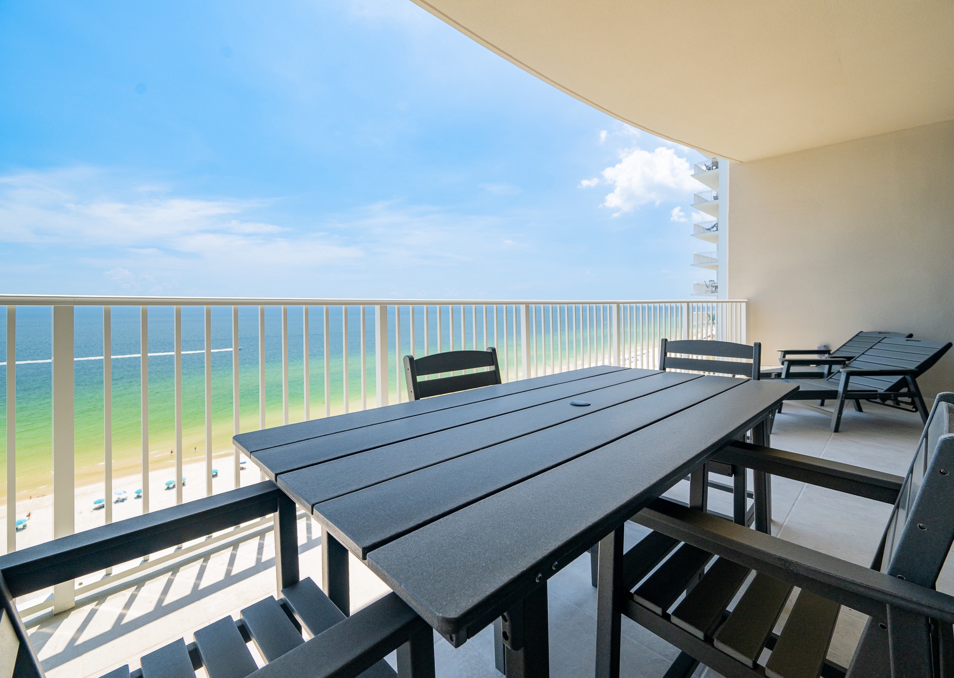 Phoenix Gulf Shores II features spacious 3- and 4-bedroom condos with open layouts and private balconies overlooking the Gulf.