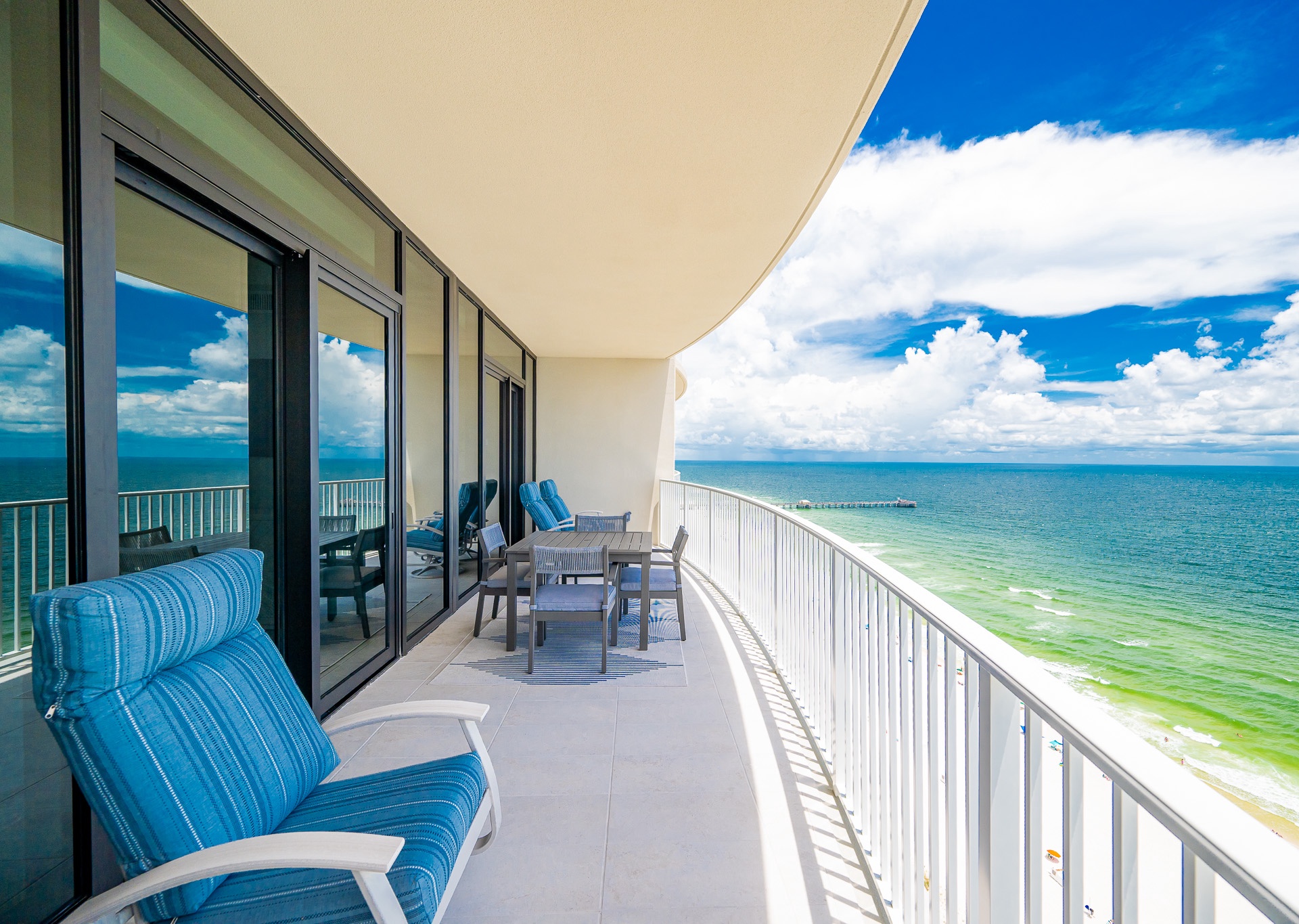 Yes, all units feature floor-to-ceiling windows and private balconies designed to maximize Gulf-front views.
