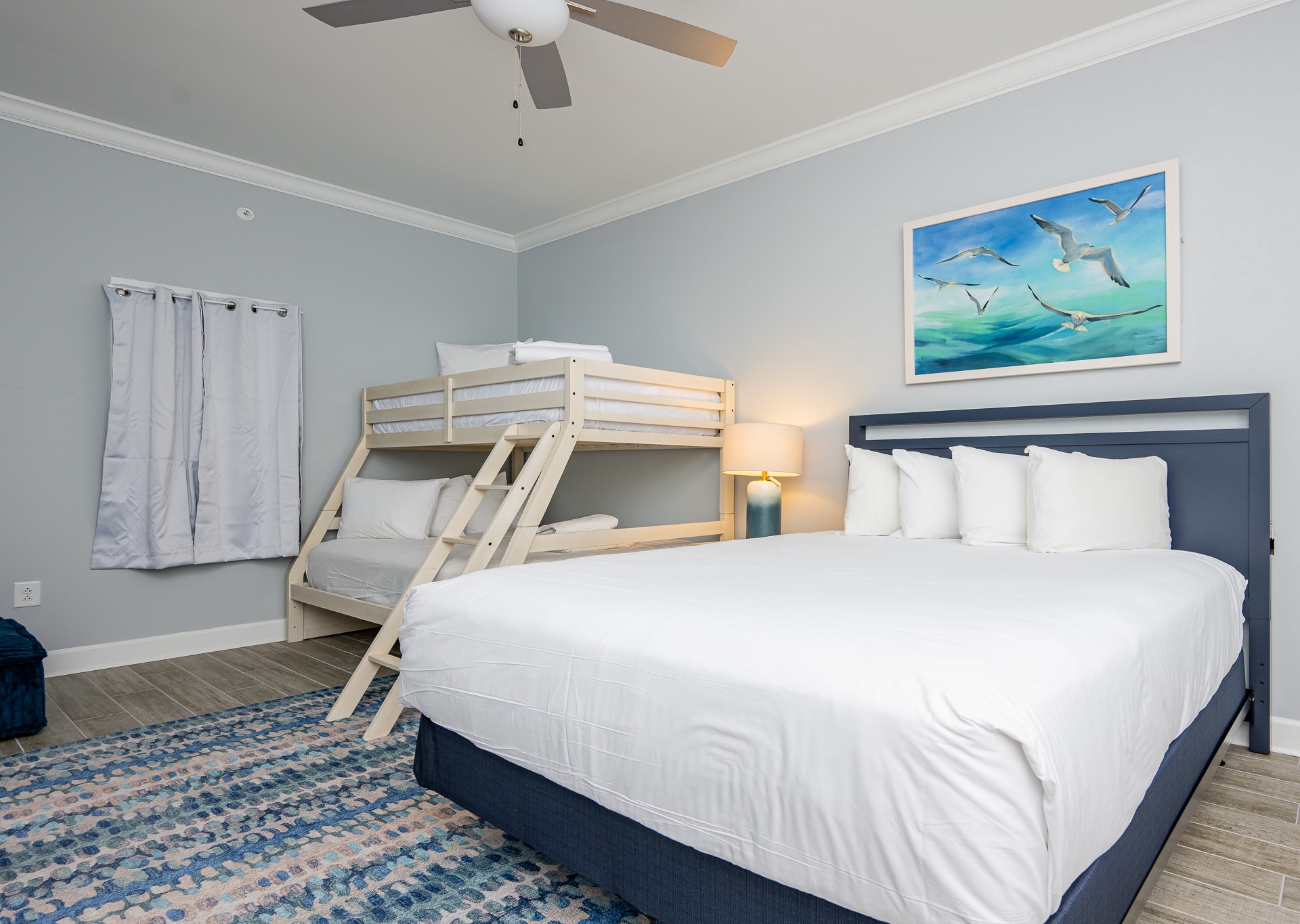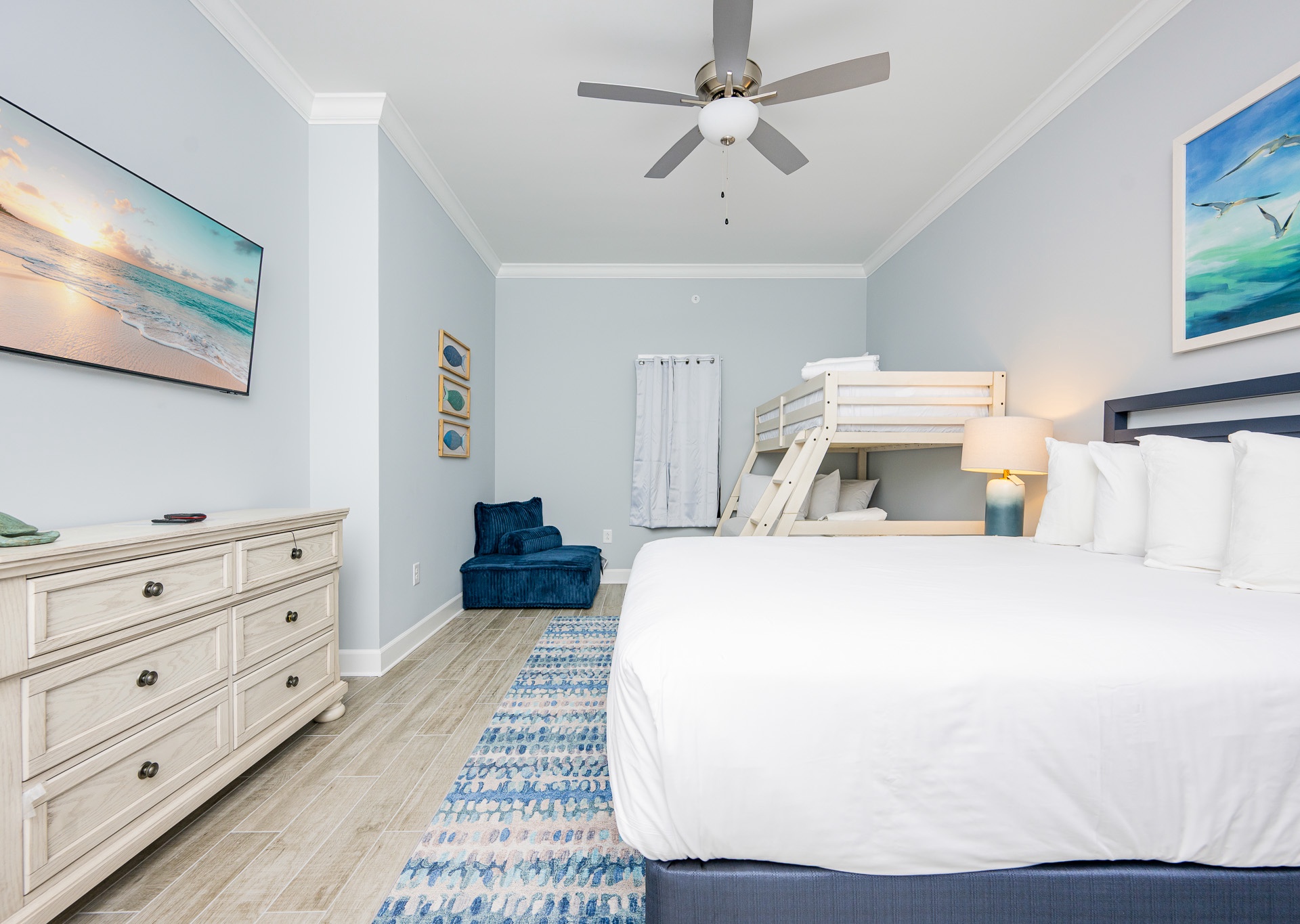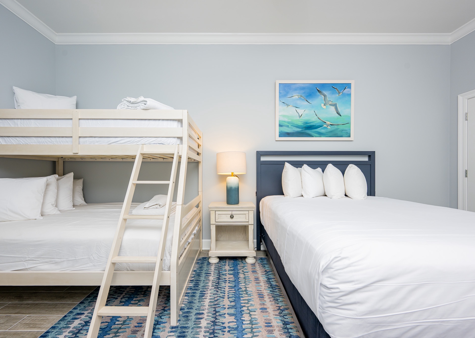 • Queen bed plus a twin-over-full bunk bed in the third bedroom