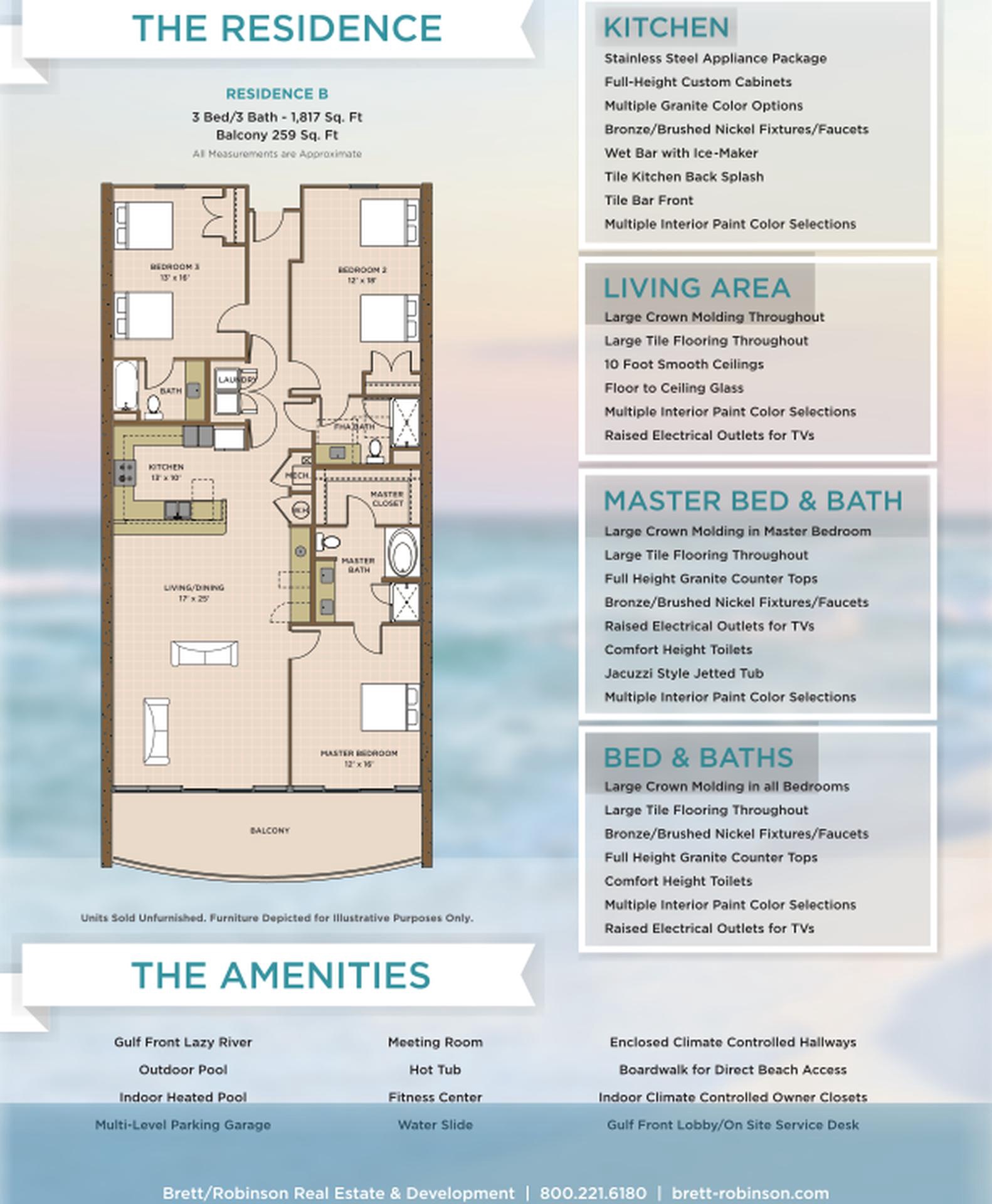 - Bedrooms & Bathrooms with full-height granite countertops, bronze/brushed nickel fixtures, comfort-height toilets, and raised electrical outlets for TVs.