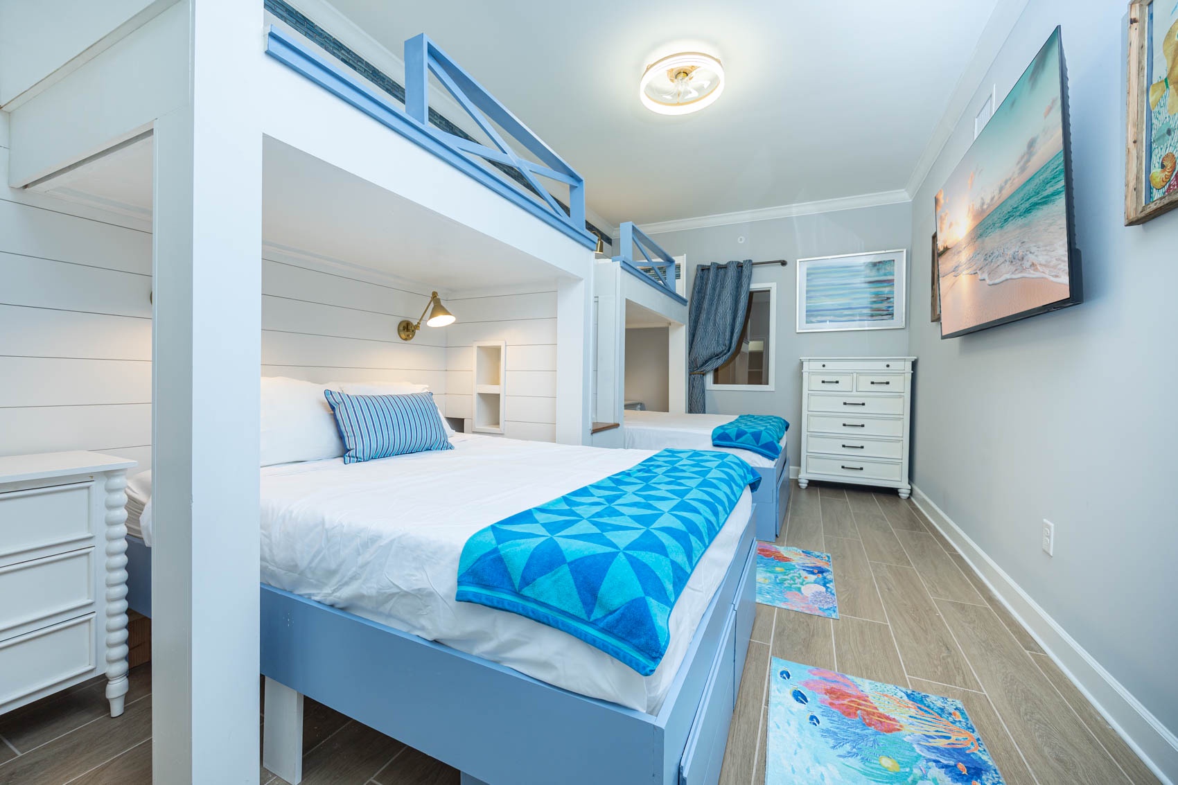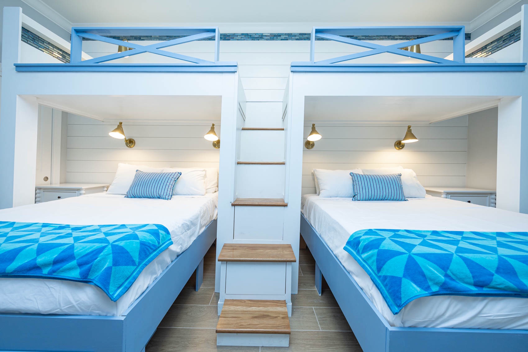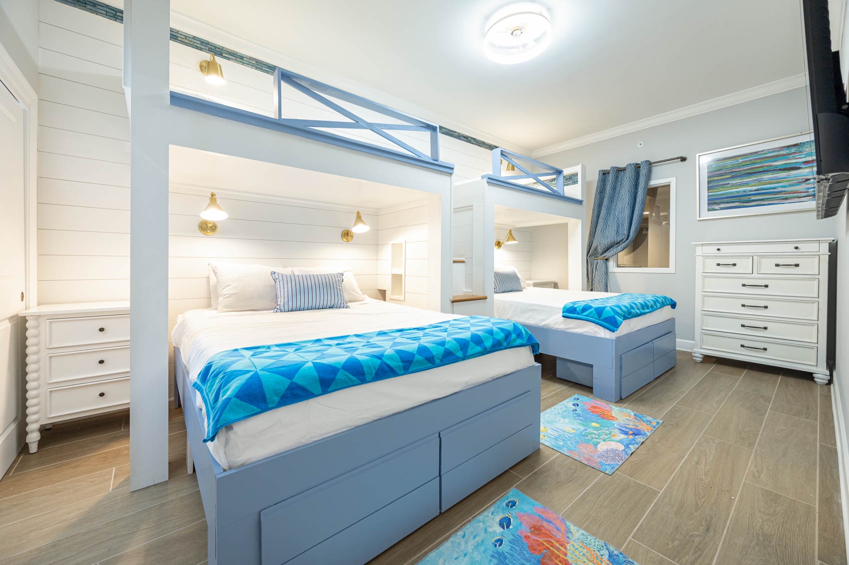 • Fourth bedroom: Two queen beds with loft-style twin bunks above + en suite bath with walk-in shower