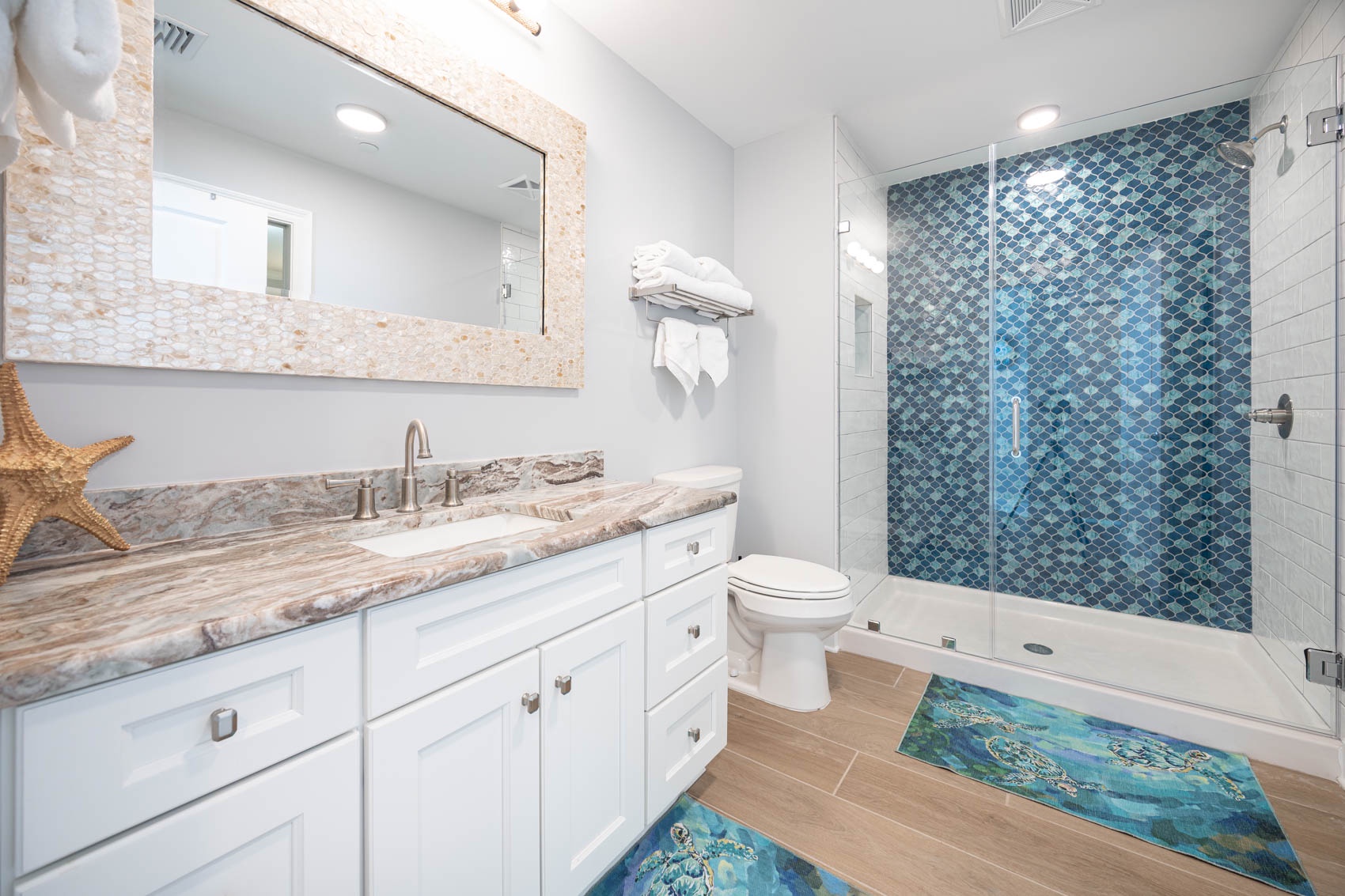 • Second bedroom: Two queen beds + private bath with a gorgeous tiled walk-in shower