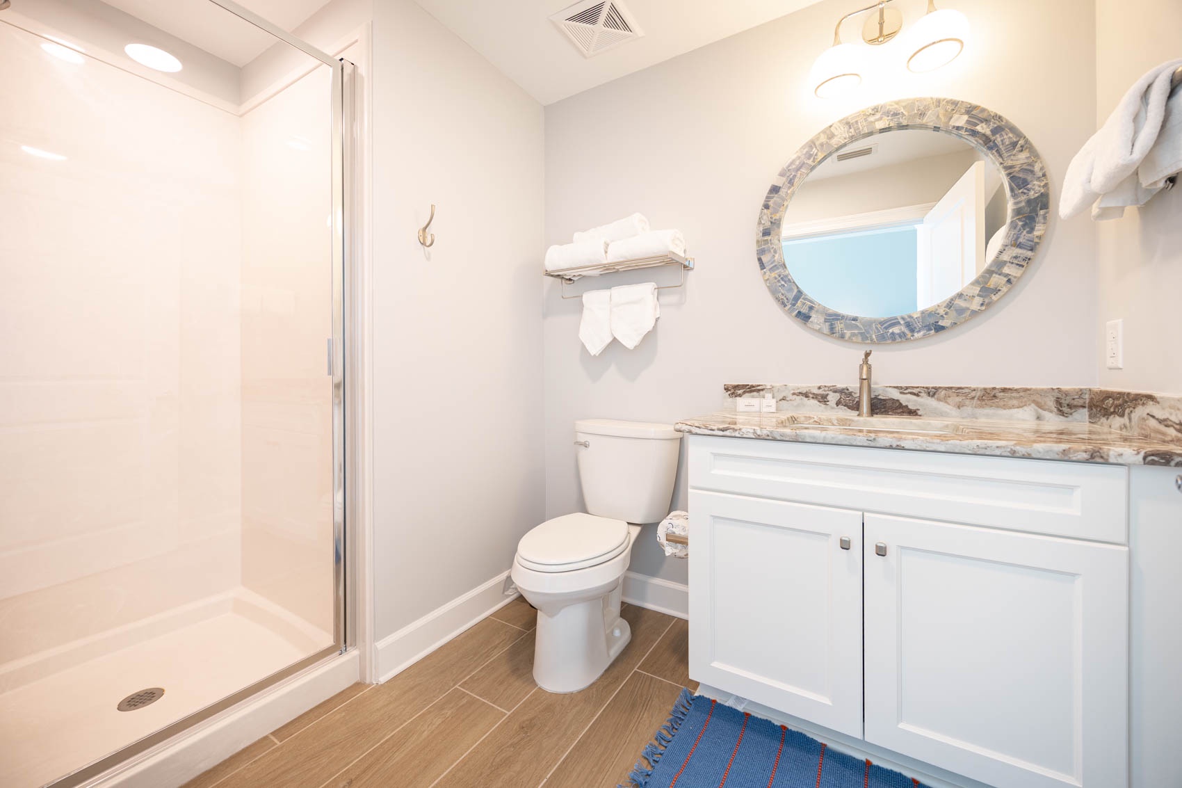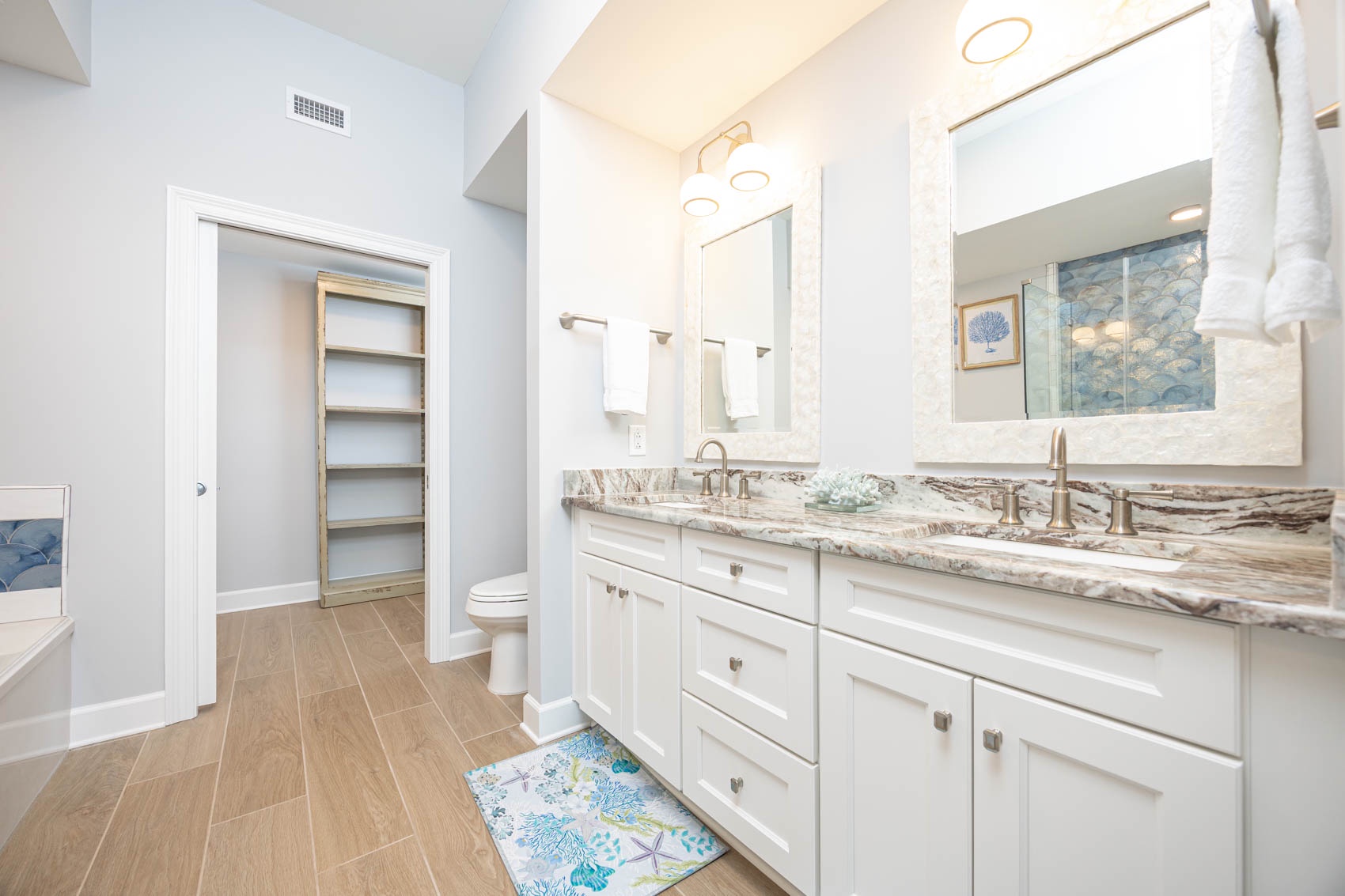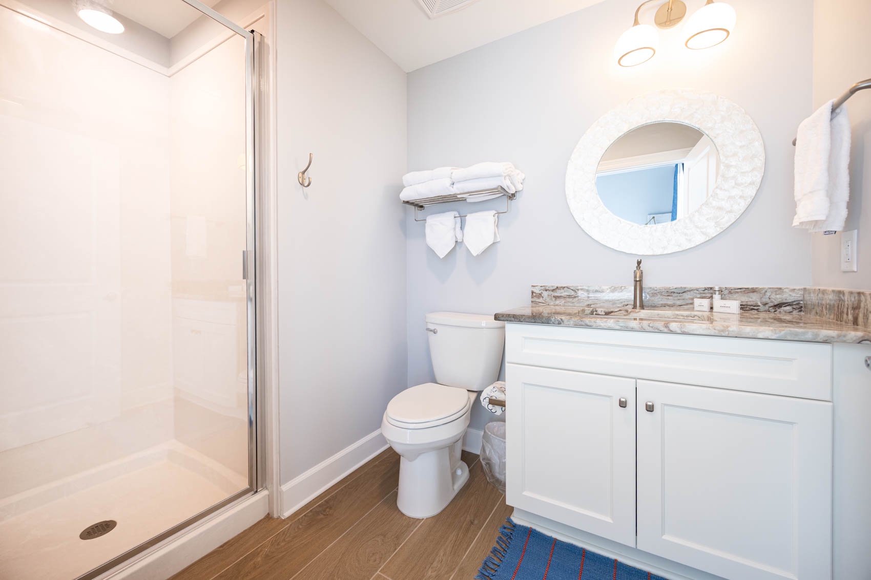 Each bedroom has its own private bathroom, and two of the guest rooms offer beautiful beach-facing views, bringing in that coastal charm.