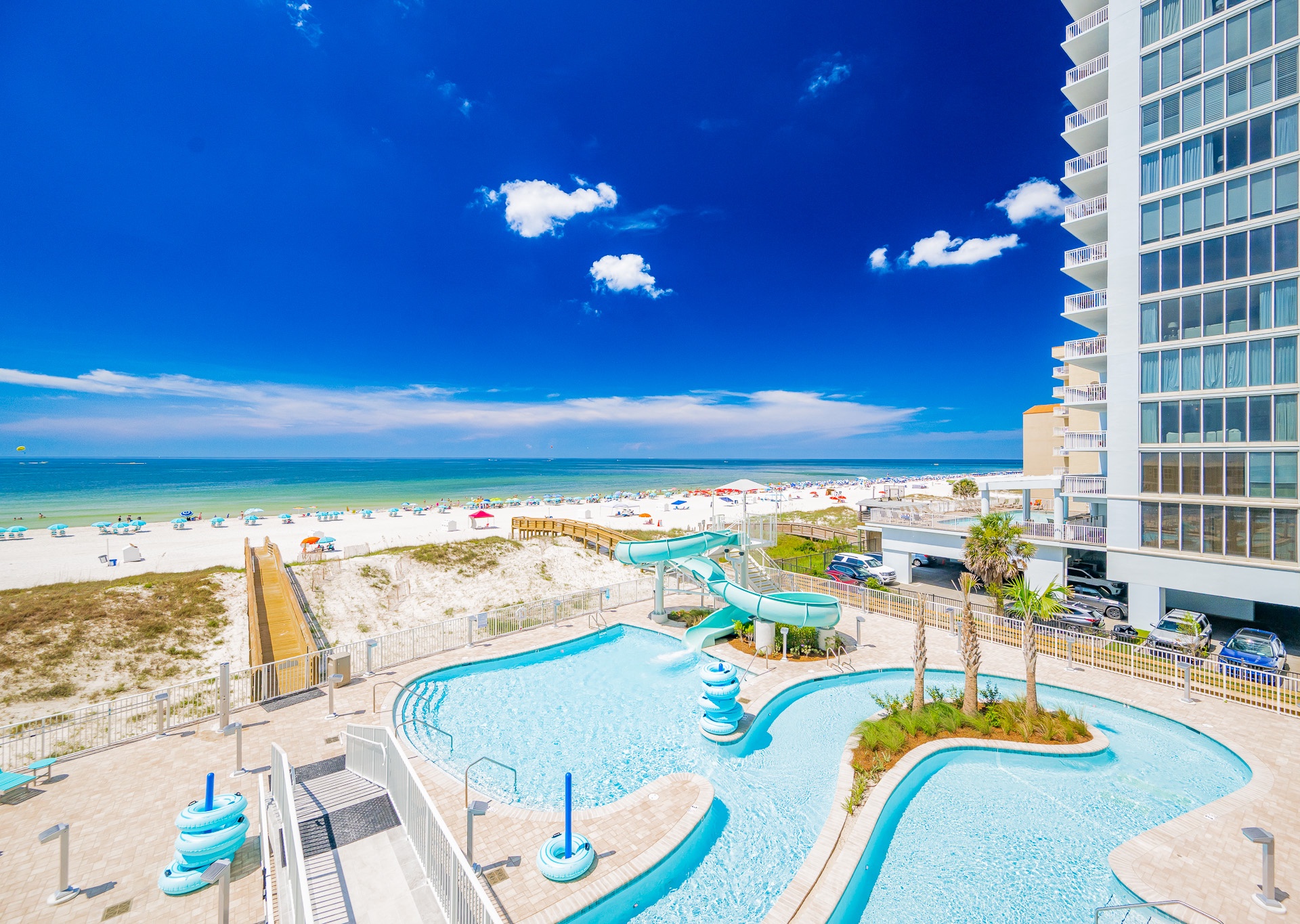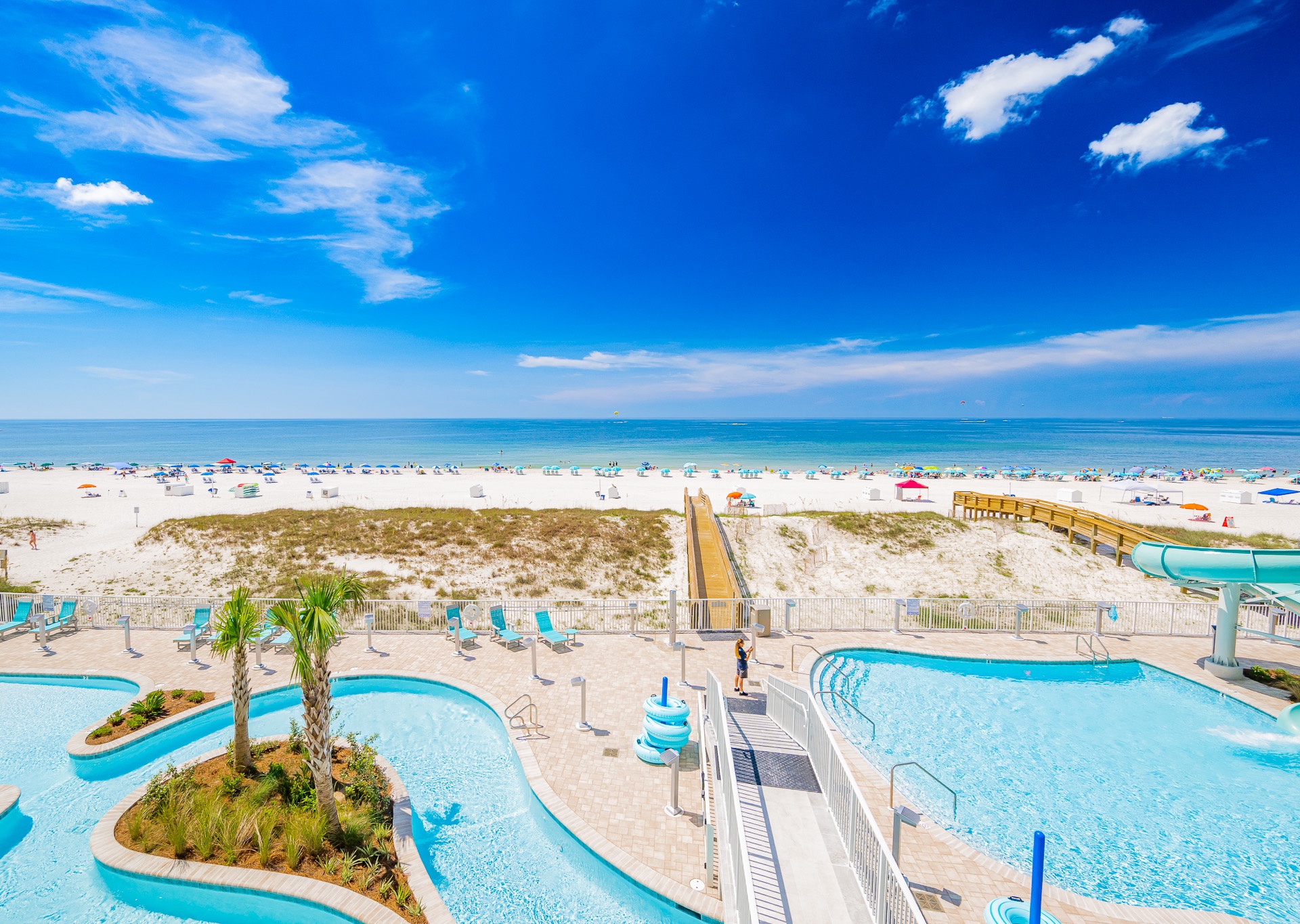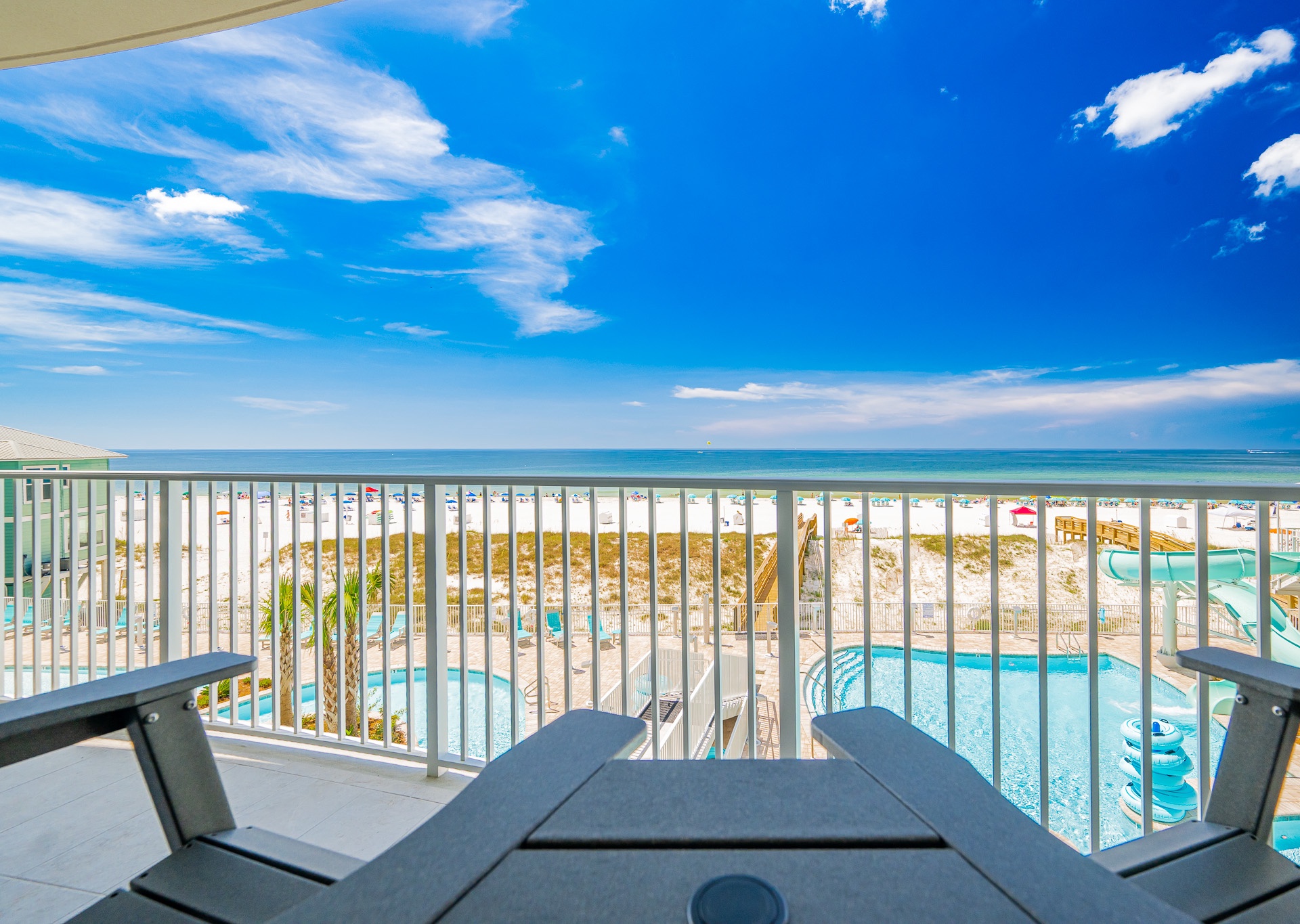 • Gorgeous views of the Gulf, lazy river, pool, and waterslide