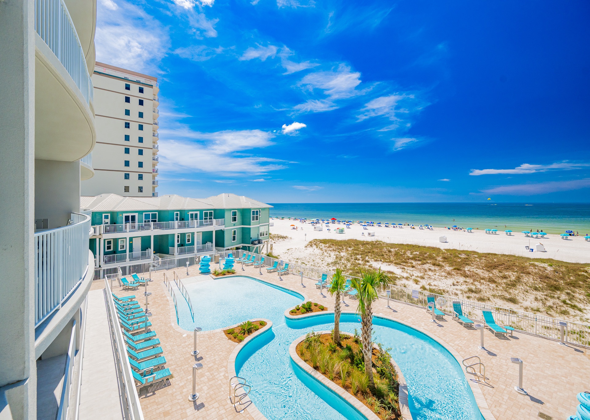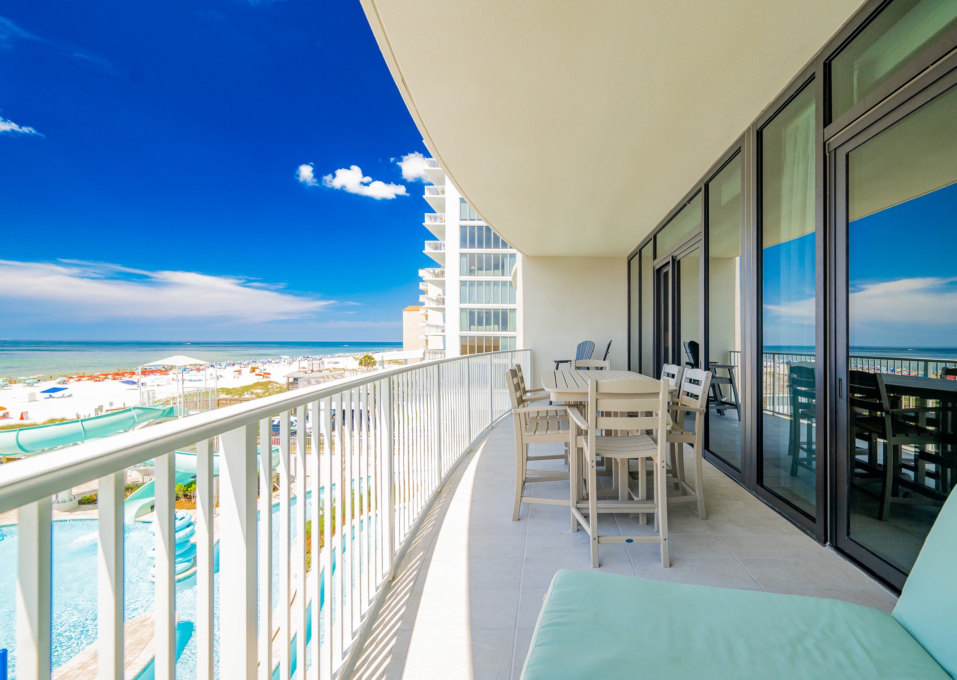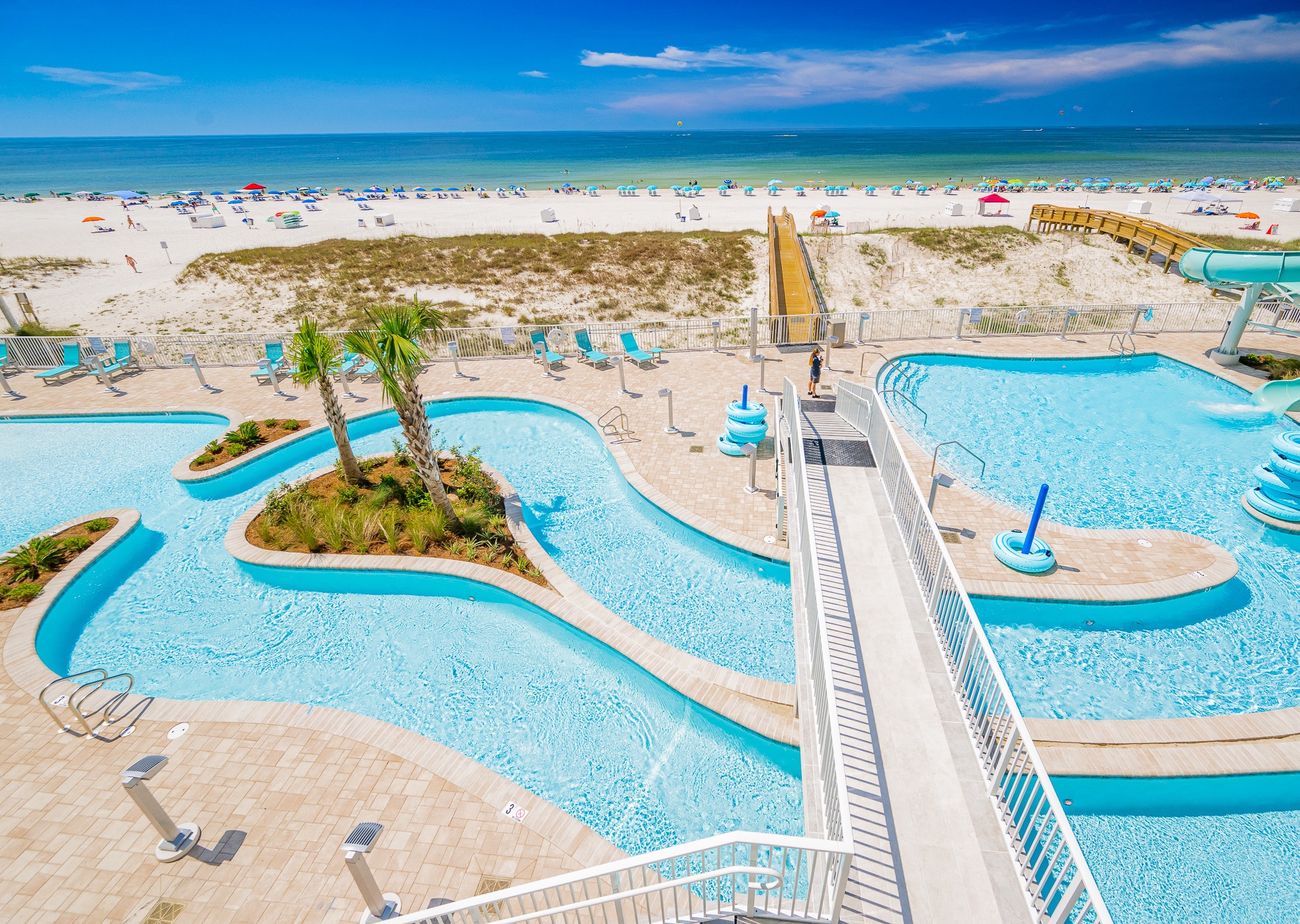 • Gorgeous views of the Gulf, lazy river, pool, and waterslide
