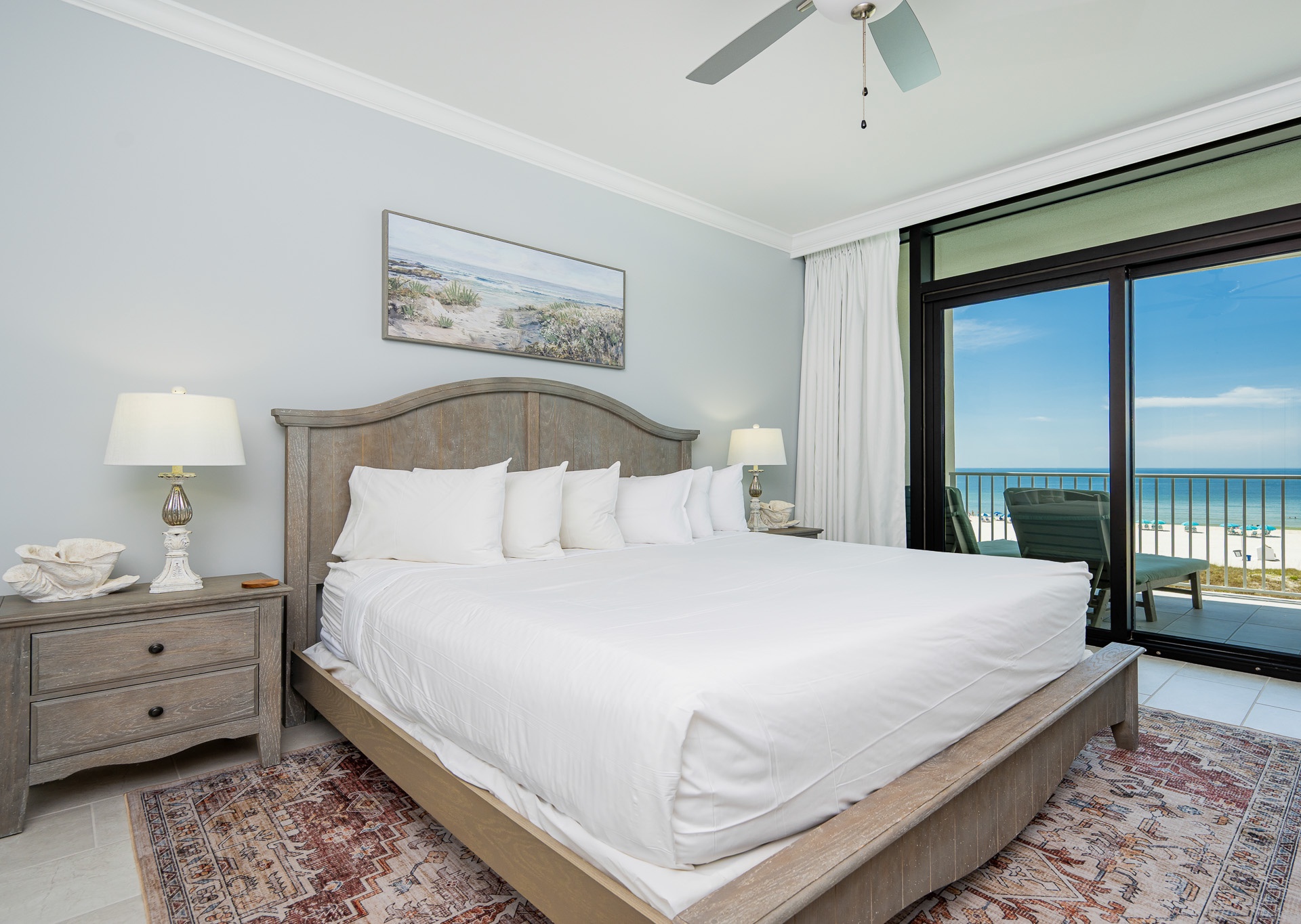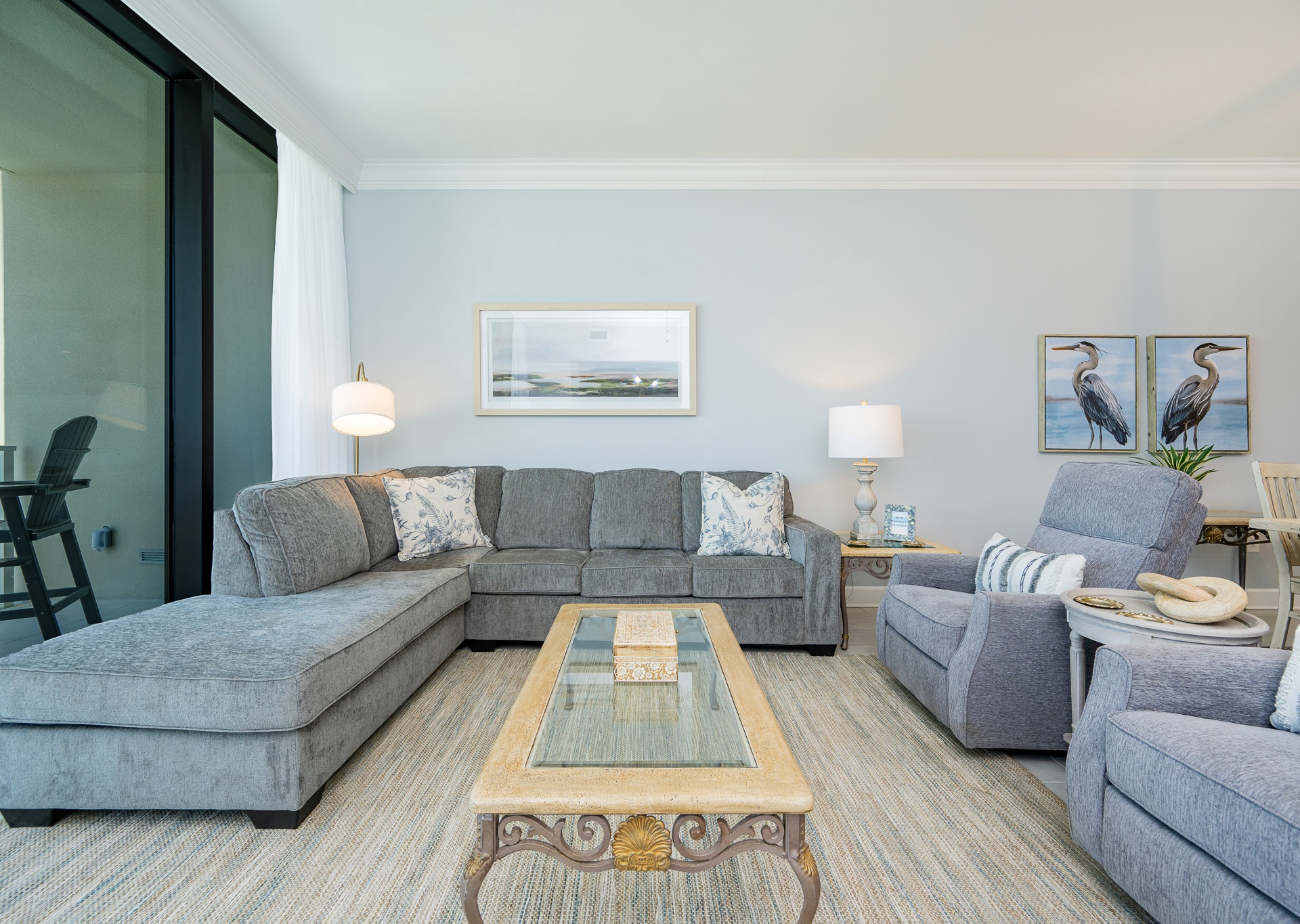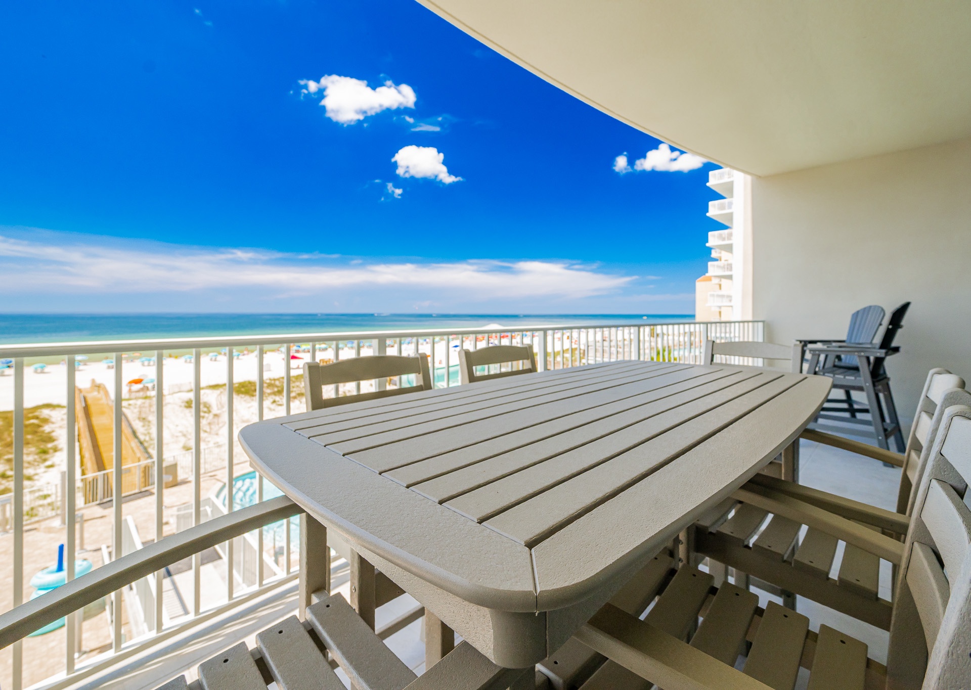 Step out onto your private balcony and take in the breathtaking views of the Gulf and resort amenities. The balcony is outfitted with popular Polywood furniture, including plenty of seating for your whole group — perfect for morning coffee, evening cocktails, or game night by the sea.
