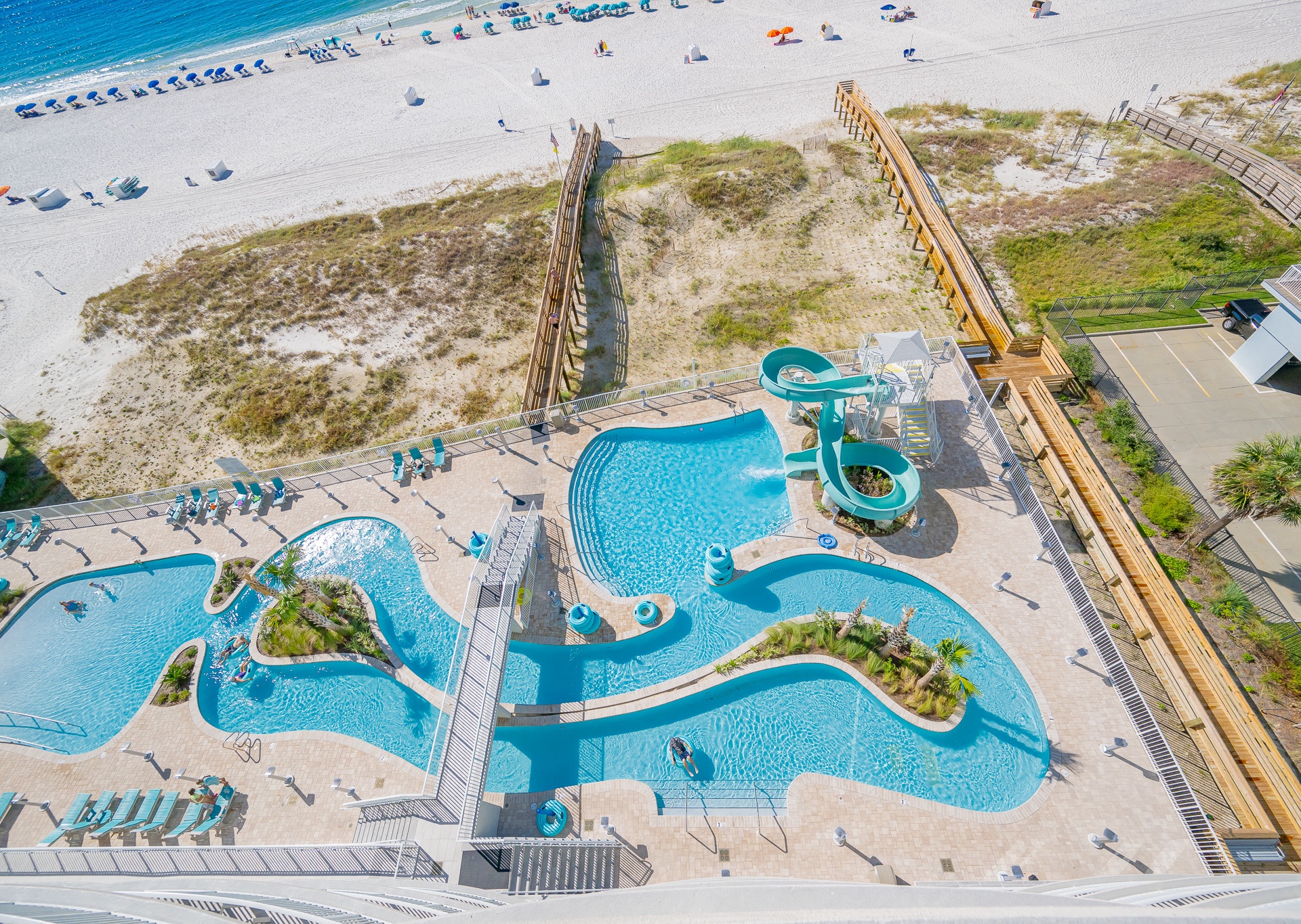 Beach Chair Rentals Fitness Room Hot Tub On-Site Covered Parking Pool-Inside Pool-Lazy River Pool-Outside Slide Smoke Detector Beach Front Water Front Beach Access VRPS Parking