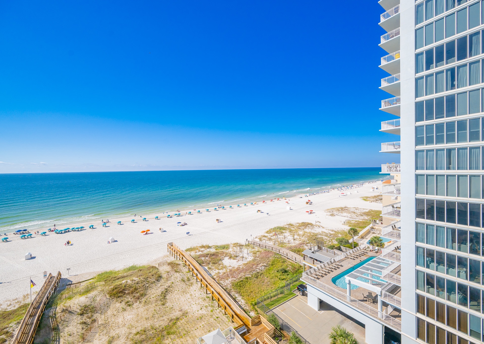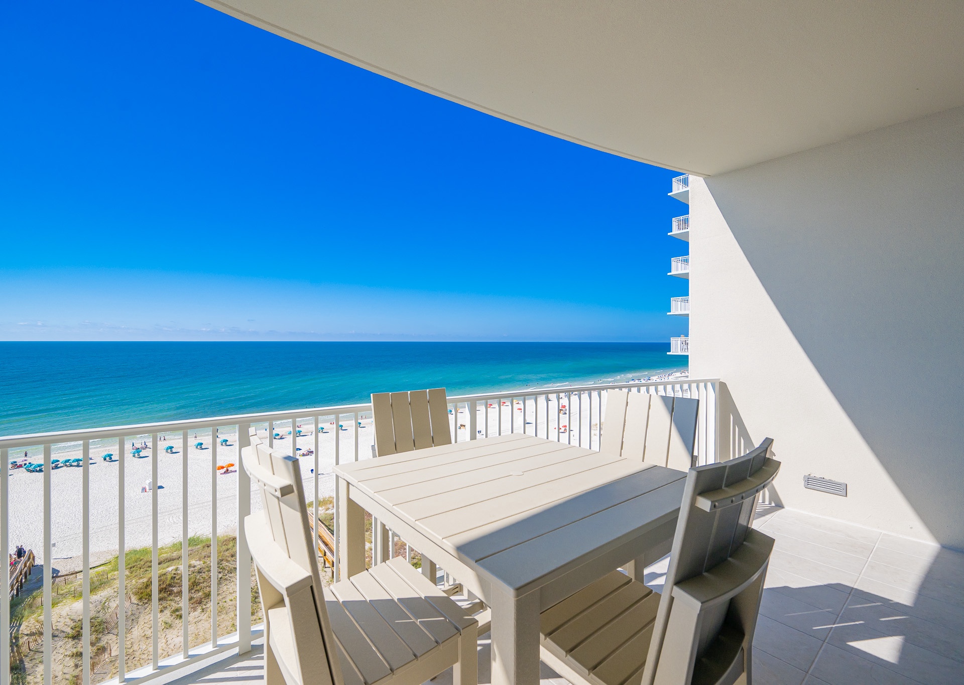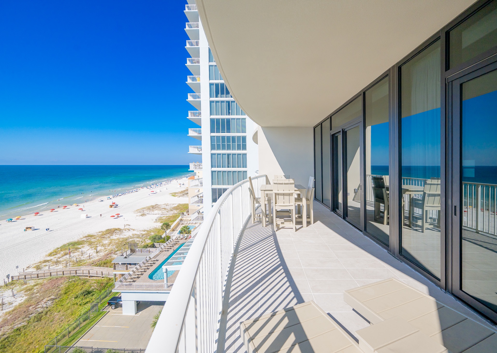 Phoenix Gulf Shores II features spacious 3- and 4-bedroom condos with open layouts and private balconies overlooking the Gulf.