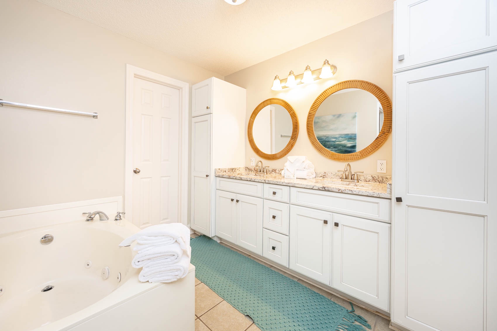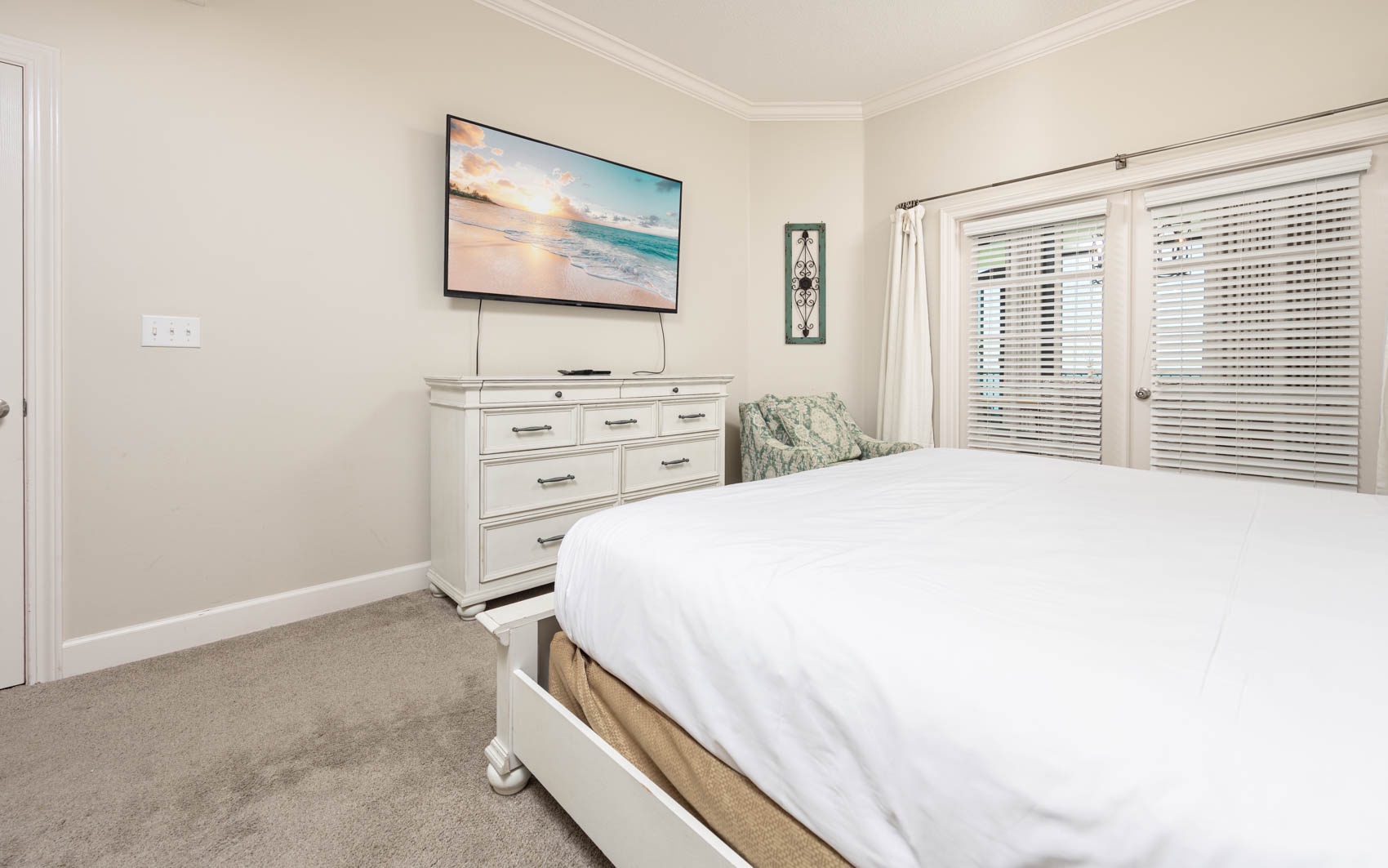 Each bedroom offers a peaceful escape, with the master bedroom featuring a king-size bed, an ensuite bath with a soaking tub and separate shower, and access to a private balcony. The additional bedrooms may include queen-size beds, twin beds, or bunk beds, providing flexibility in sleeping arrangements.